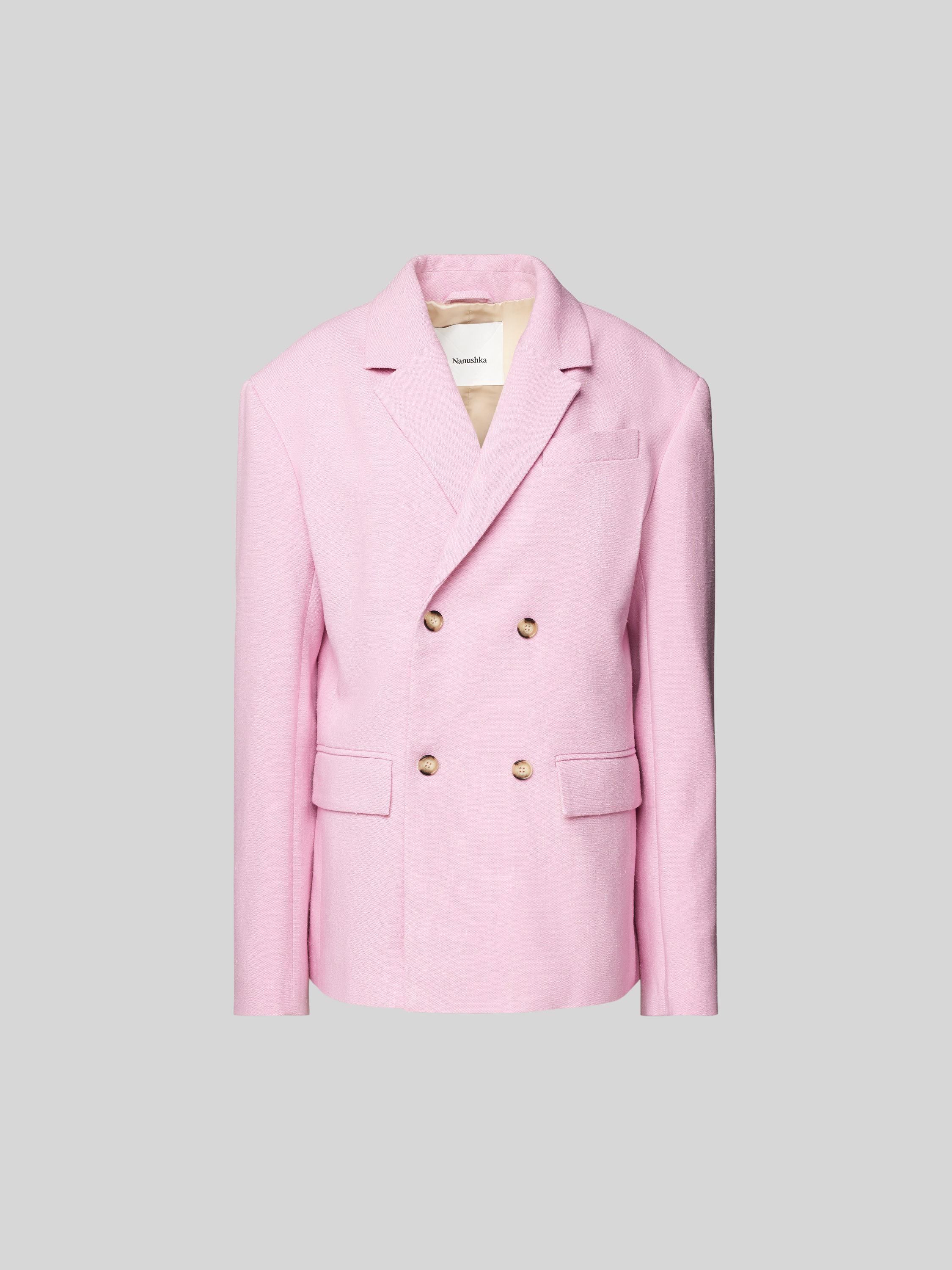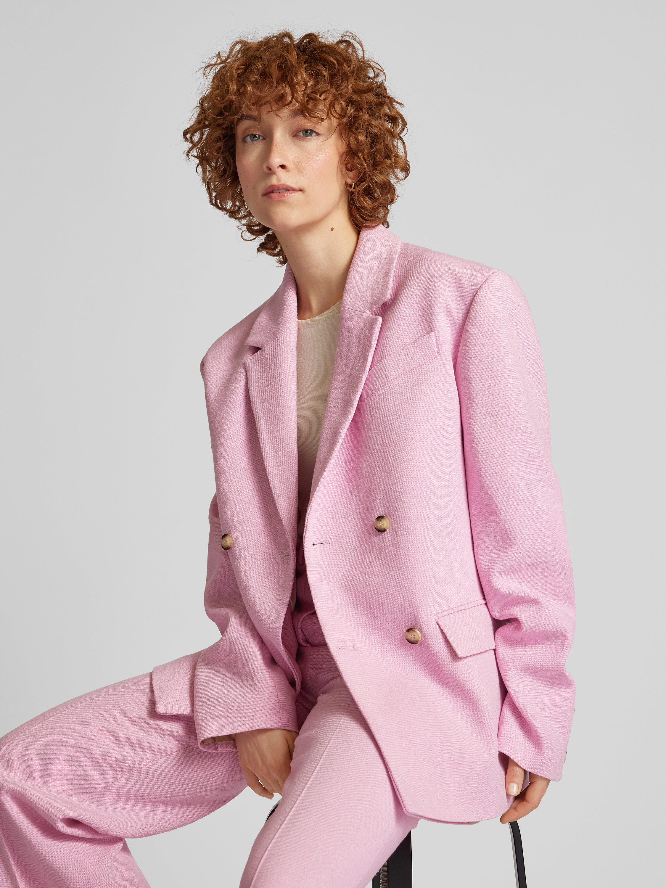 Der Damen Blazer mit Reverskragen von Nanushka zeichnet sich durch seinen geraden Schnitt aus, wodurch er vielseitig kombiniert werden kann. Dank des Viskose-Seiden-Mix fühlt sich das Material angenehm leicht an. Die dezent eingearbeiteten Taschen sorgen im Alltag für praktische Details.