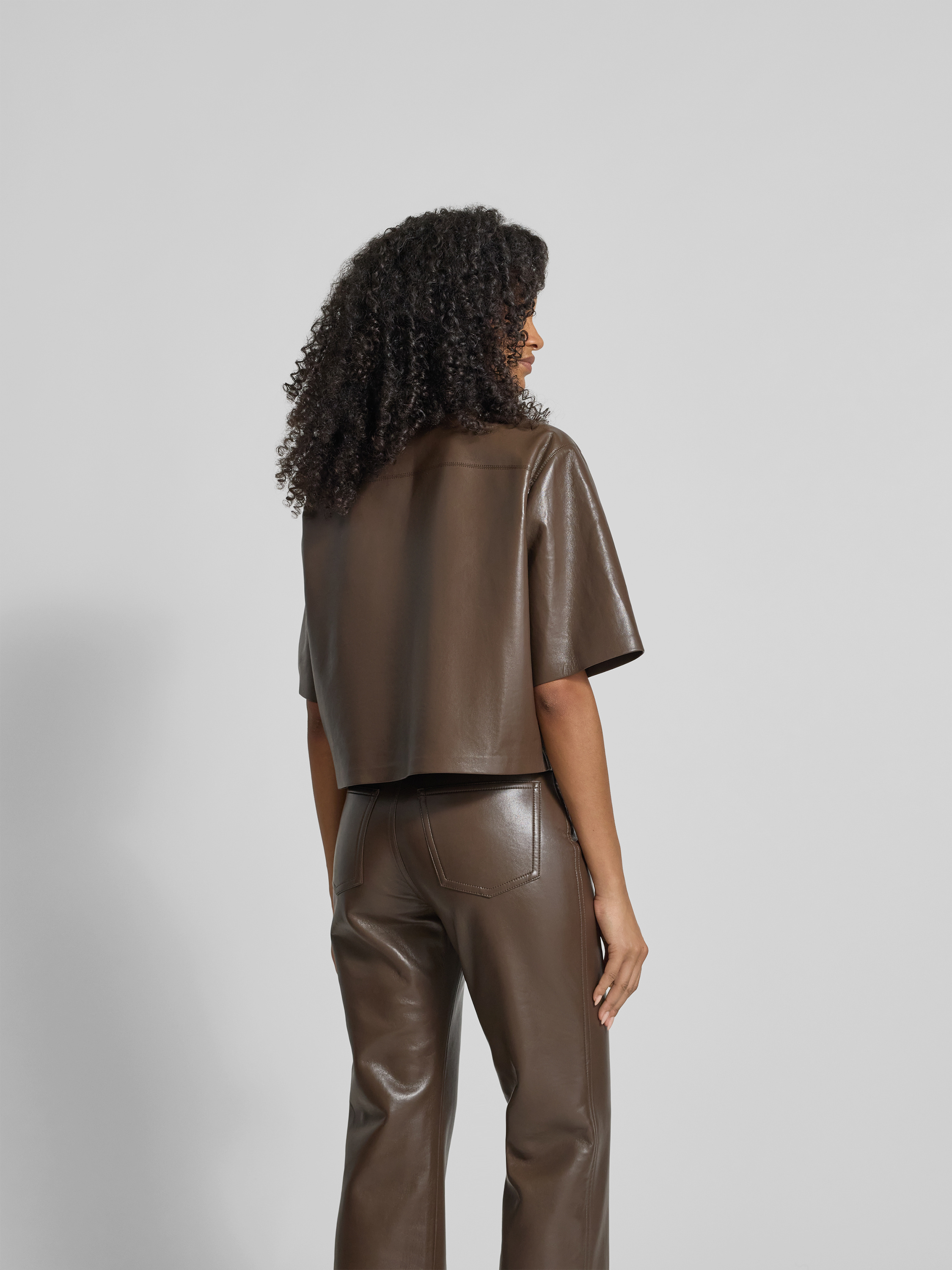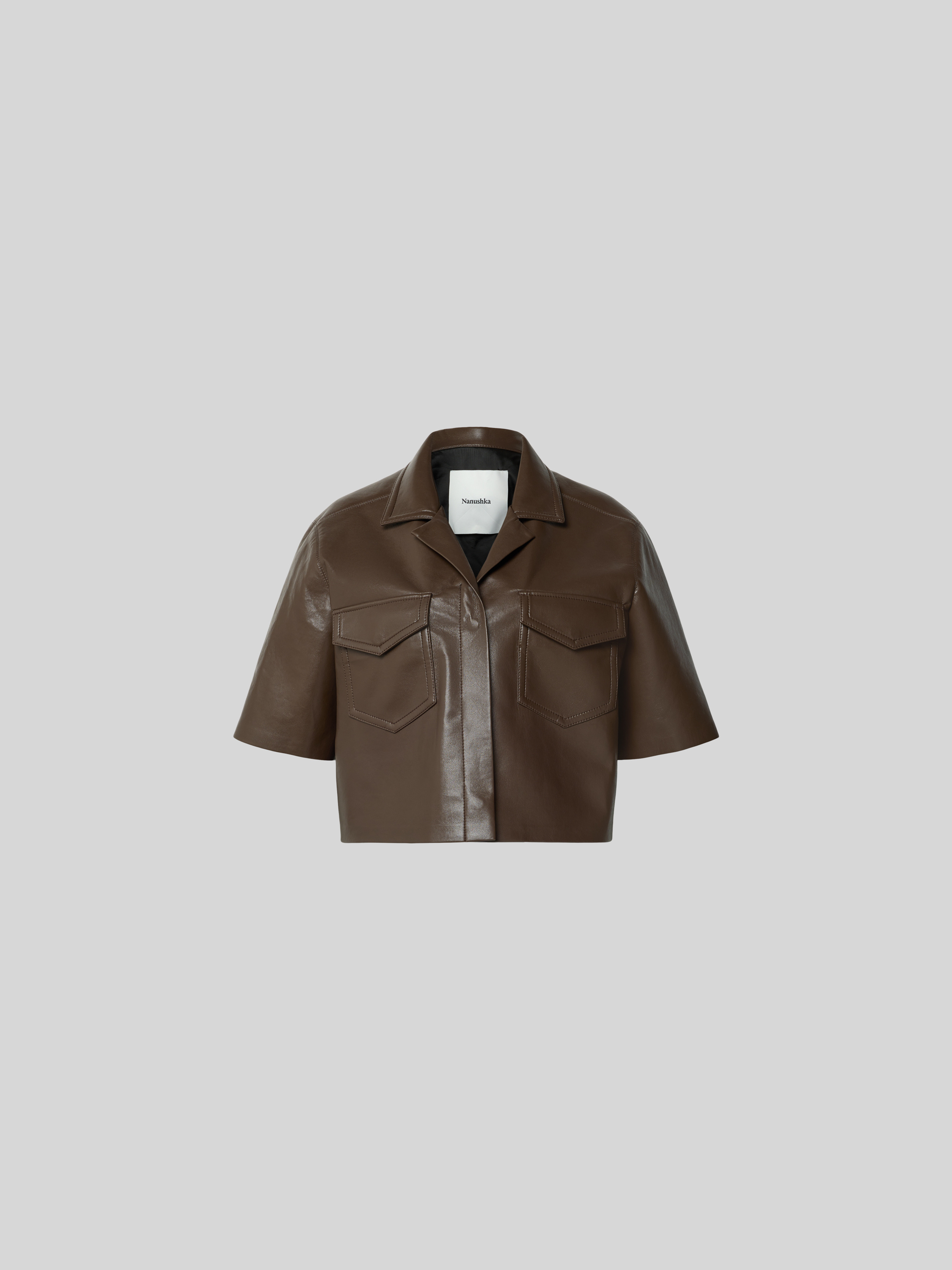 Die Cropped Bluse mit Brusttaschen von Nanushka zeigt sich in lässig verkürzter Form, während der Reverse-Kragen für eine moderne Note sorgt. Kurze Ärmel und aufgesetzte Brusttaschen unterstützen einen entspannten Look. So eignet sich das Modell besonders für warme Tage und unkomplizierte Outfits.