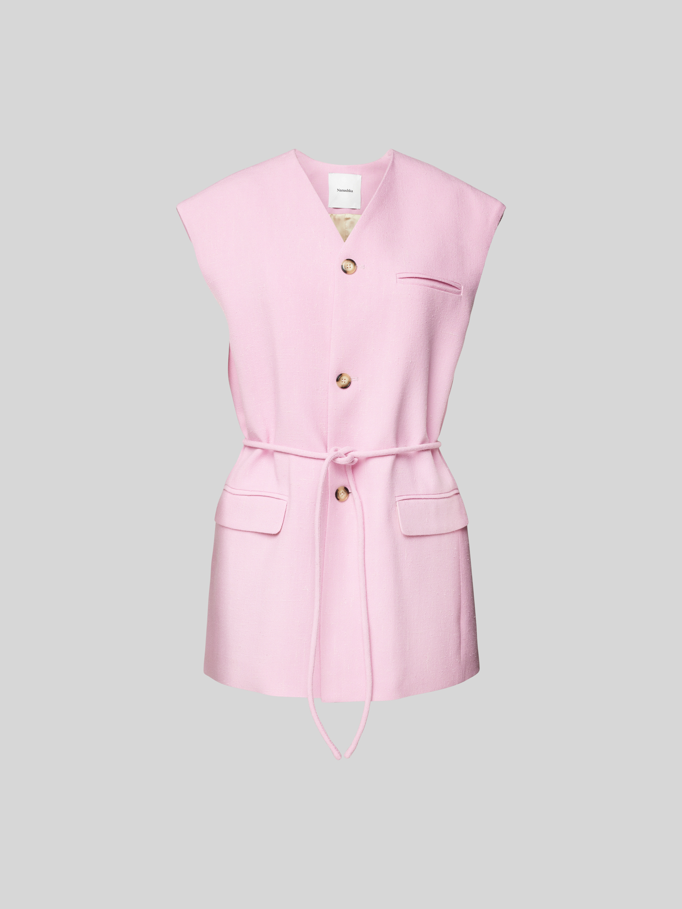 Das Damen Hemdblusentop von Nanushka kombiniert eine taillierte Silhouette mit einem fließenden Viskose-Seide-Mix. Durch das Taillenband lässt sich die Form individuell anpassen, während das ärmellose Design im Alltag Bewegungsfreiheit ermöglicht. Die Knopfleiste unterstreicht den klassischen Charakter des Modells.