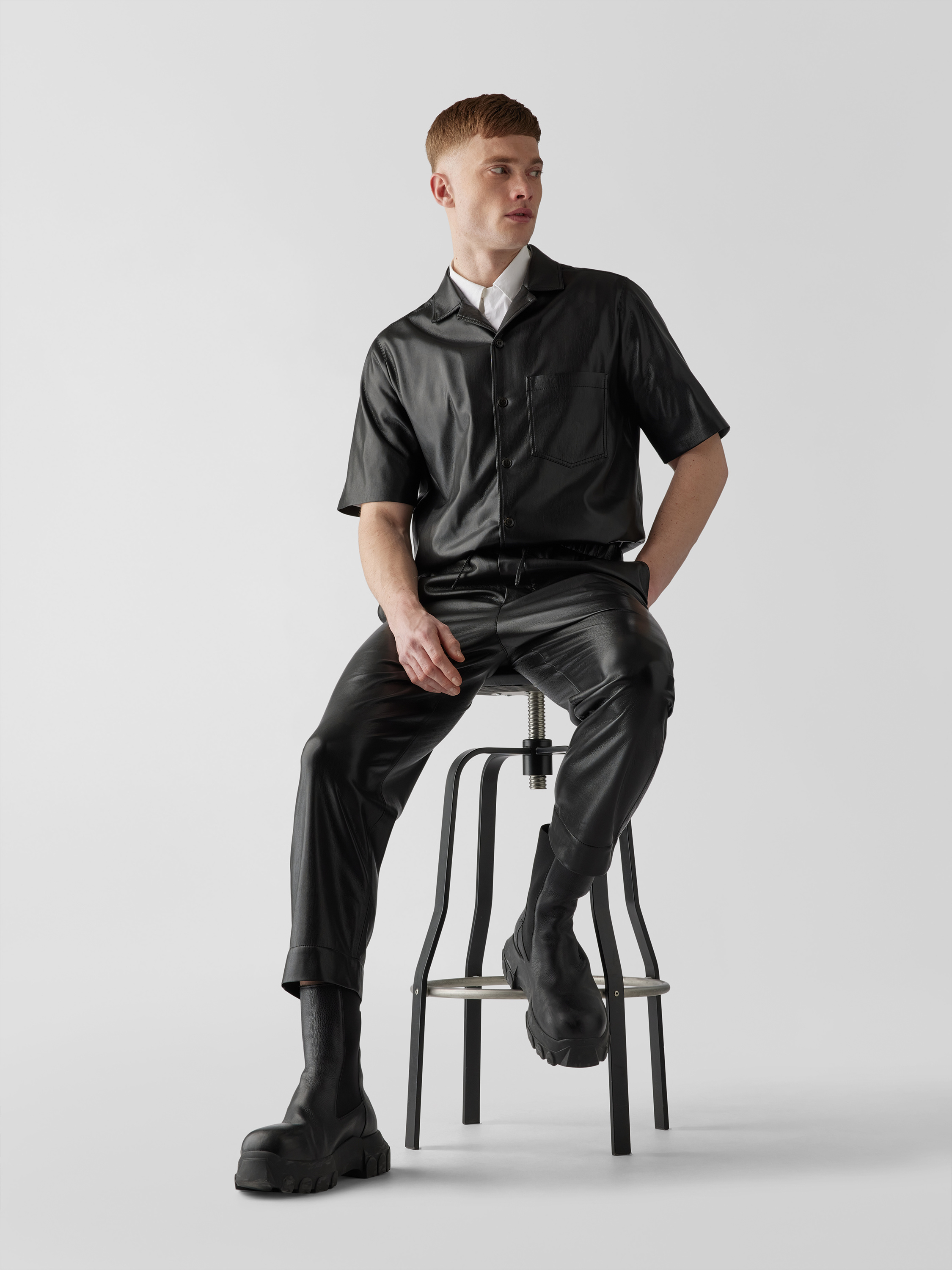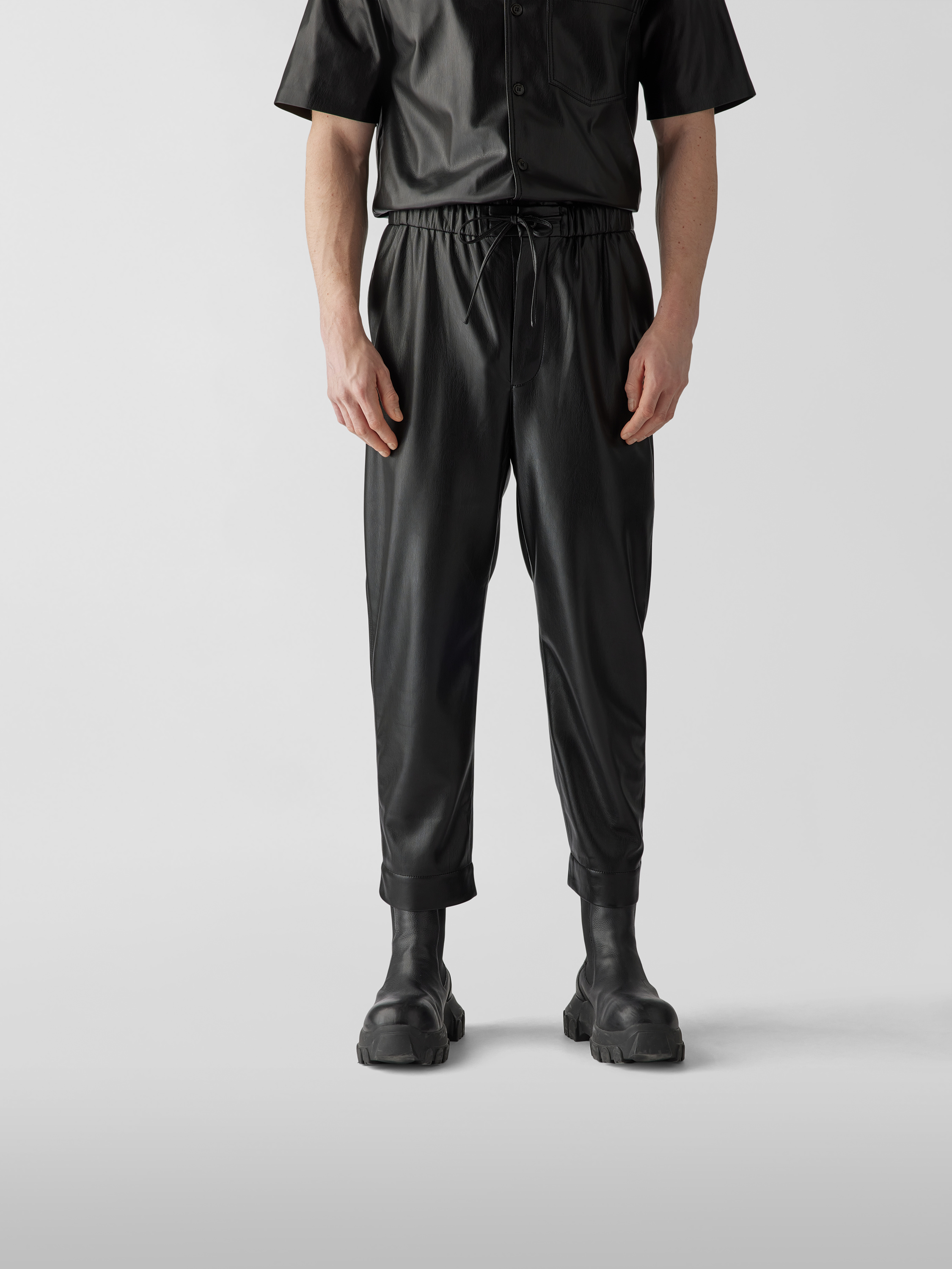 Die Herren Hose von Nanushka zeigt sich mit einer glatten Oberfläche in Leder-Optik und einer angenehm geraden Passform. Durch das strapazierfähige Material bleibt sie auch bei häufigem Tragen formstabil und komfortabel. Seitliche Eingrifftaschen und der flexible Bund sorgen für unkomplizierte Bewegungsfreiheit im Alltag.