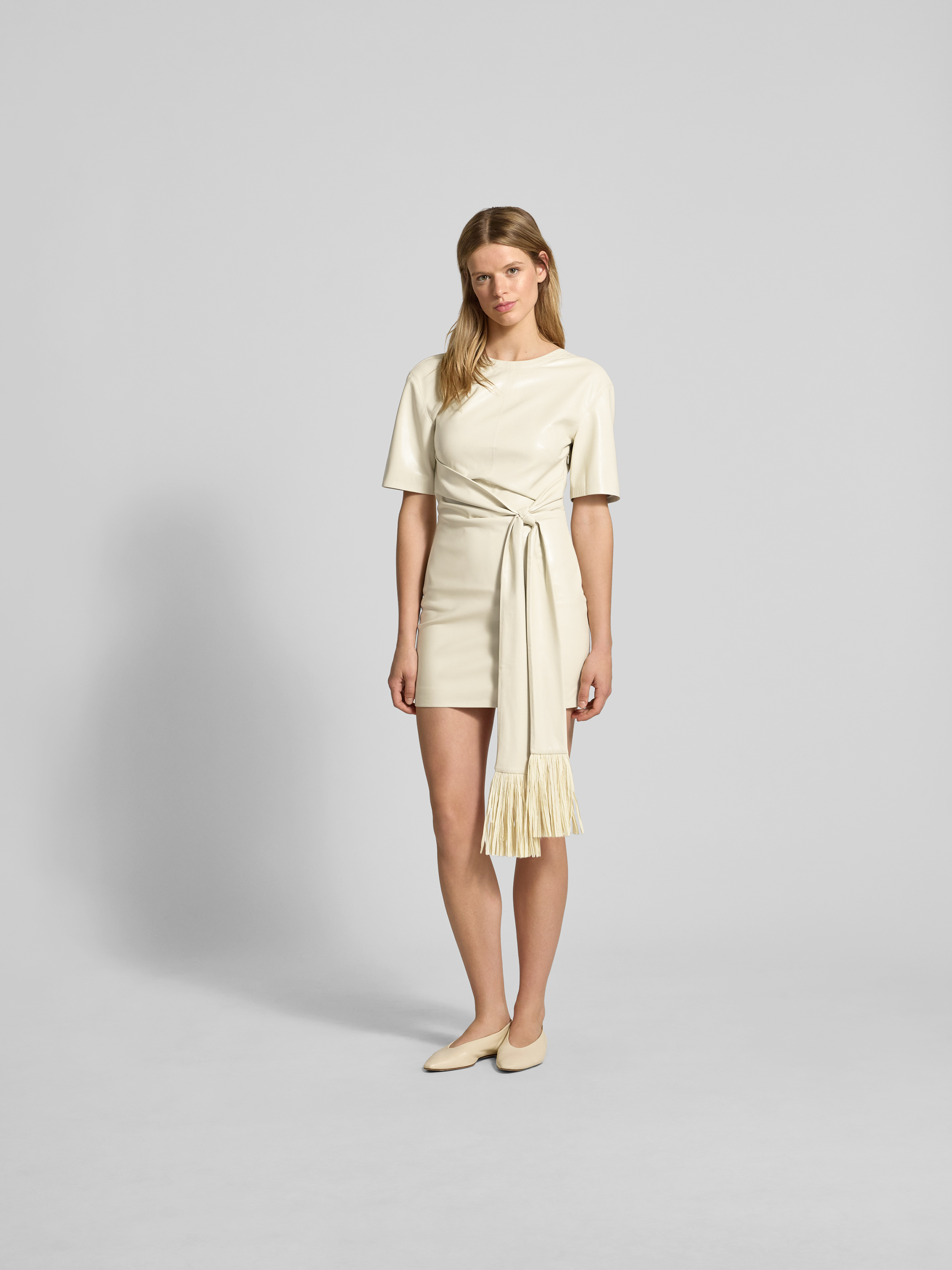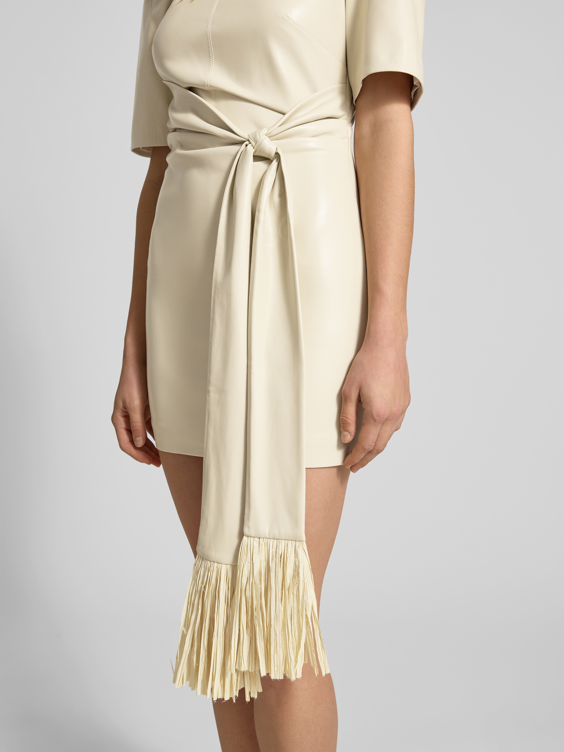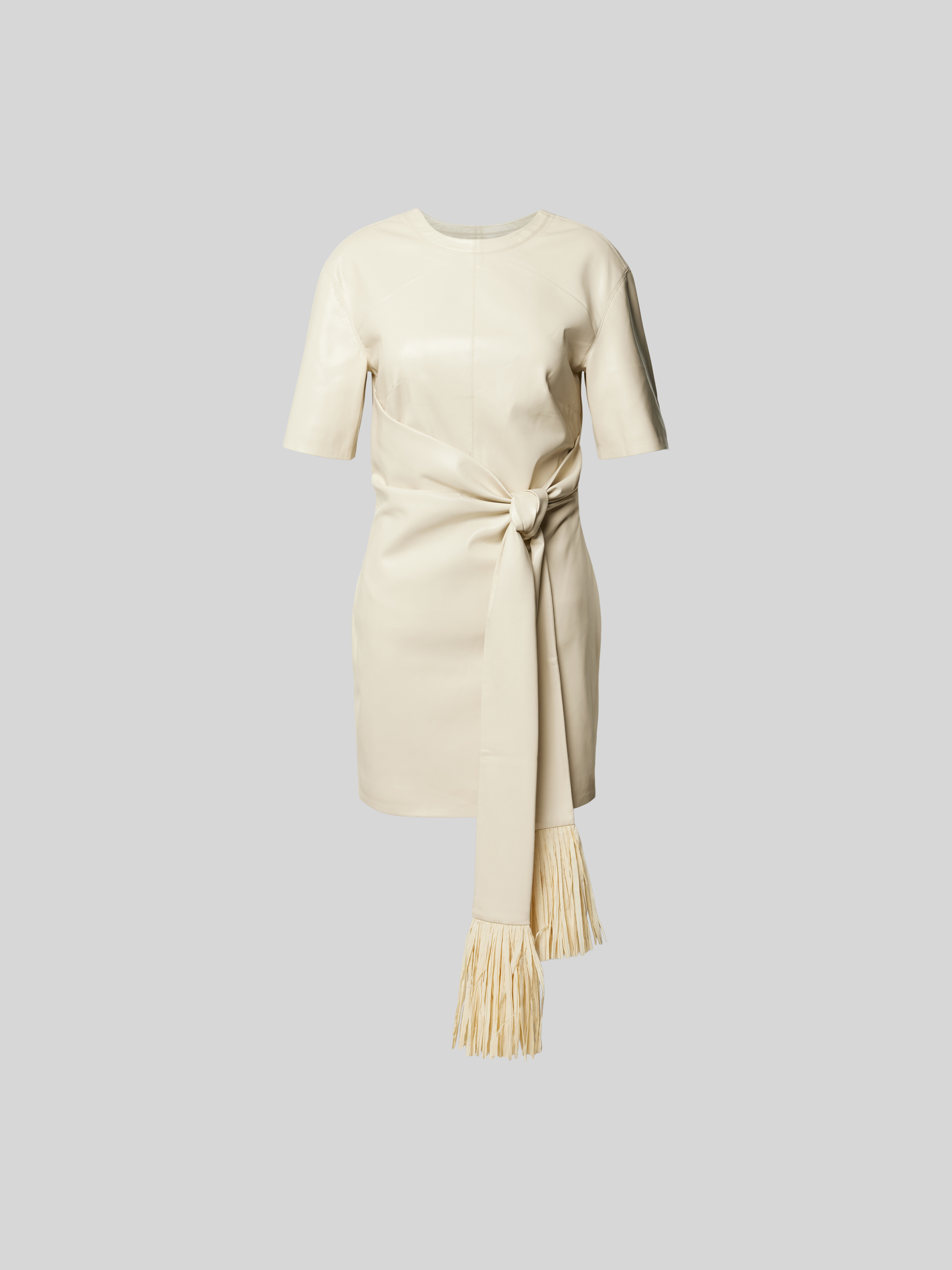 Das Minikleid von Nanushka verbindet einen taillierten Schnitt mit eleganten Raffungen, die dem Kleid eine dynamische Note verleihen. Der gerippte Rundhalsausschnitt sorgt für einen angenehmen Tragekomfort, während subtile Ausfransungen dem Design eine besondere Textur verleihen. Ideal für einen stilvollen Auftritt.