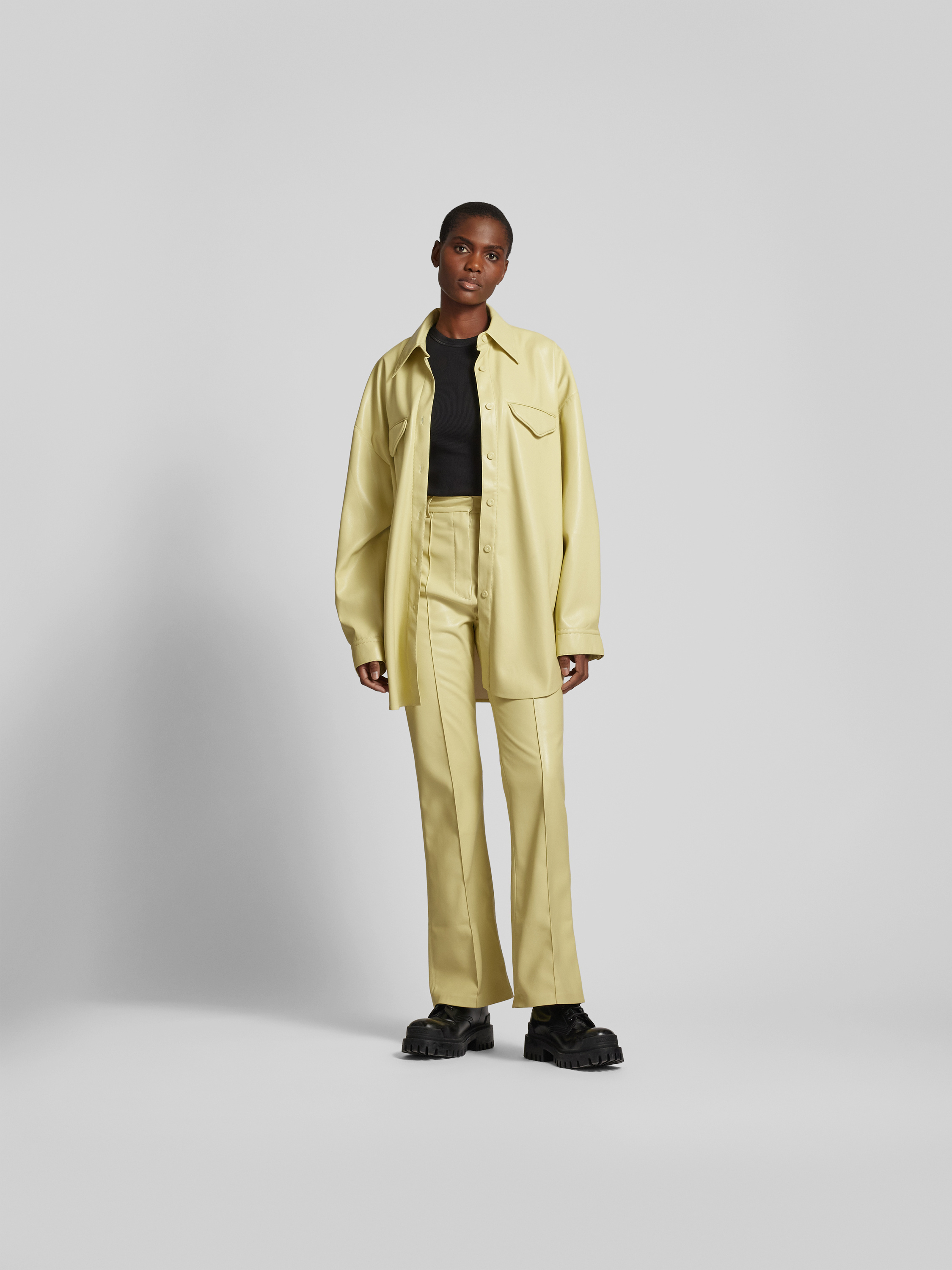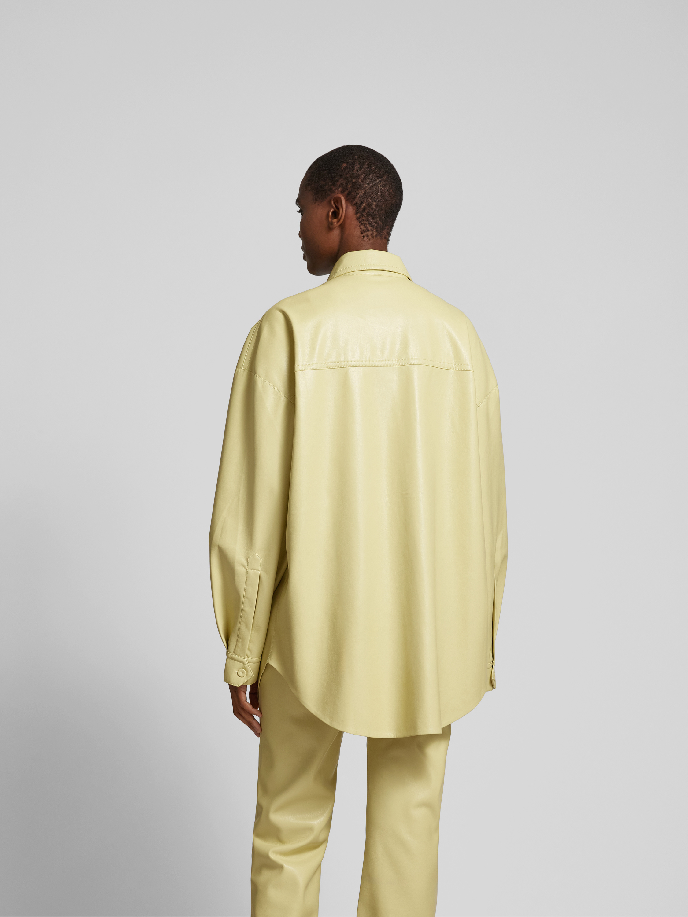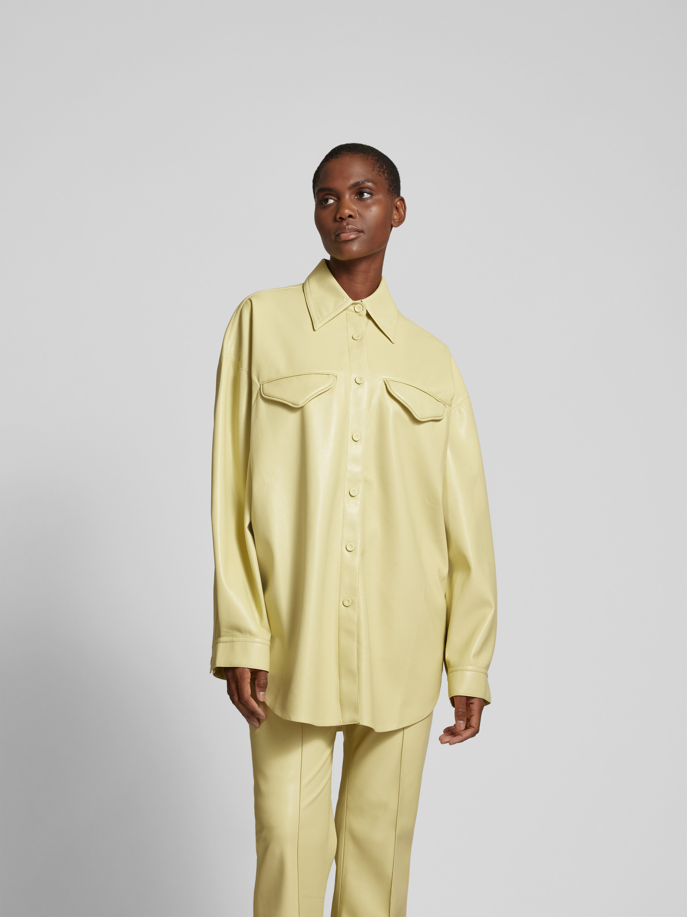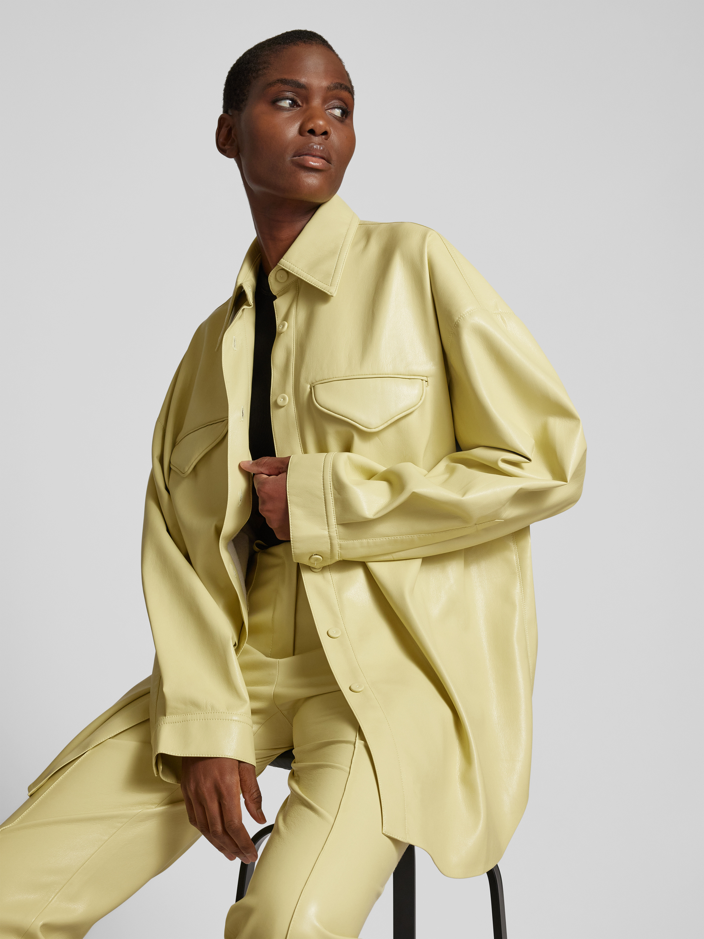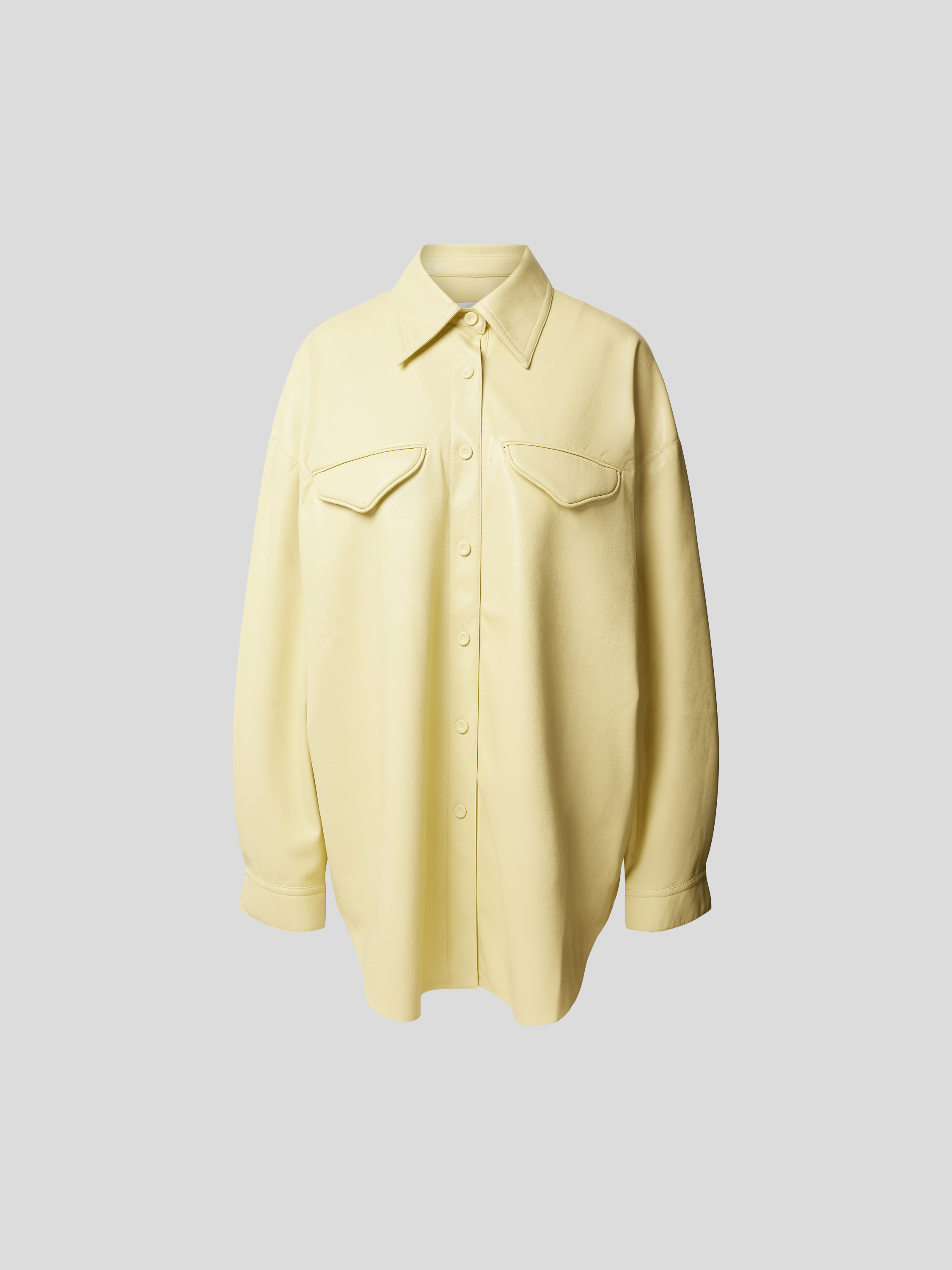 Die Oversized Hemdbluse von Nanushka fällt locker und schafft durch ihre großzügige Passform einen entspannten Eindruck. In Leder-Optik gehalten, verbindet sie modernen Stil mit angenehmem Tragegefühl und eignet sich ideal, um verschiedene Looks unkompliziert zu kombinieren. Die langen Ärmel und die Brusttaschen unterstreichen die Vielseitigkeit.