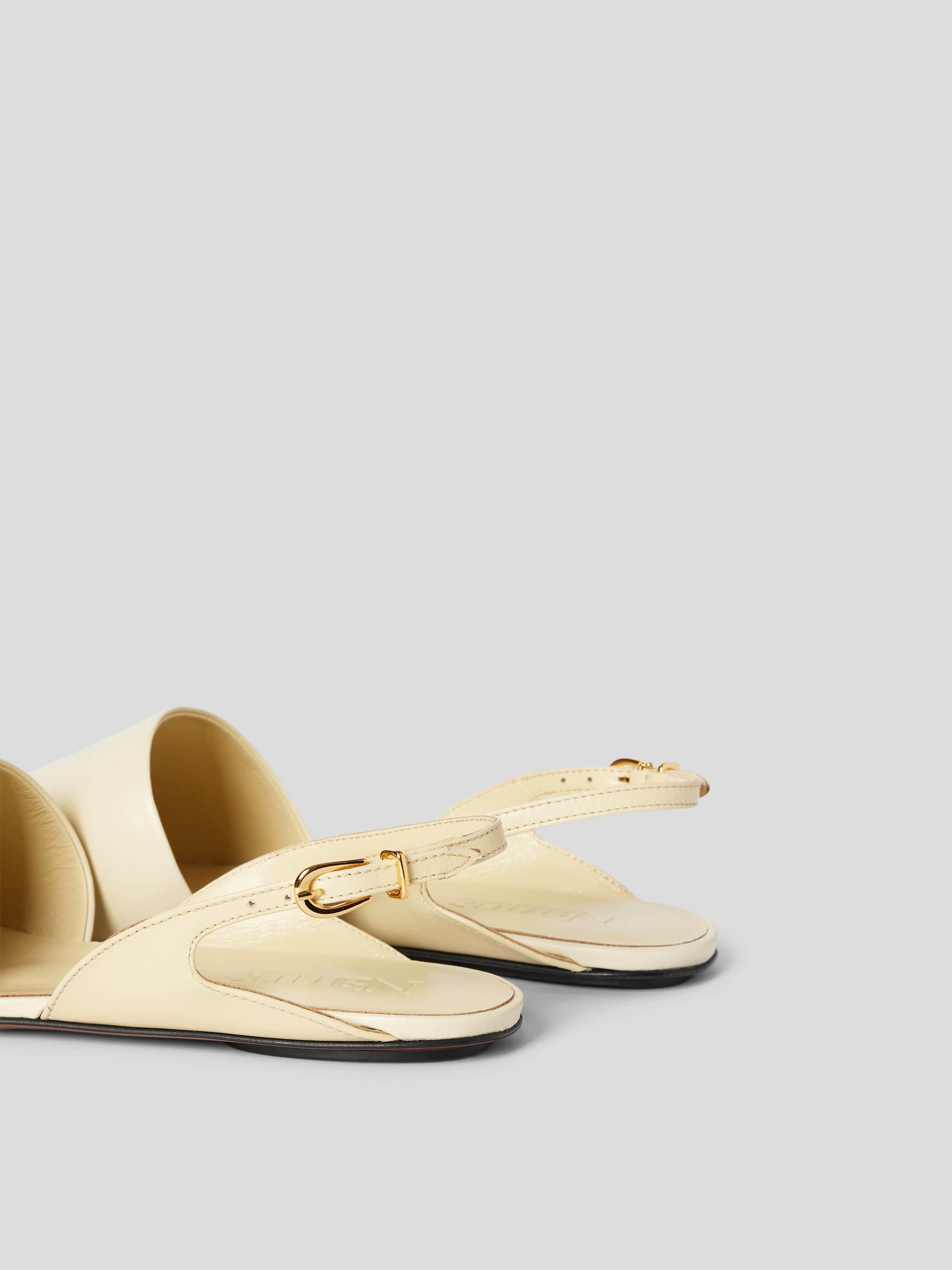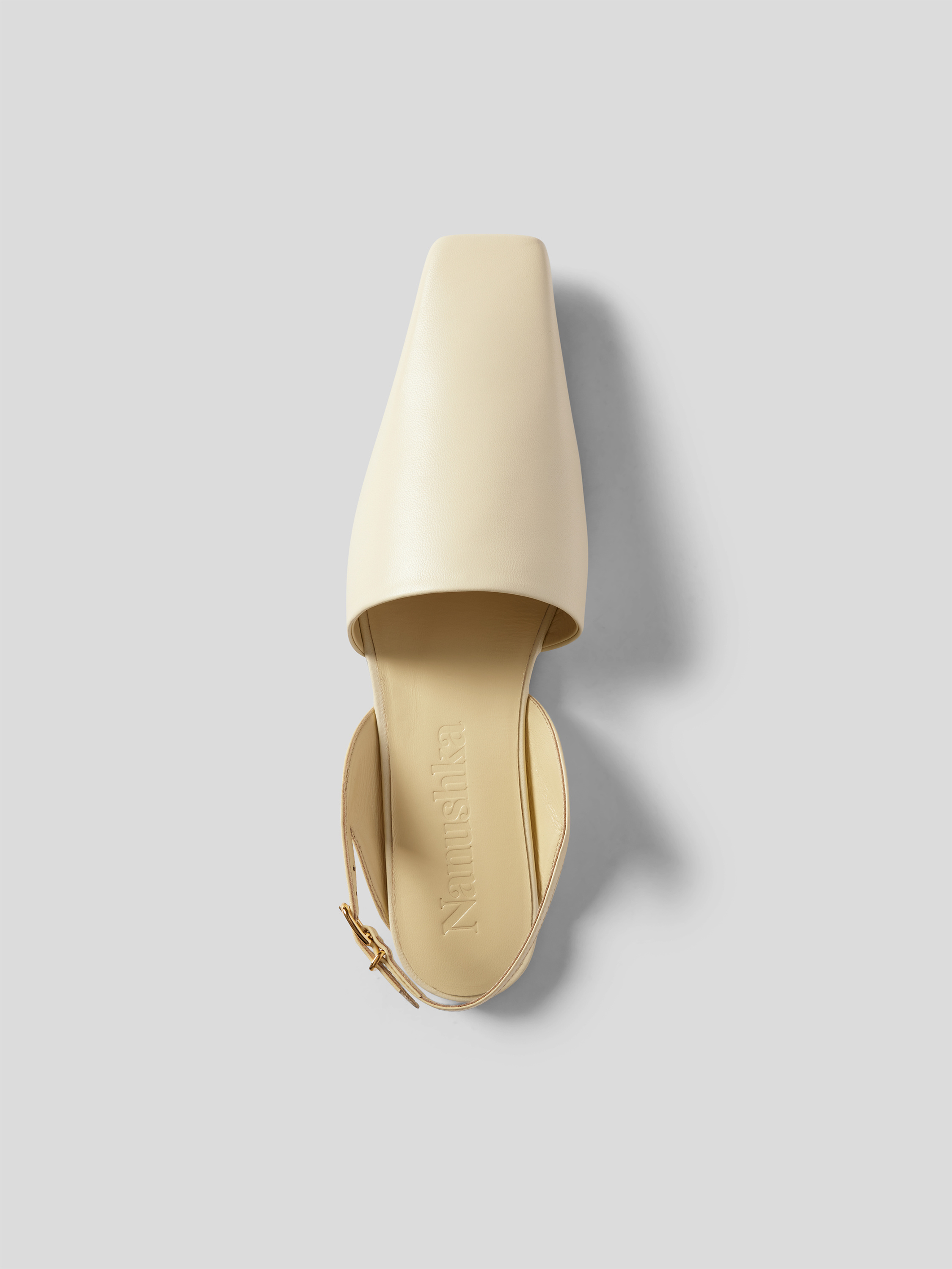 Die Pantoletten mit Dornschließe von Nanushka präsentieren sich mit schlankem Riemen und abgeflachter Spitze, wodurch sie vielseitig kombiniert werden können. Echtes Leder sorgt für ein angenehmes Tragegefühl und unterstützt die natürliche Fußform. Das dezente, unifarbene Design rundet den zurückhaltenden Look ab.