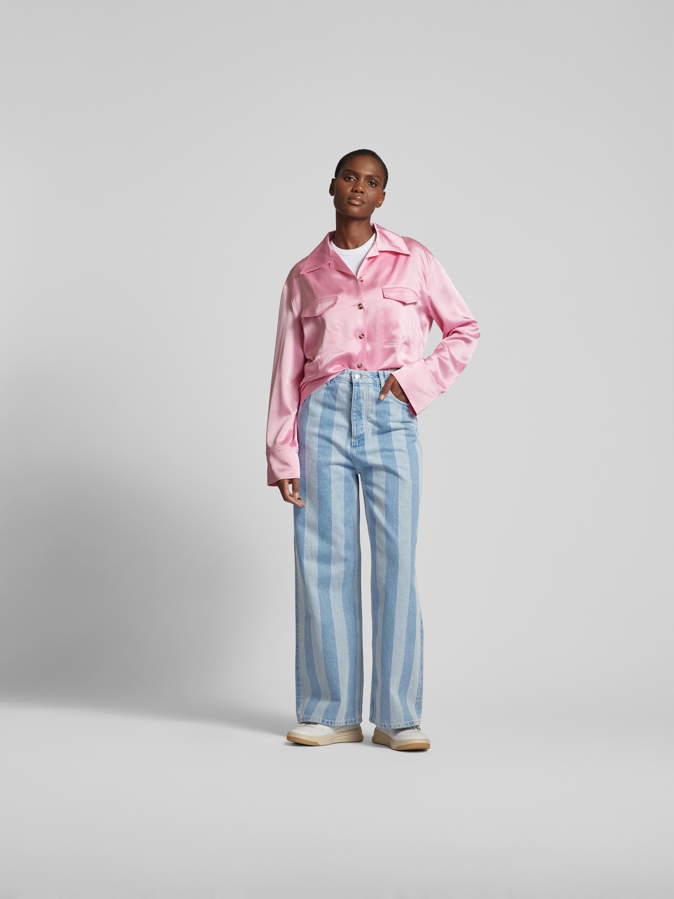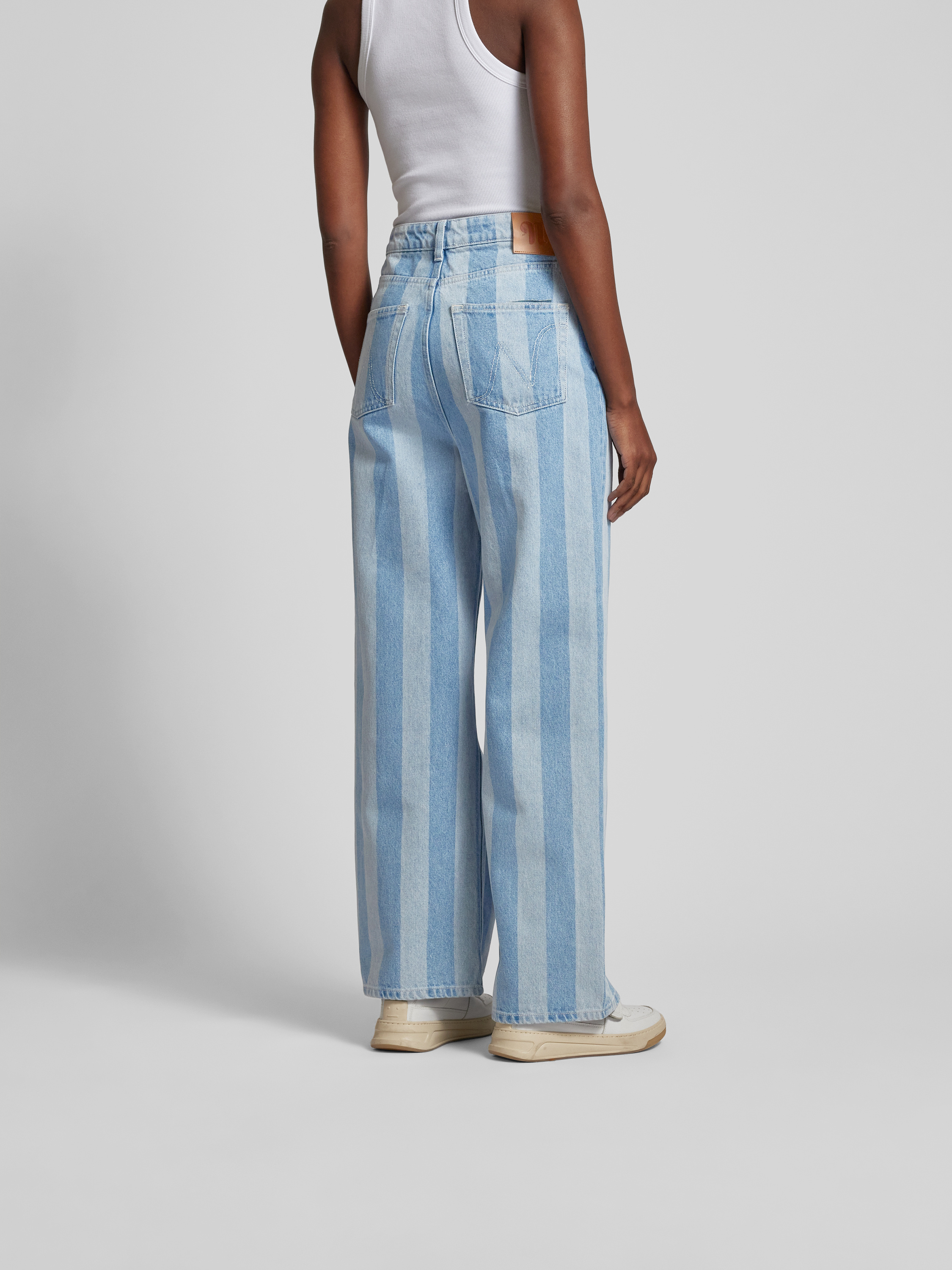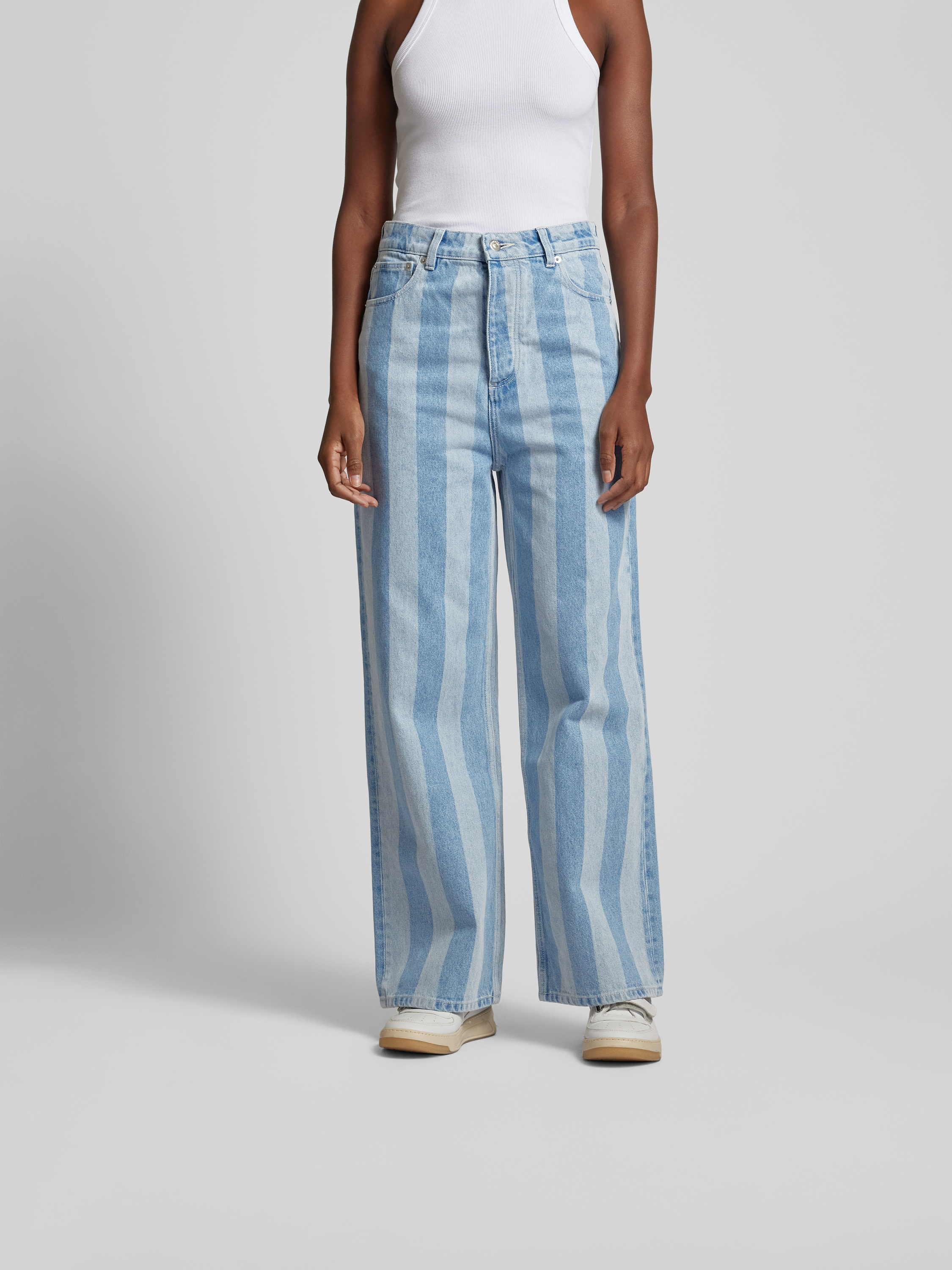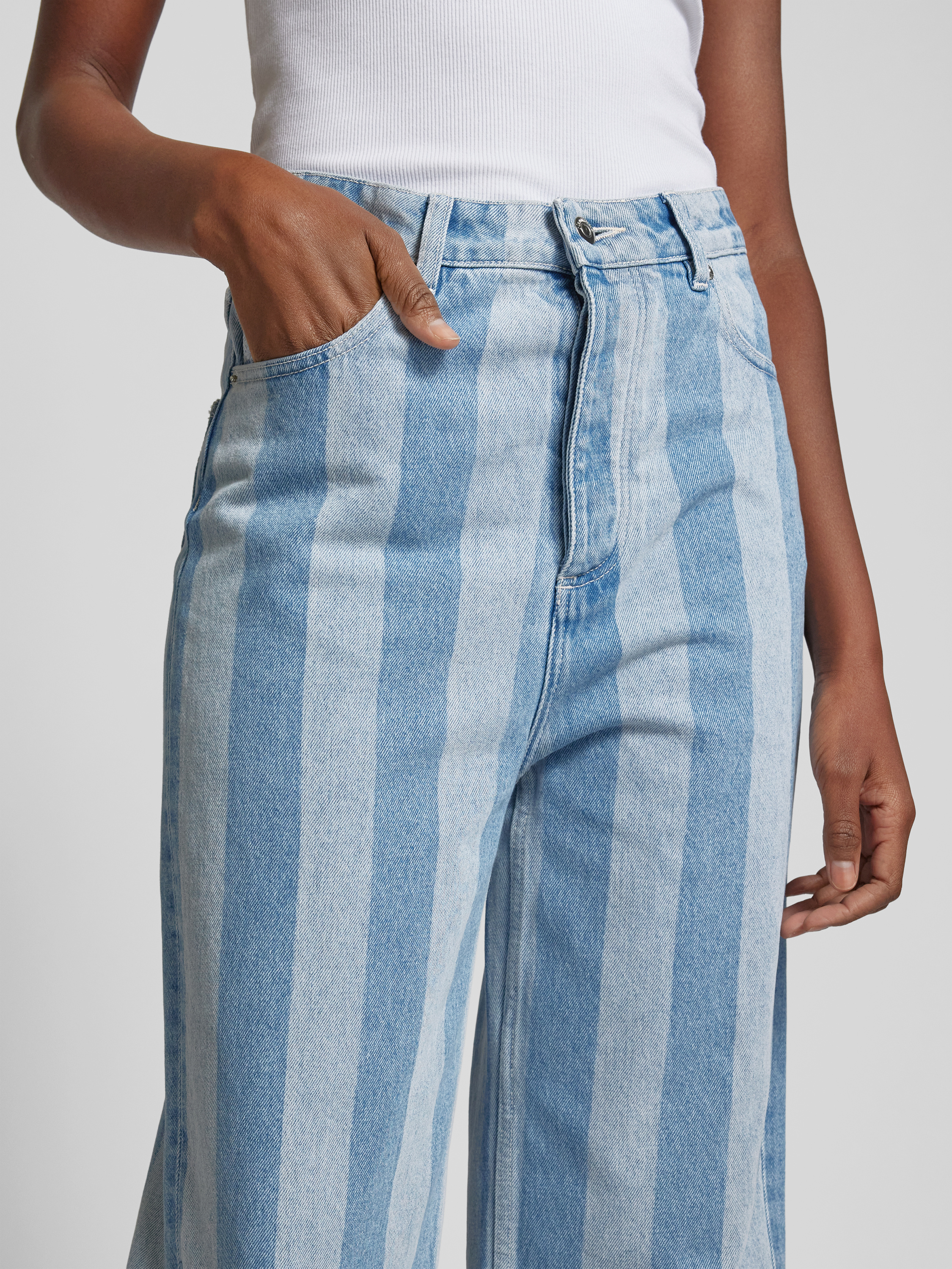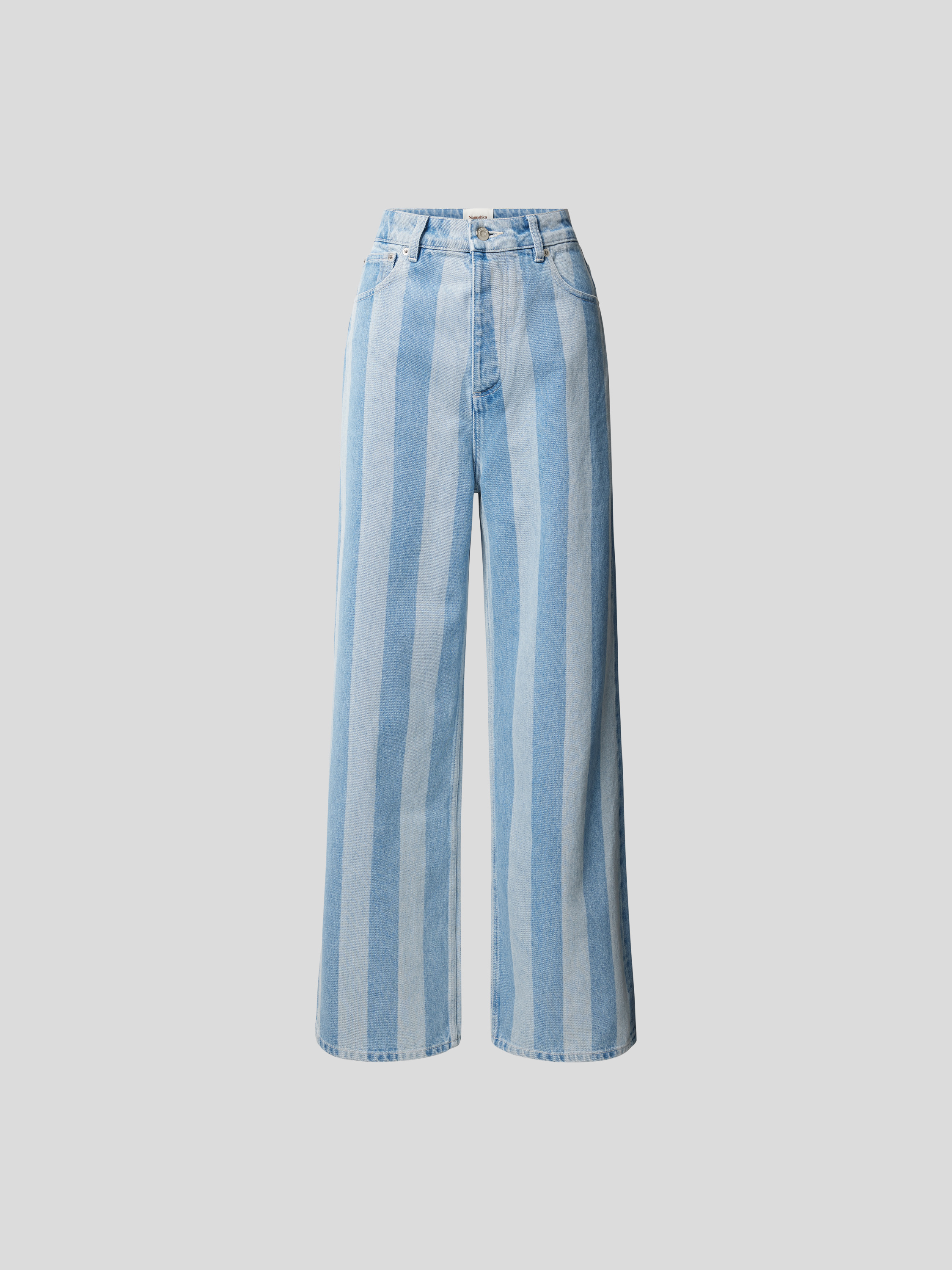 Die Damen Jeans von Nanushka zeigt sich in lockerer Passform und fällt durch das markante Streifenmuster sofort ins Auge. Aus reiner Baumwolle gefertigt, trägt sie sich angenehm leicht und eignet sich ideal für entspannte Alltagslooks. Ihr klassisches 5-Pocket-Design sorgt für praktische Details.