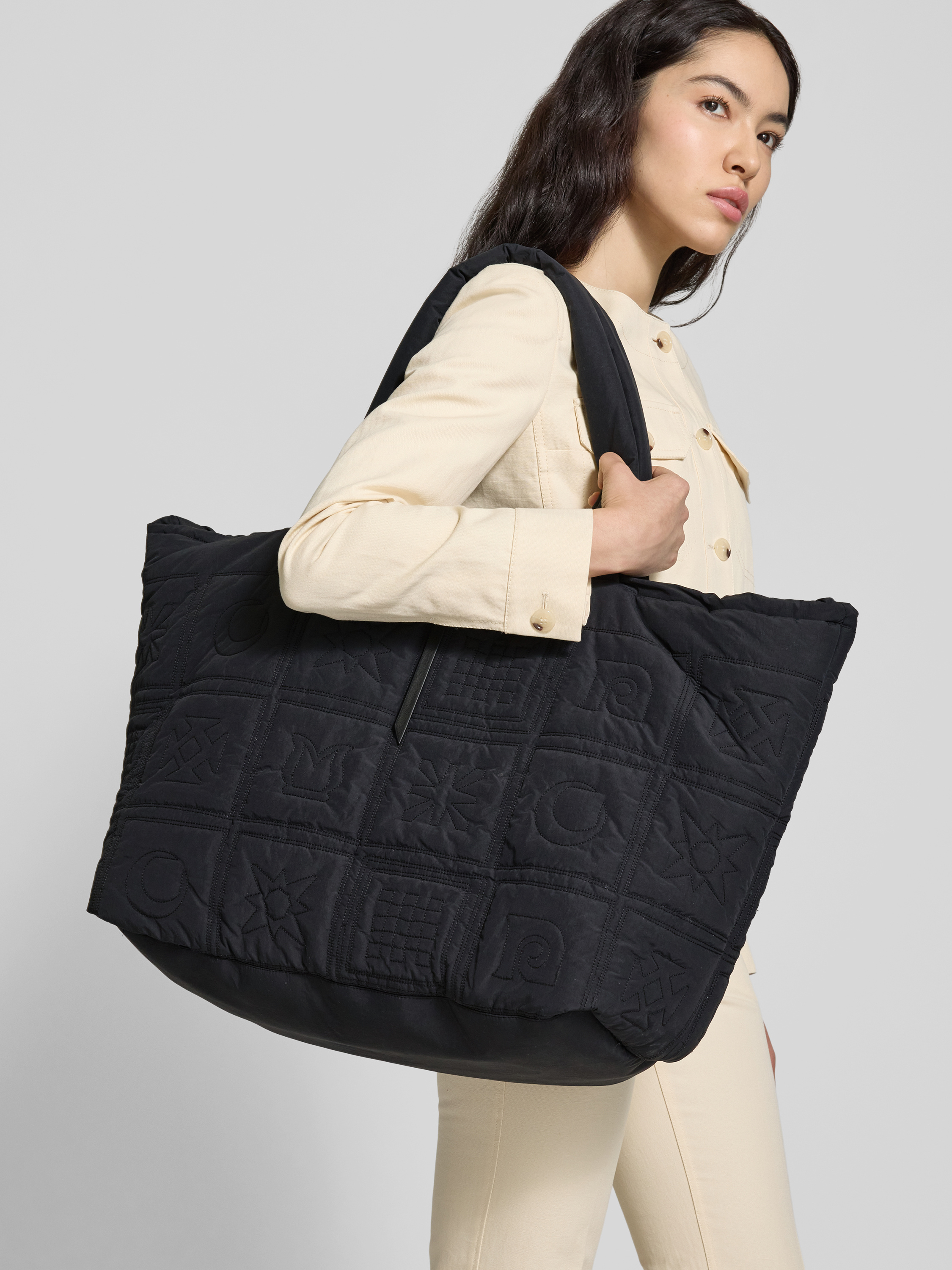 Die Shopper von Nanushka fällt durch markante Steppnähten und dezente Logo-Details auf, wodurch sie einen modernen Akzent im Alltag setzt. Dank langer Tragehenkel und offenem Hauptfach mit Bändern zum Knoten lässt sich alles unkompliziert verstauen. Ein separates Innenfach sorgt dabei für mehr Übersichtlichkeit.
