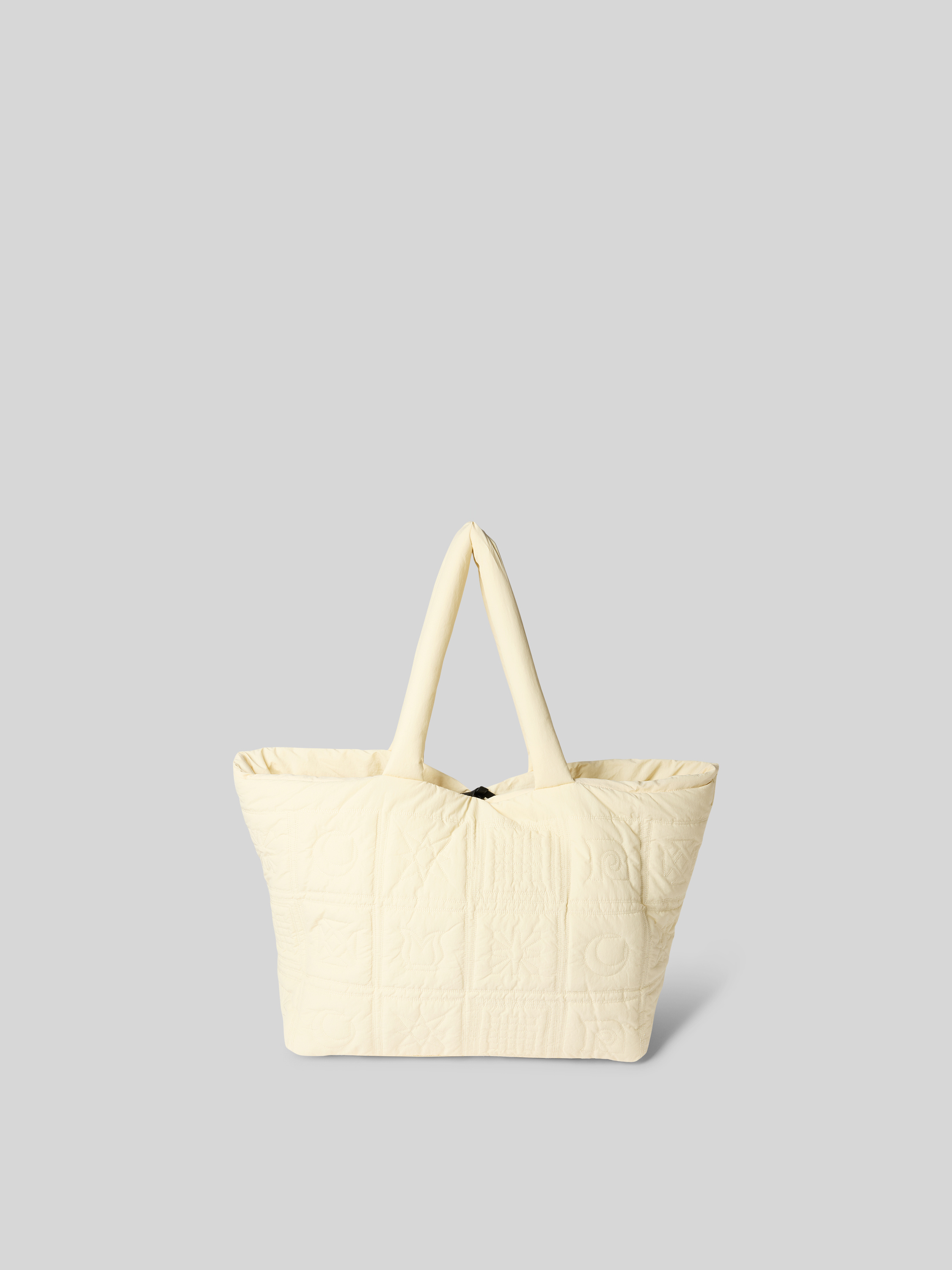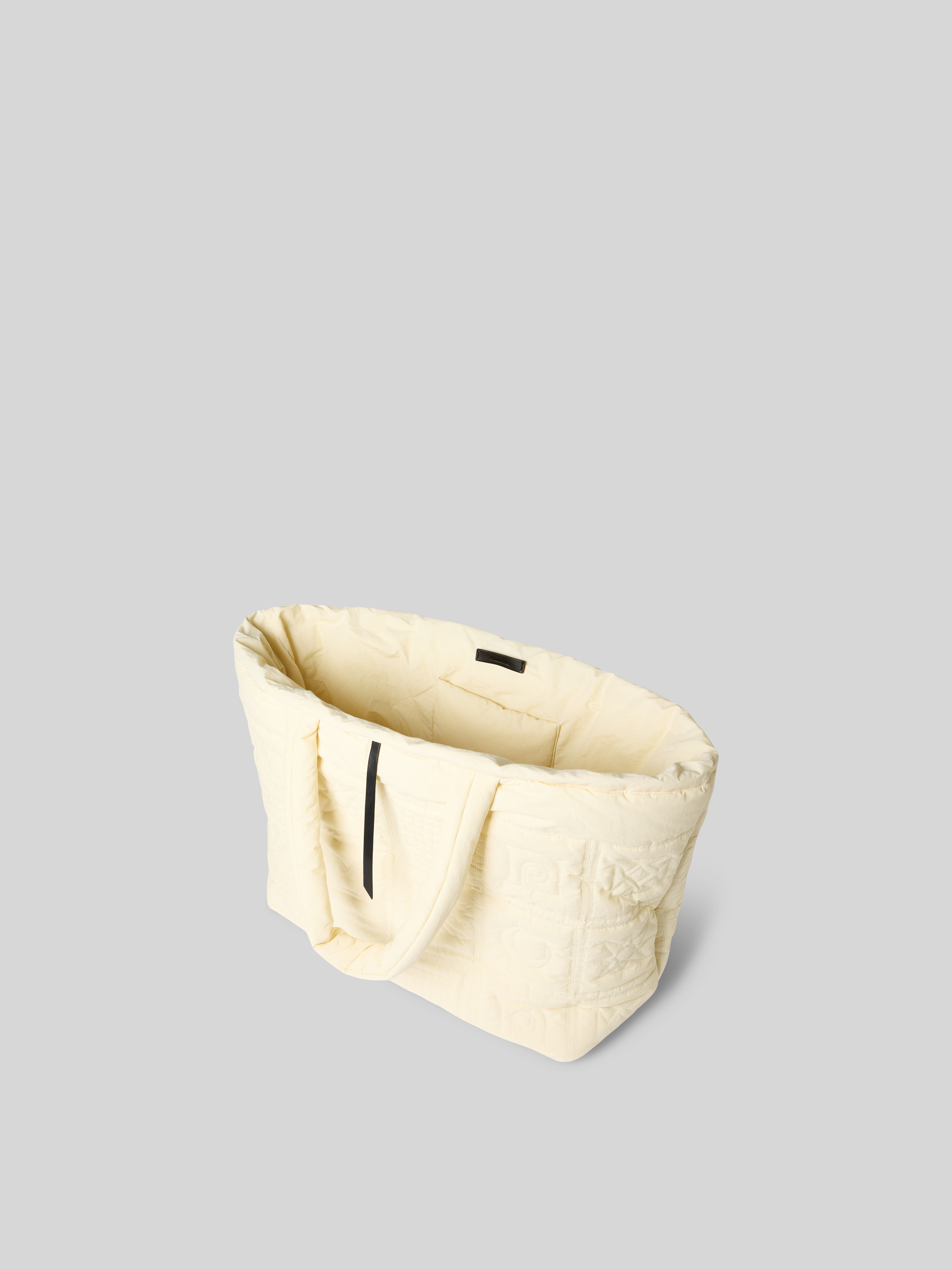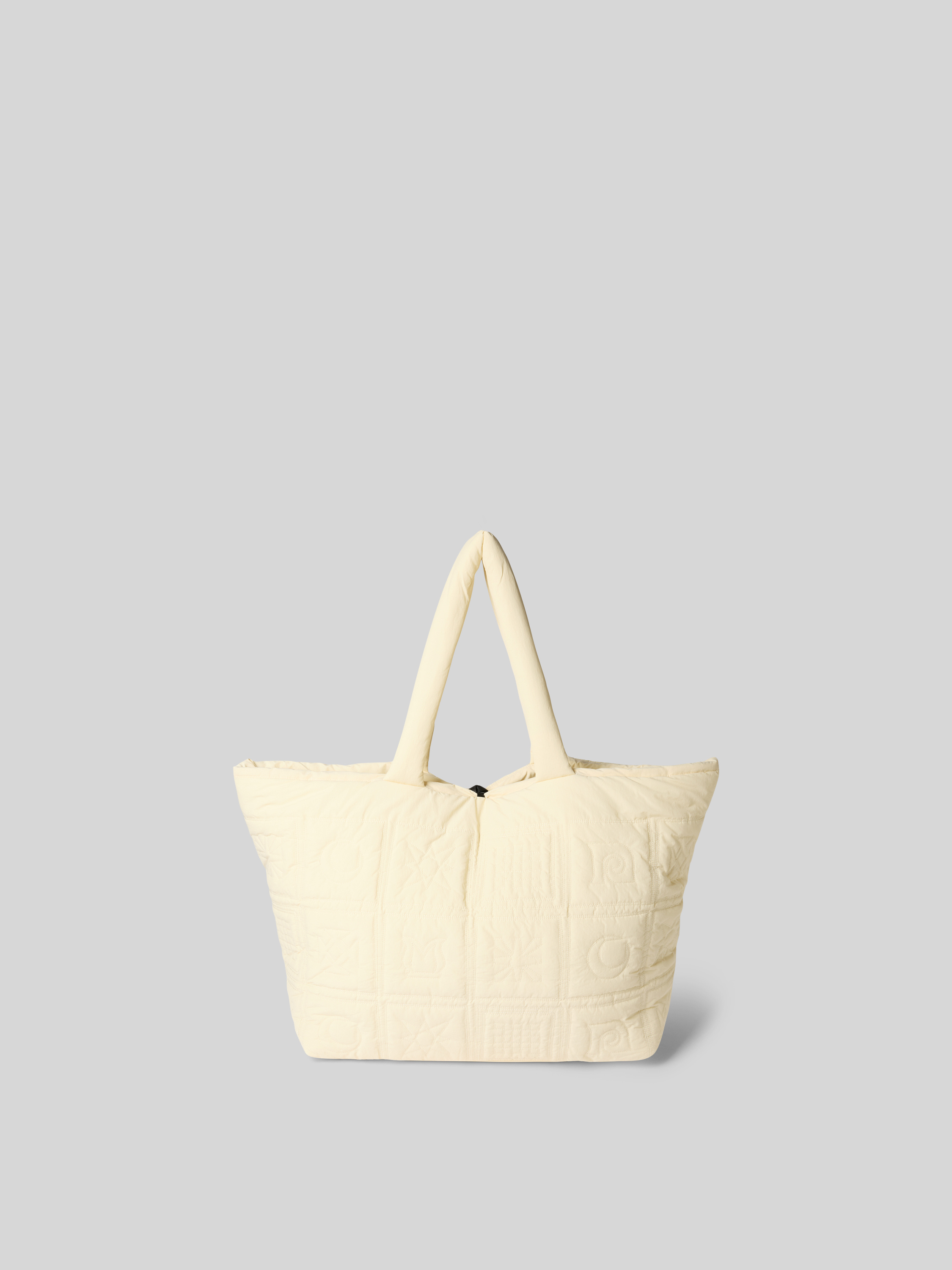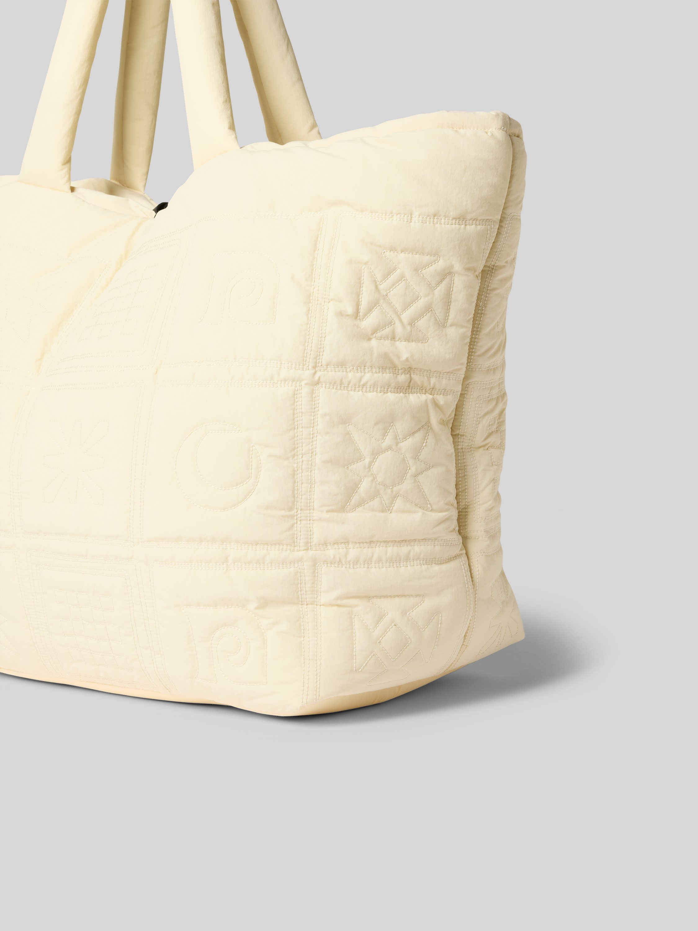 Der Shopper von Nanushka kombiniert stilvolle Steppnähte mit praktischen Details wie einem offenen Hauptfach, das durch Bänder sicher geschlossen werden kann. Die langen Tragehenkel sorgen für Komfort, während ein Innenfach zusätzlichen Stauraum bietet. Logo-Details runden das Design ab.