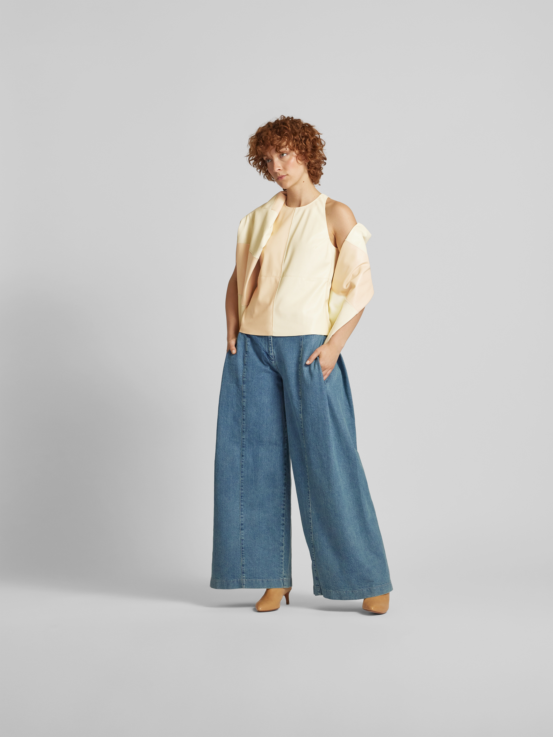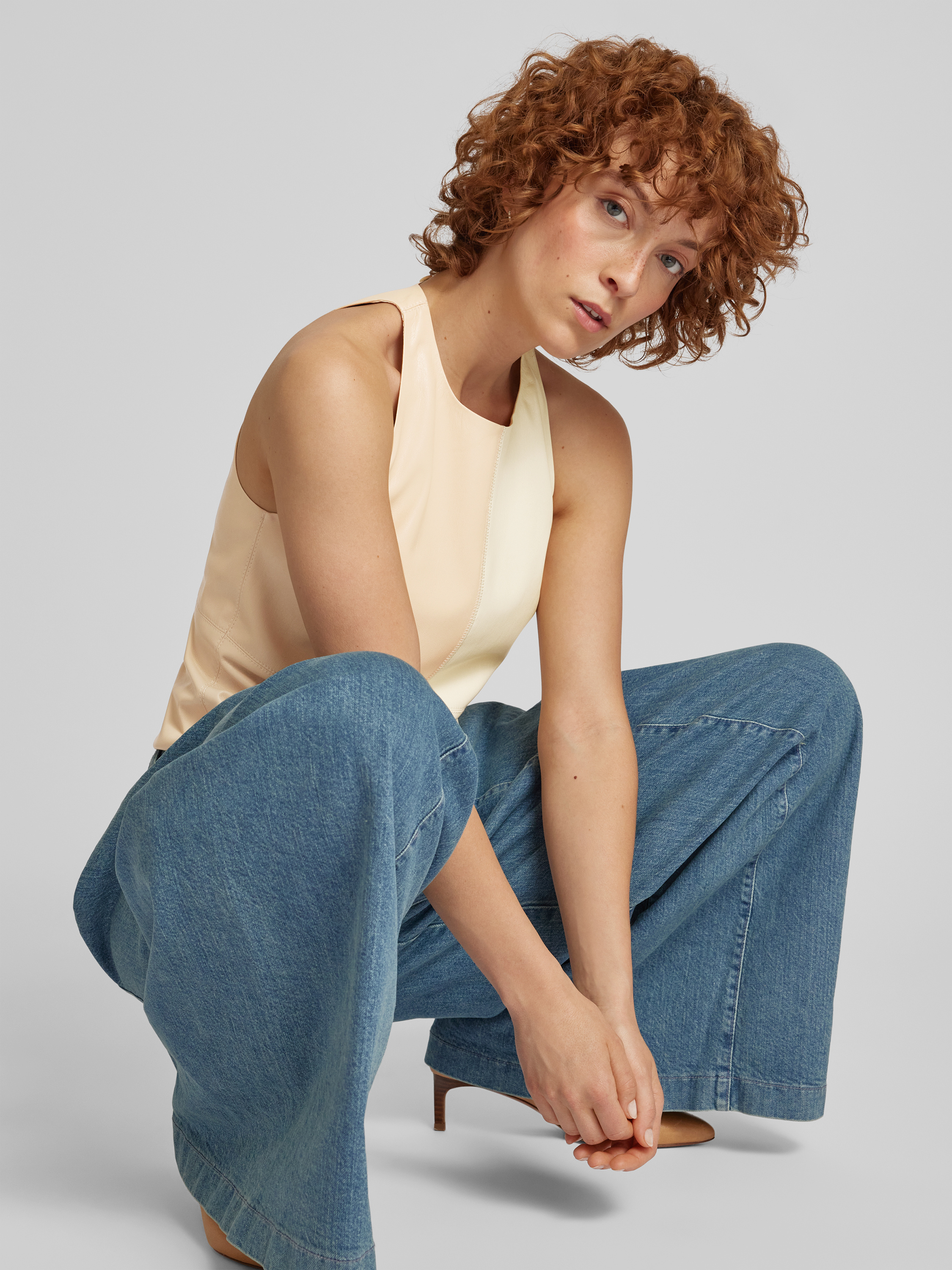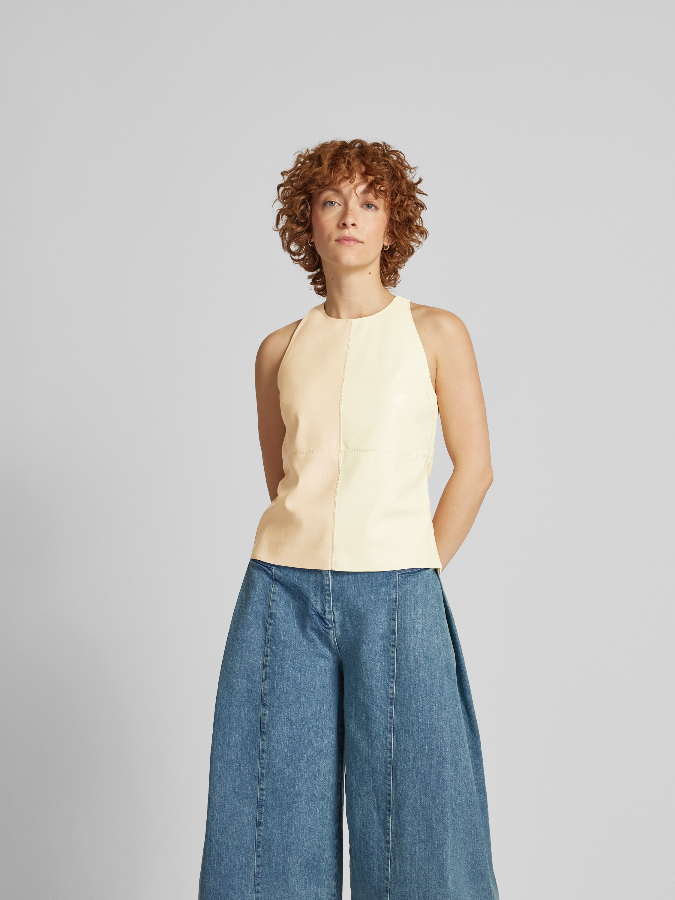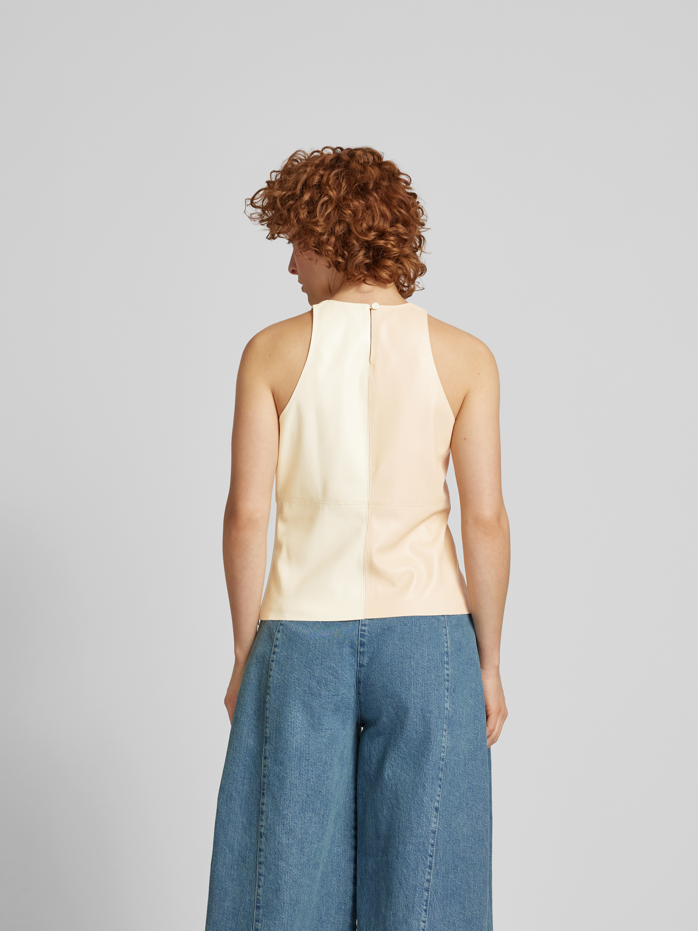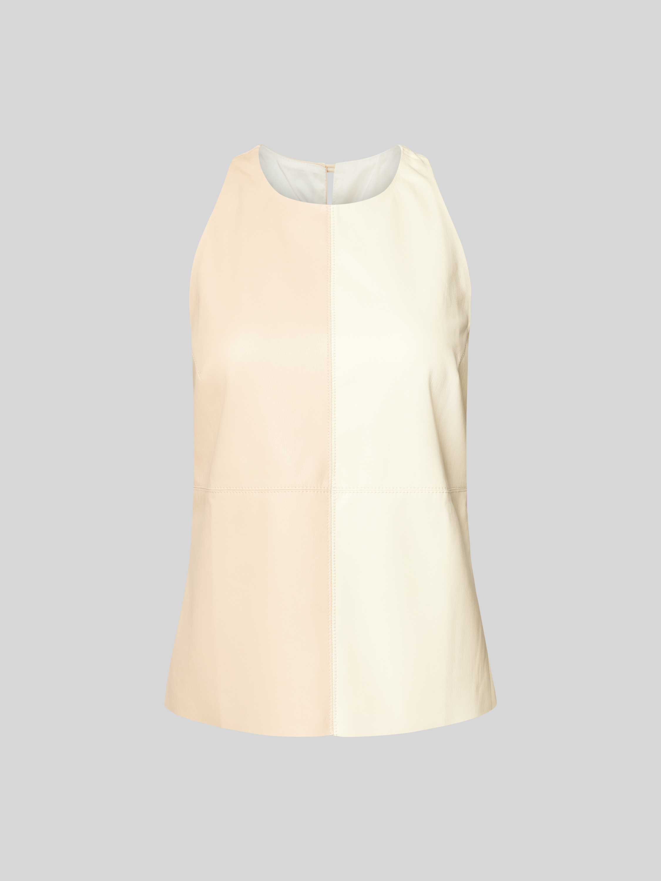 Das Top von Nanushka zeigt sich in Two-Tone-Machart und fällt durch feine Ziernähte auf. Der gerade Schnitt sowie der Rundhalsausschnitt sorgen für eine angenehme Passform, während der rückseitige Knopfverschluss das An- und Ausziehen unkompliziert gestaltet. Kombiniert wirkt es leger und vielseitig.