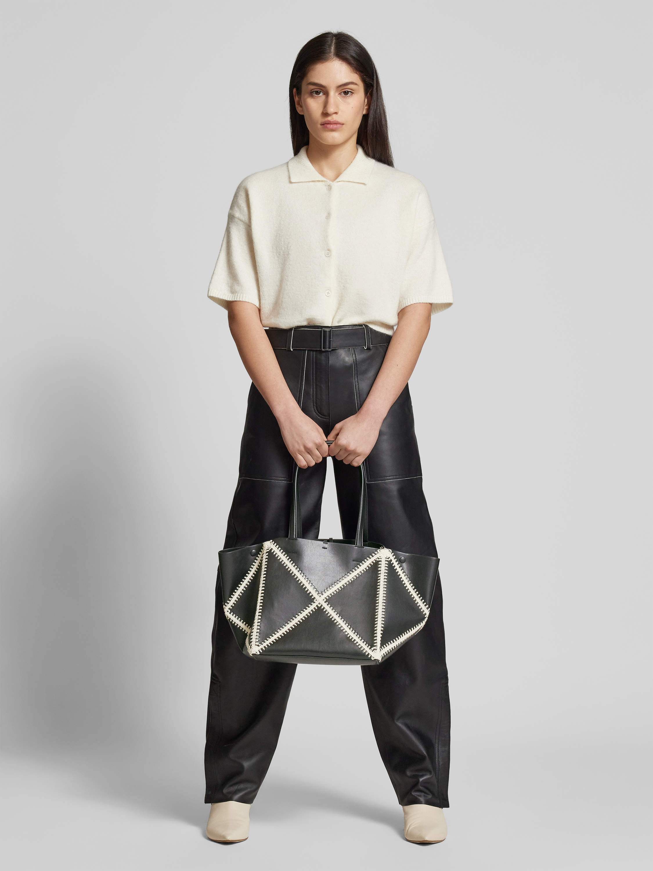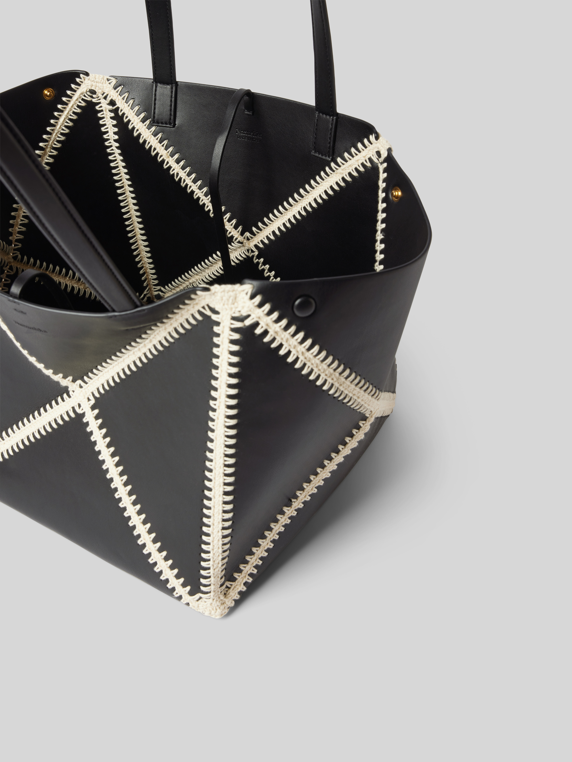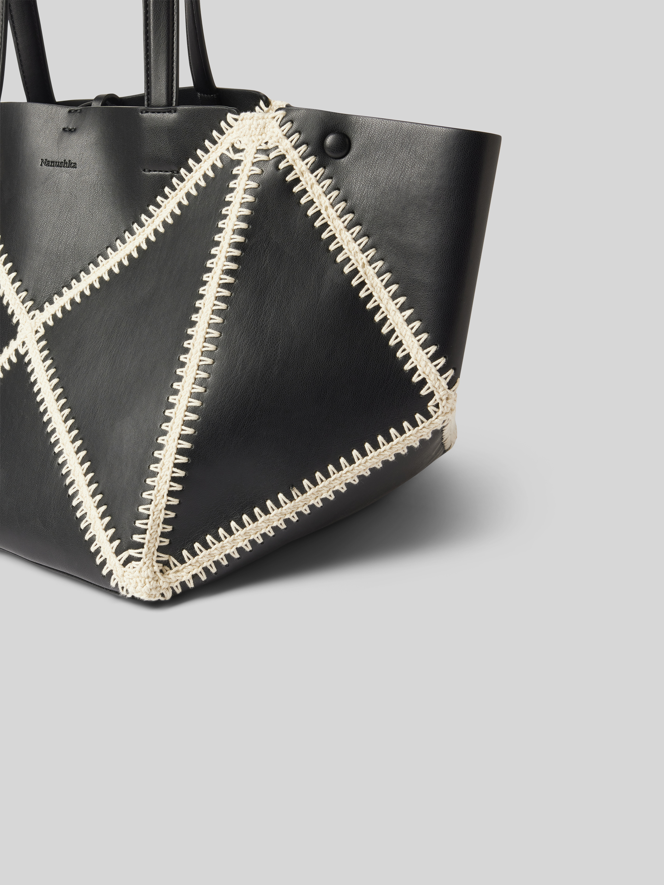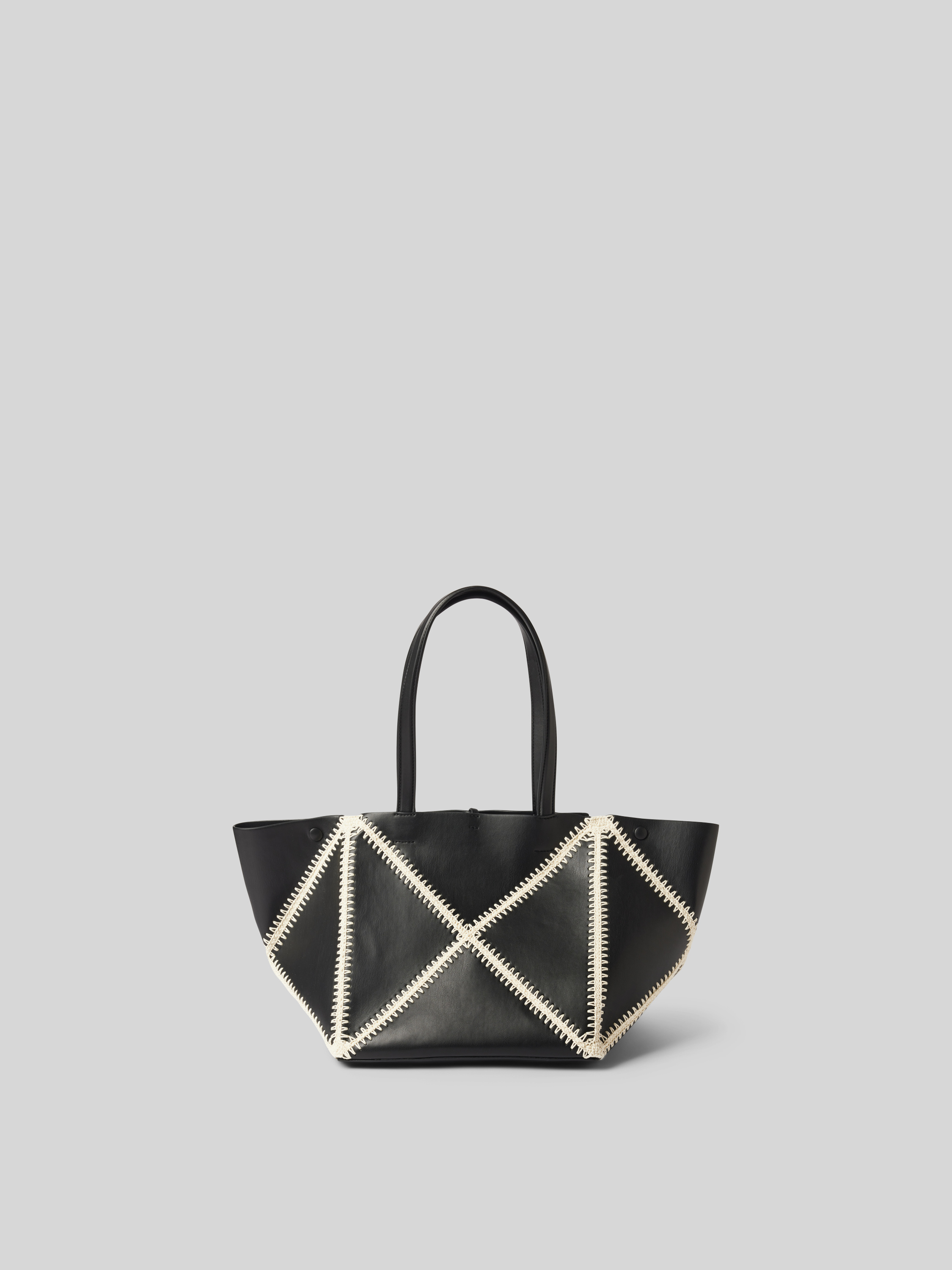 Die Damen Tote Bag von Nanushka zeigt sich mit einem klaren Design, das durch das dezente Label-Detail akzentuiert wird. Durch die praktische Form und die stabilen Tragehenkel lässt sich der Handtaschen-Look unkompliziert in den Alltag integrieren. Im Hauptfach bleibt ausreichend Platz für persönliche Dinge.