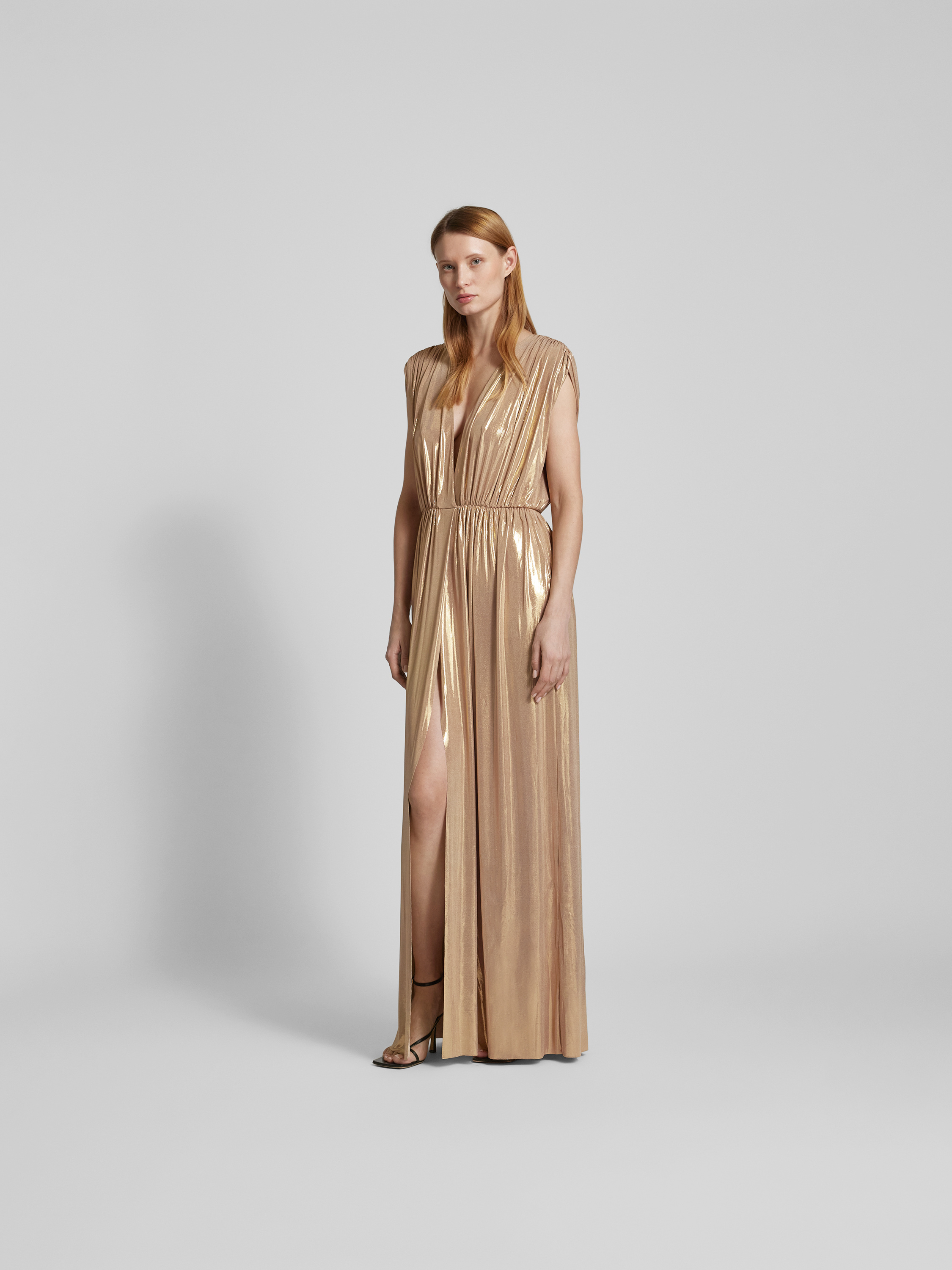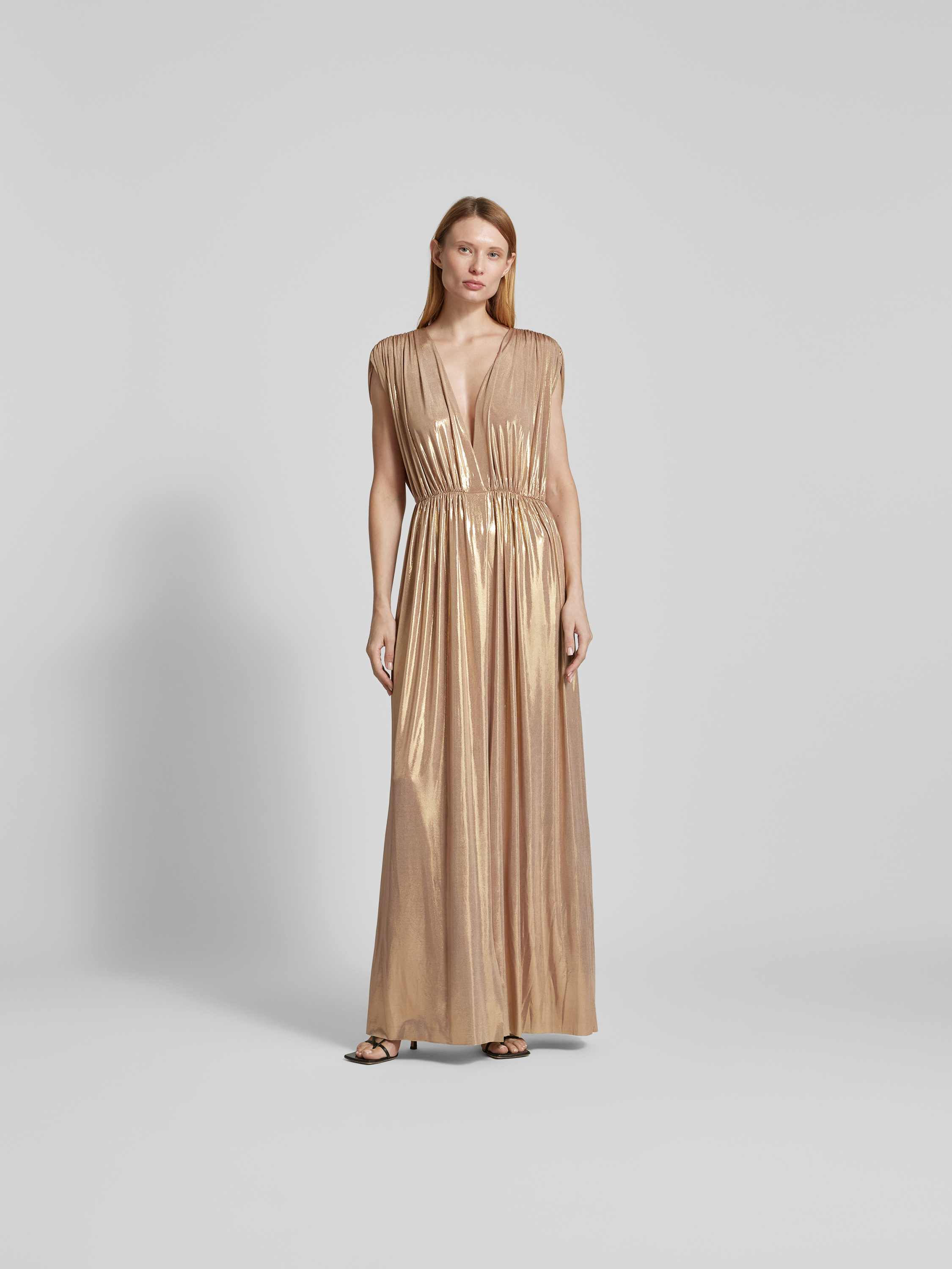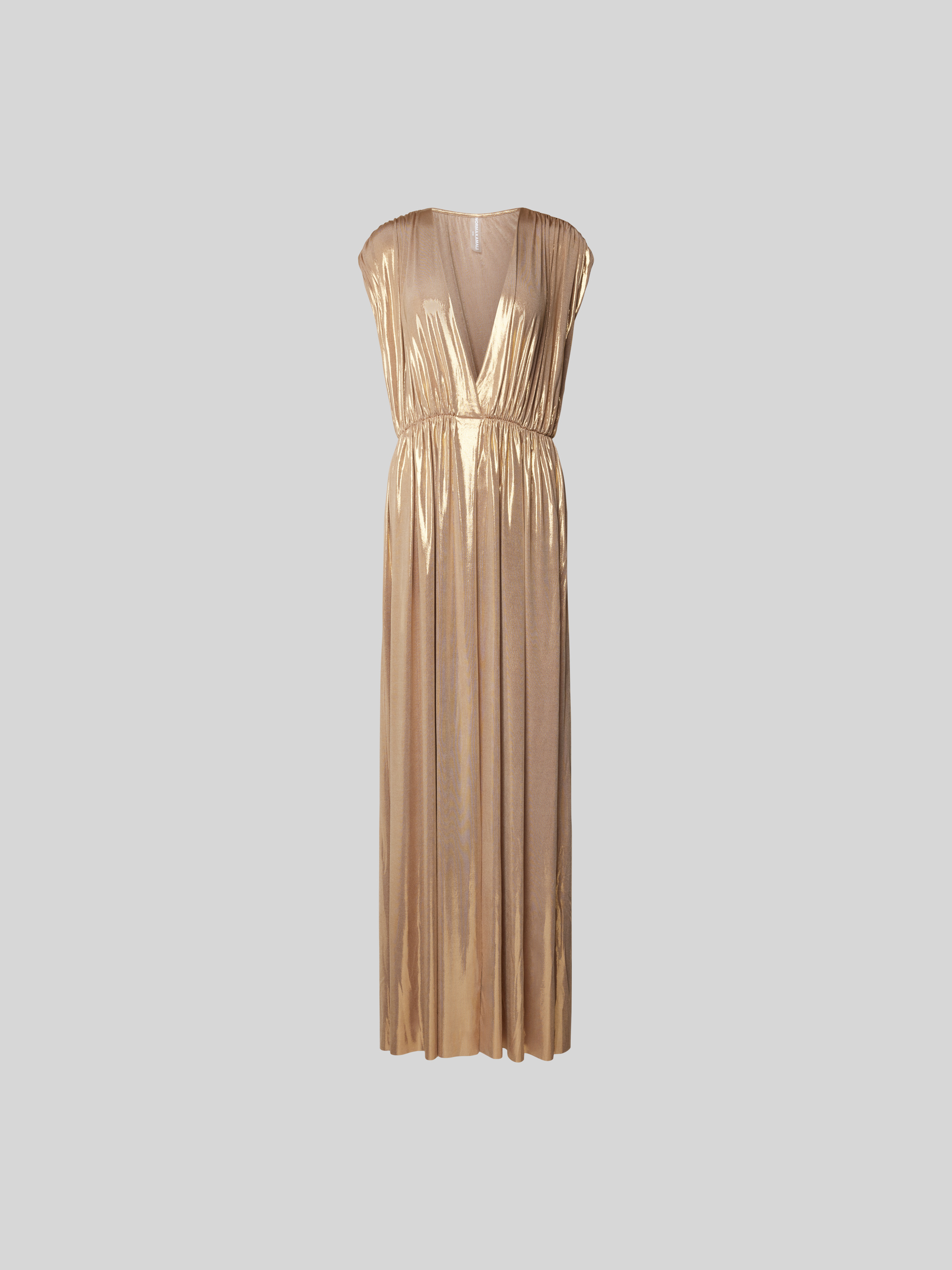 Das Maxikleid mit Raffungen von Norma Kamali fällt locker und sorgt mit seinem V-Ausschnitt für eine lässige Silhouette. Durch den Material-Mix mit Stretch-Anteil erhält das Kleid angenehme Bewegungsfreiheit. Die Raffungen setzen dezente Akzente, die den Schnitt spannend ergänzen.