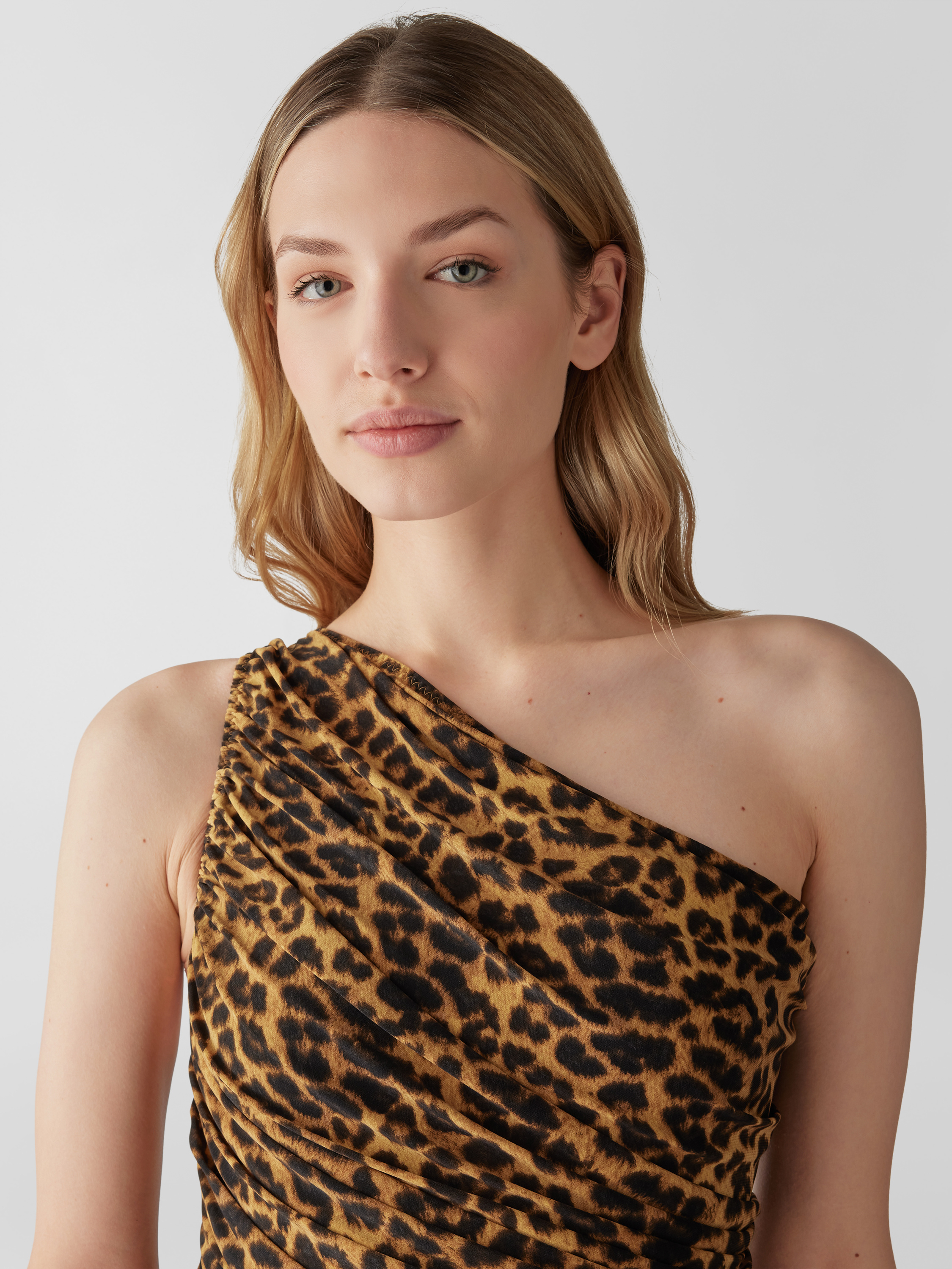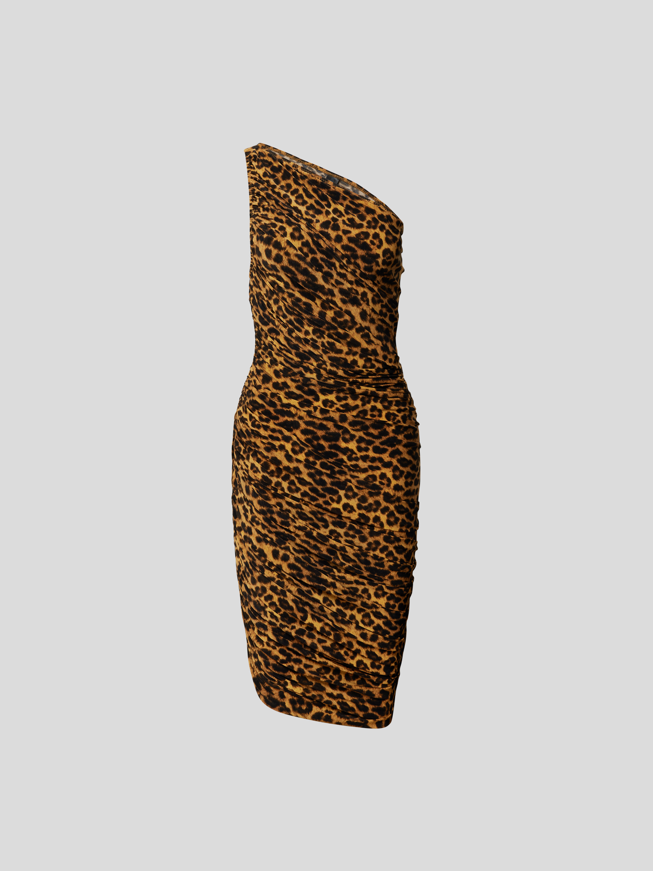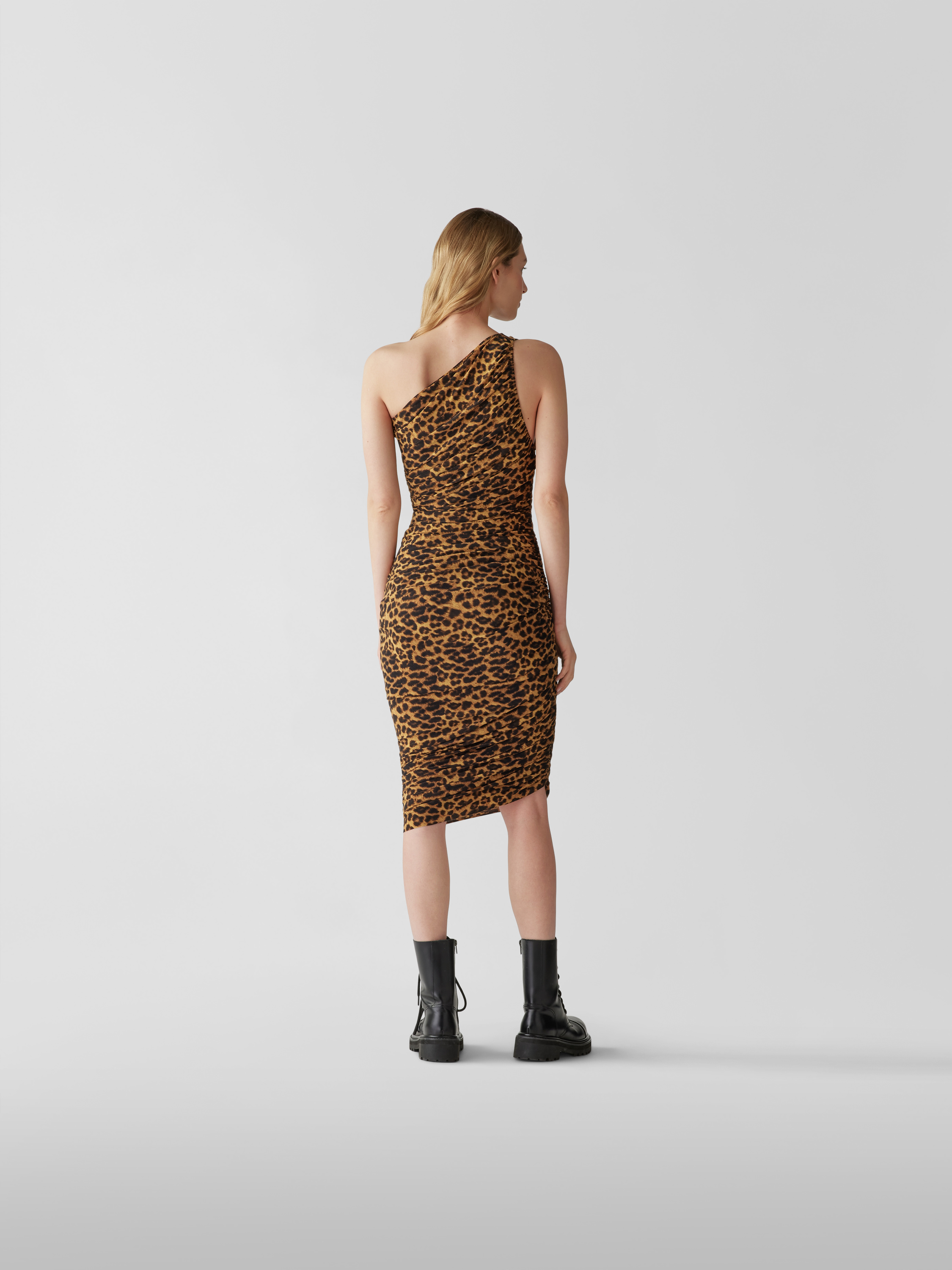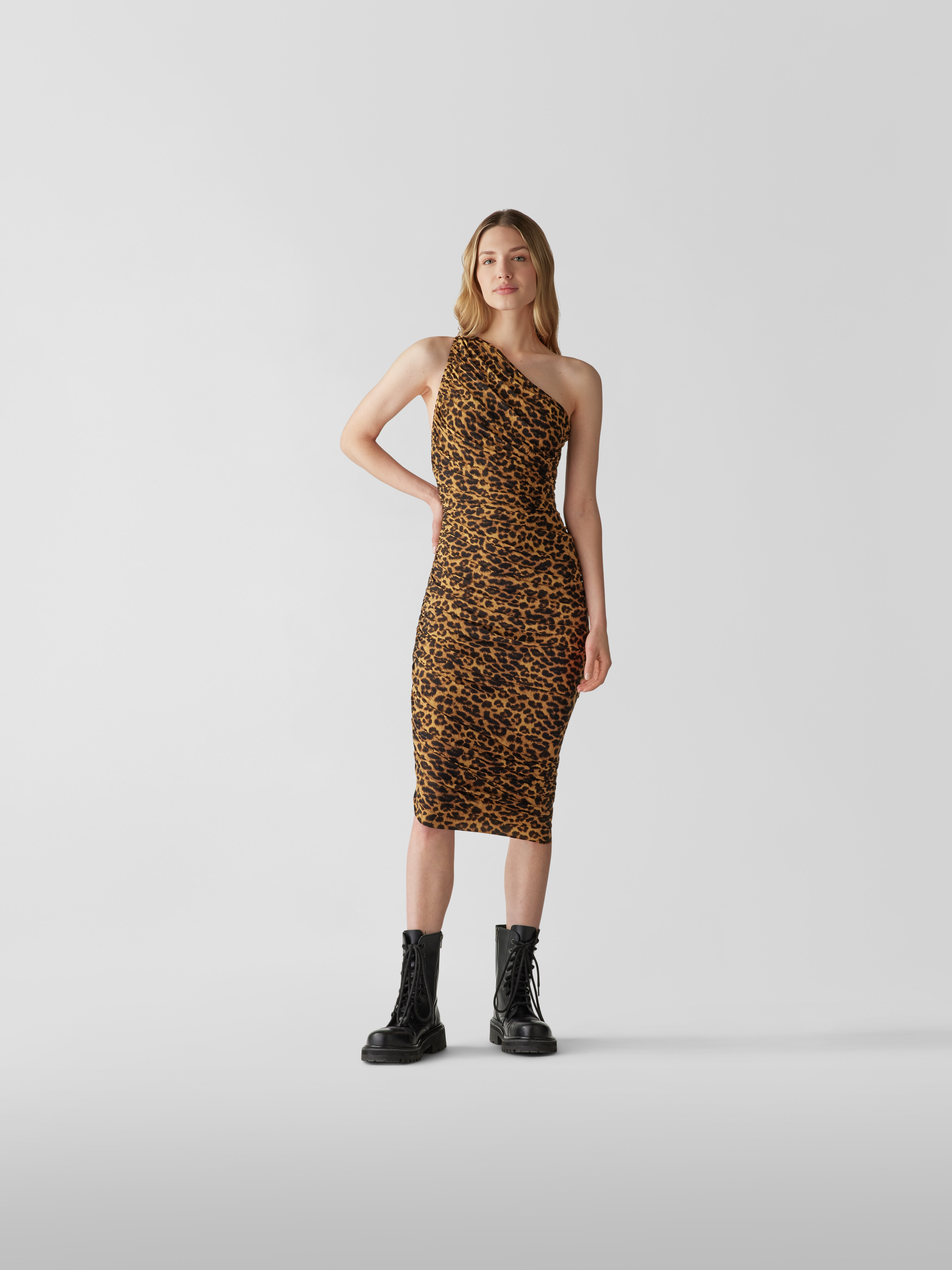 Das Damenkleid von Norma Kamali schmiegt sich durch die eng anliegende Passform angenehm an die Silhouette an und bringt das One-Shoulder-Design dezent zur Geltung. Dank des elastischen Material-Mixes bleibt Bewegungsfreiheit erhalten. Der Animal-Print setzt einen markanten Akzent, während feine Raffungen Struktur verleihen.