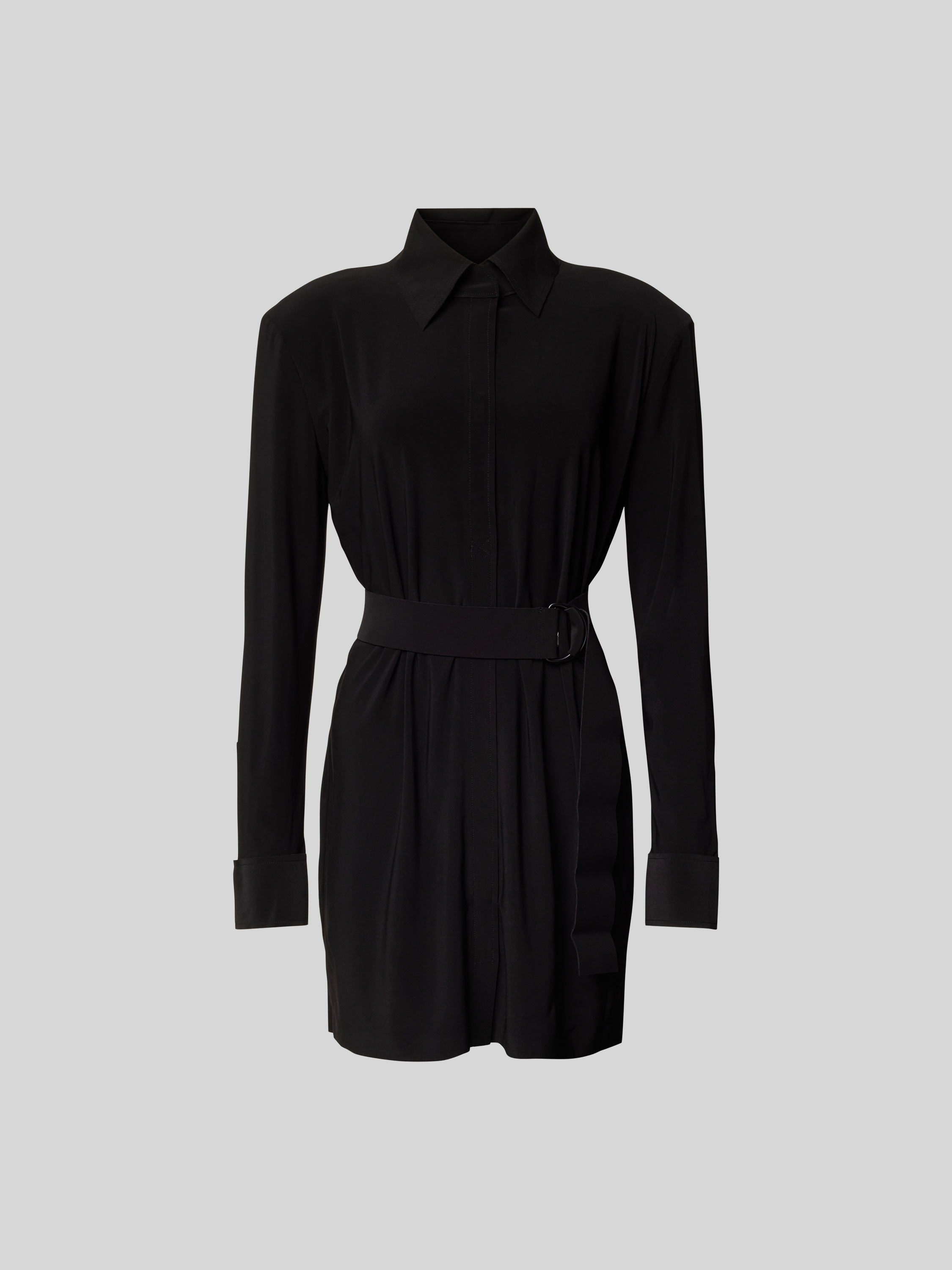 Das Damen Minikleid von Norma Kamali zeichnet sich durch seinen taillierten Schnitt und den Hemdblusenkragen aus, wodurch eine feminine Silhouette entsteht. Dank des Material-Mix mit Stretch-Anteil sitzt das Kleid angenehm und passt sich flexibel an. Ein Taillengürtel rundet den Look ab und sorgt für zusätzlichen Halt.