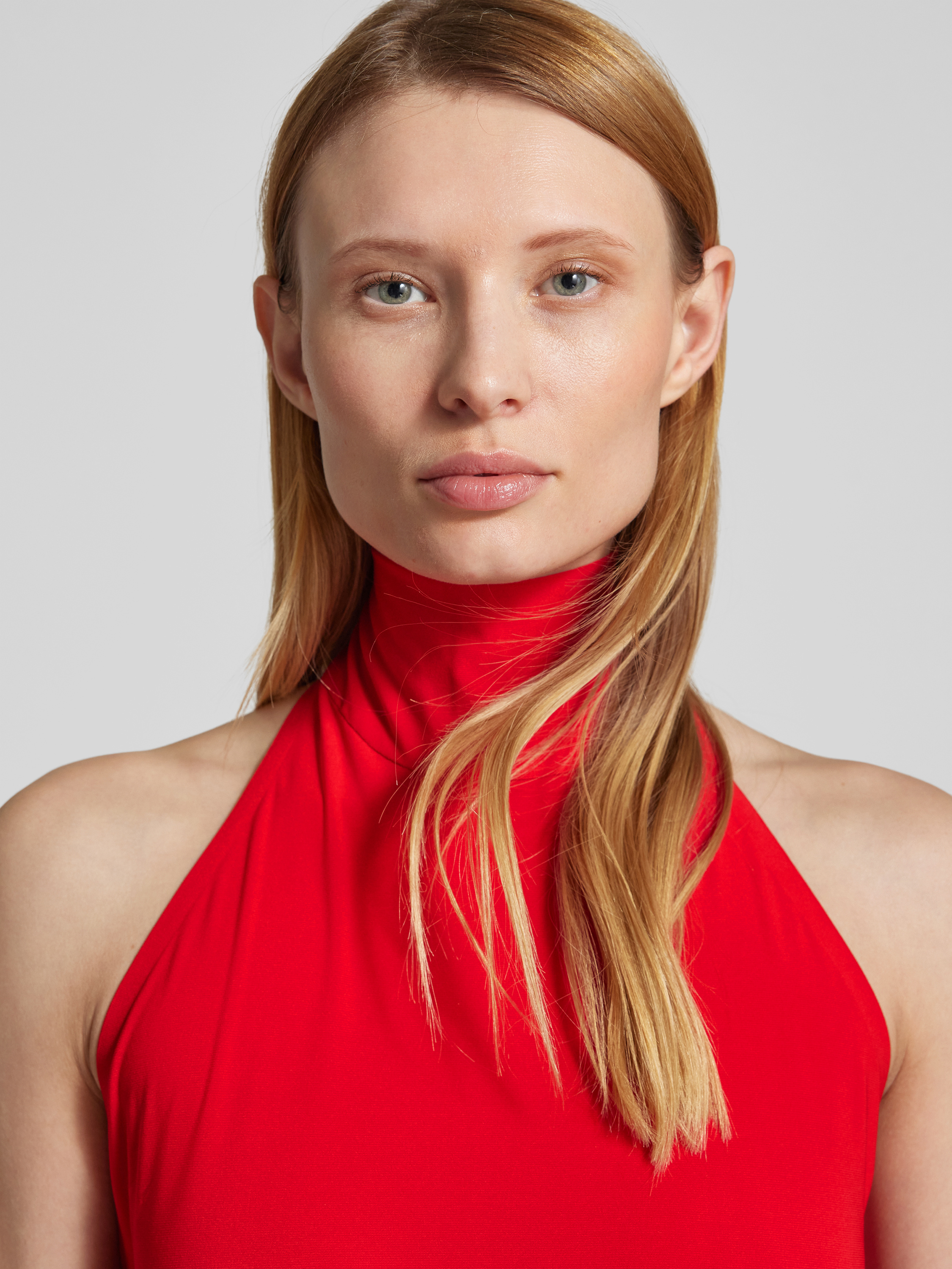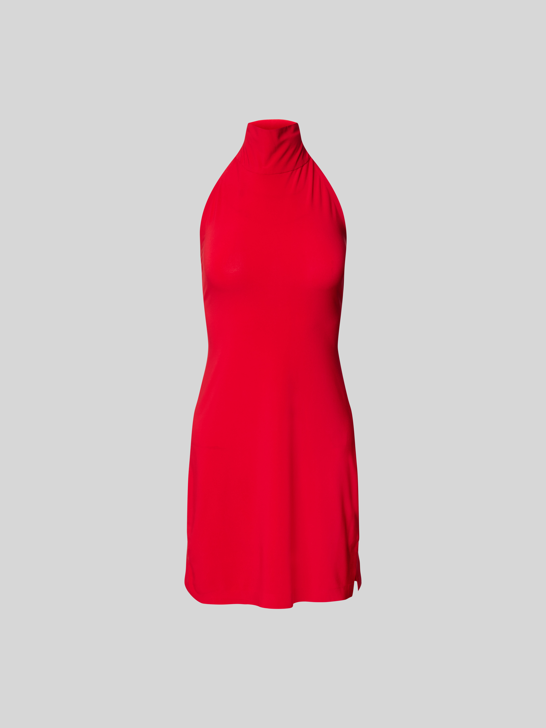 Das Damen Minikleid von Norma Kamali schmiegt sich durch den taillierten Schnitt angenehm an den Körper an und lässt Bewegungsfreiheit dank des Material-Mix mit Stretch-Anteil zu. Der Stehkragen und das ärmellose Design unterstreichen eine klare Silhouette, während Seitenschlitze dem Look eine moderne Note verleihen. Durch diese Kombination eignet sich das Minikleid für vielfältige Anlässe, bei denen Komfort und Stil gefragt sind.