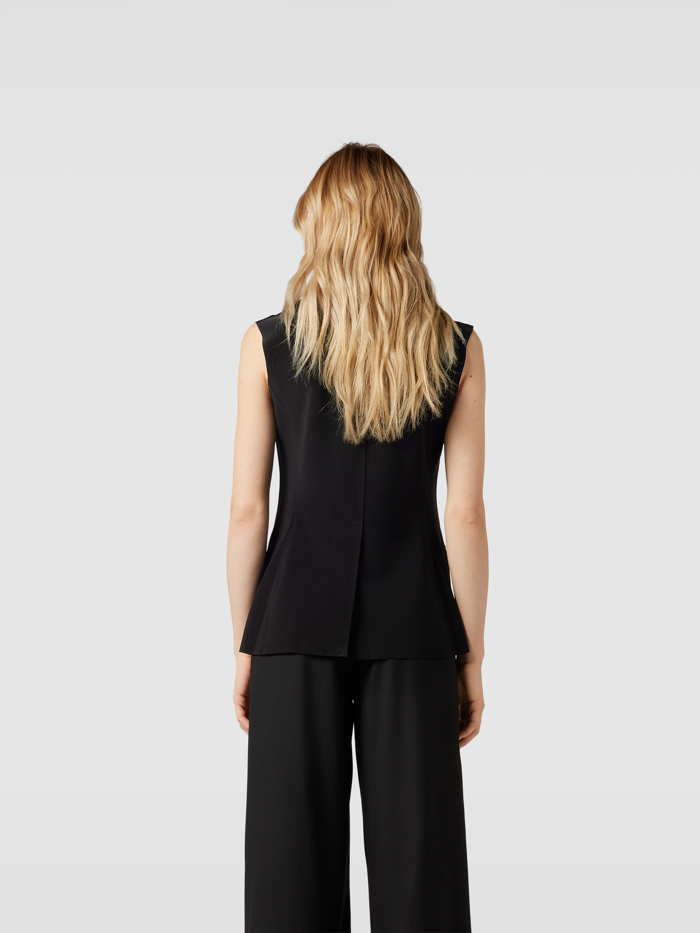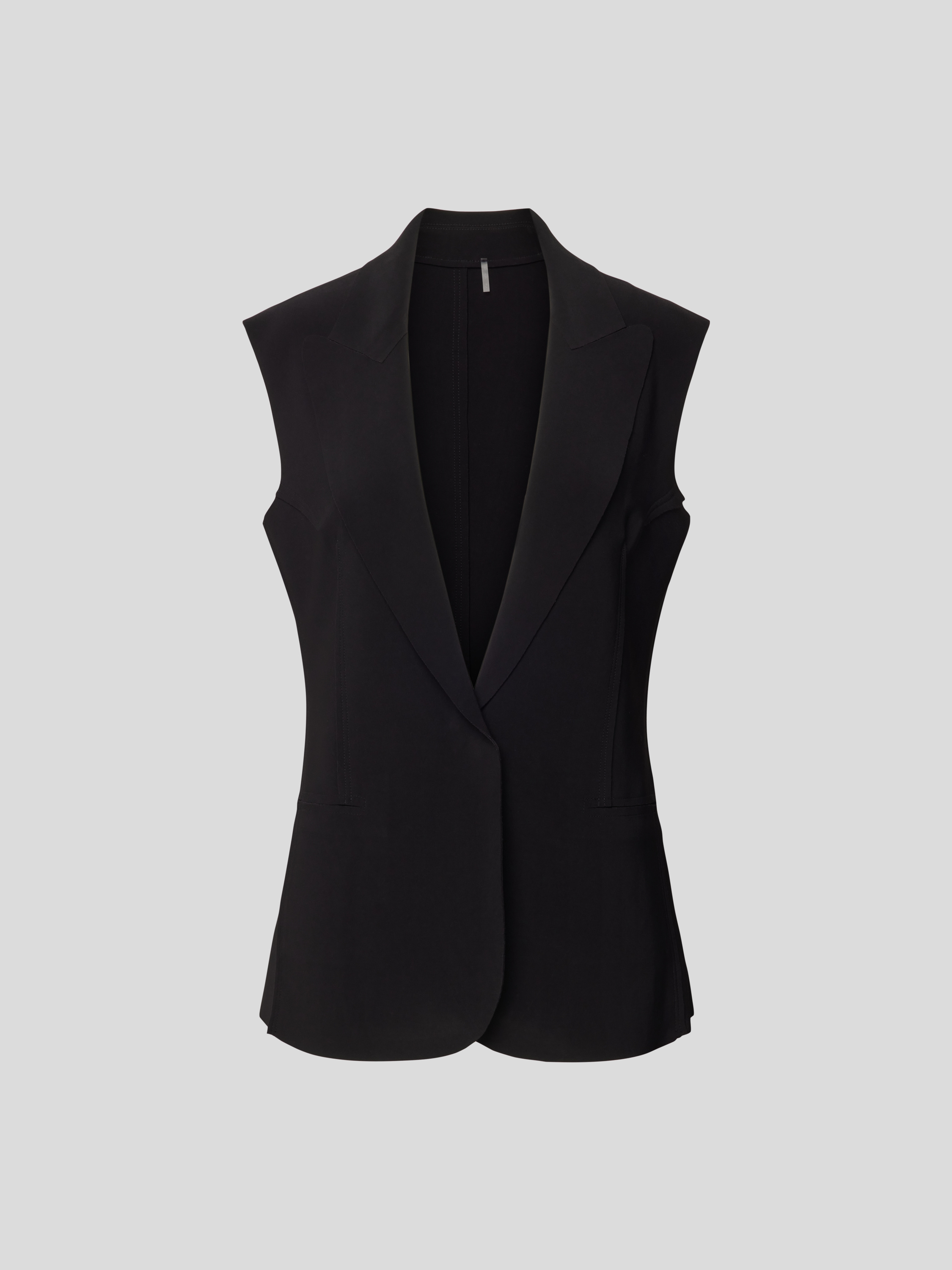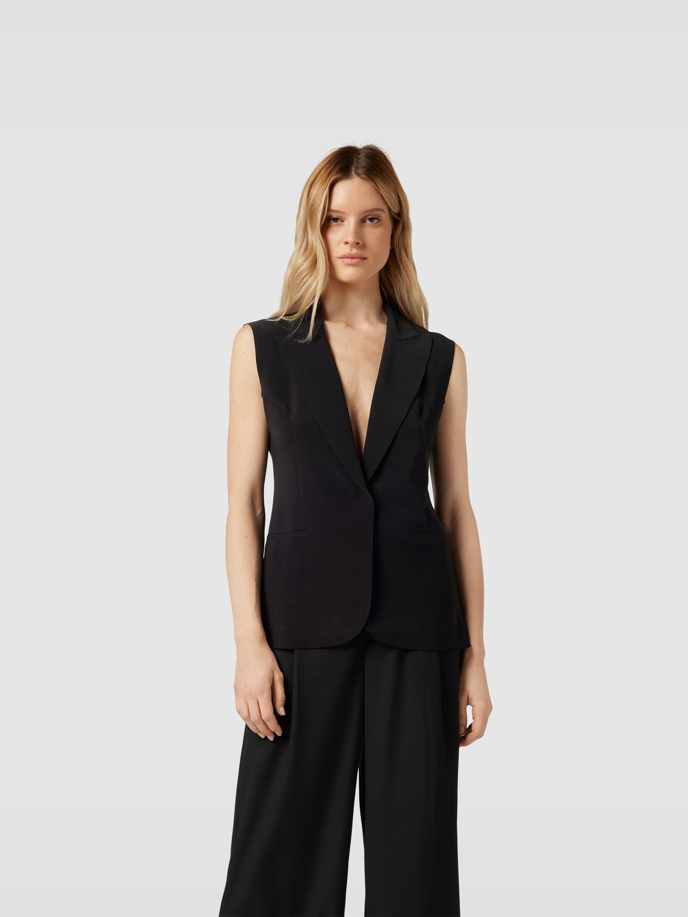 Die Damen Weste von Norma Kamali zeigt sich in gerader Passform und überzeugt mit einem klassischen Reverskragen. Durch den elastischen Material-Mix schmiegt sich die Weste angenehm an, während Paspeltaschen dezent Stauraum schaffen. So lässt sich das Modell vielseitig kombinieren und trägt sich bequem.