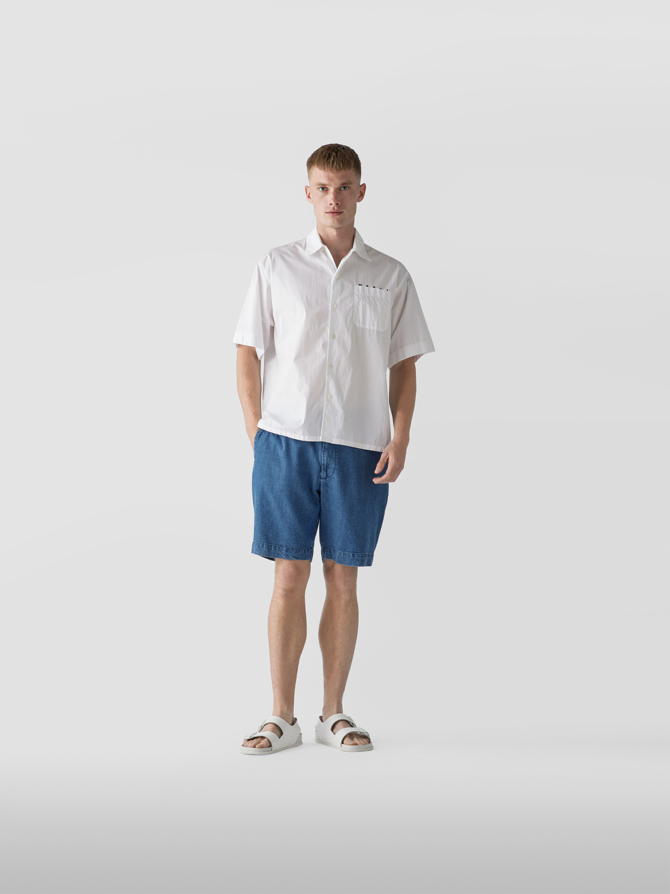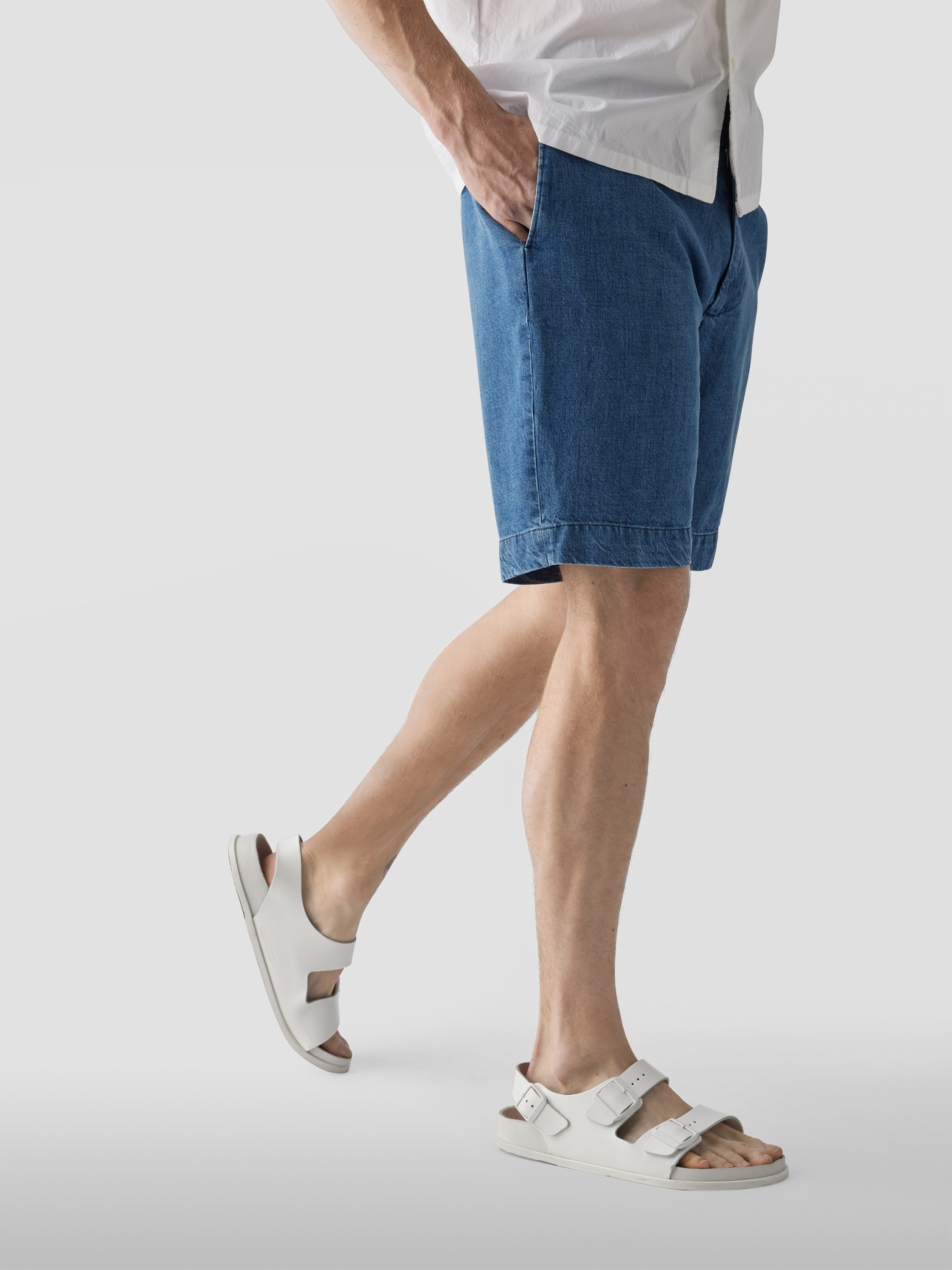 Die Herrenshorts von Officine Générale fallen durch ihren geraden Schnitt angenehm locker und bieten durch das weiche Lyocell-Material ein leichtes Tragegefühl. Eingrifftaschen und ein elastischer Bund mit Tunnelzug sorgen für unkomplizierte Alltagstauglichkeit. So eignet sich die Jeansshorts mit Eingrifftaschen für entspannte Aktivitäten.