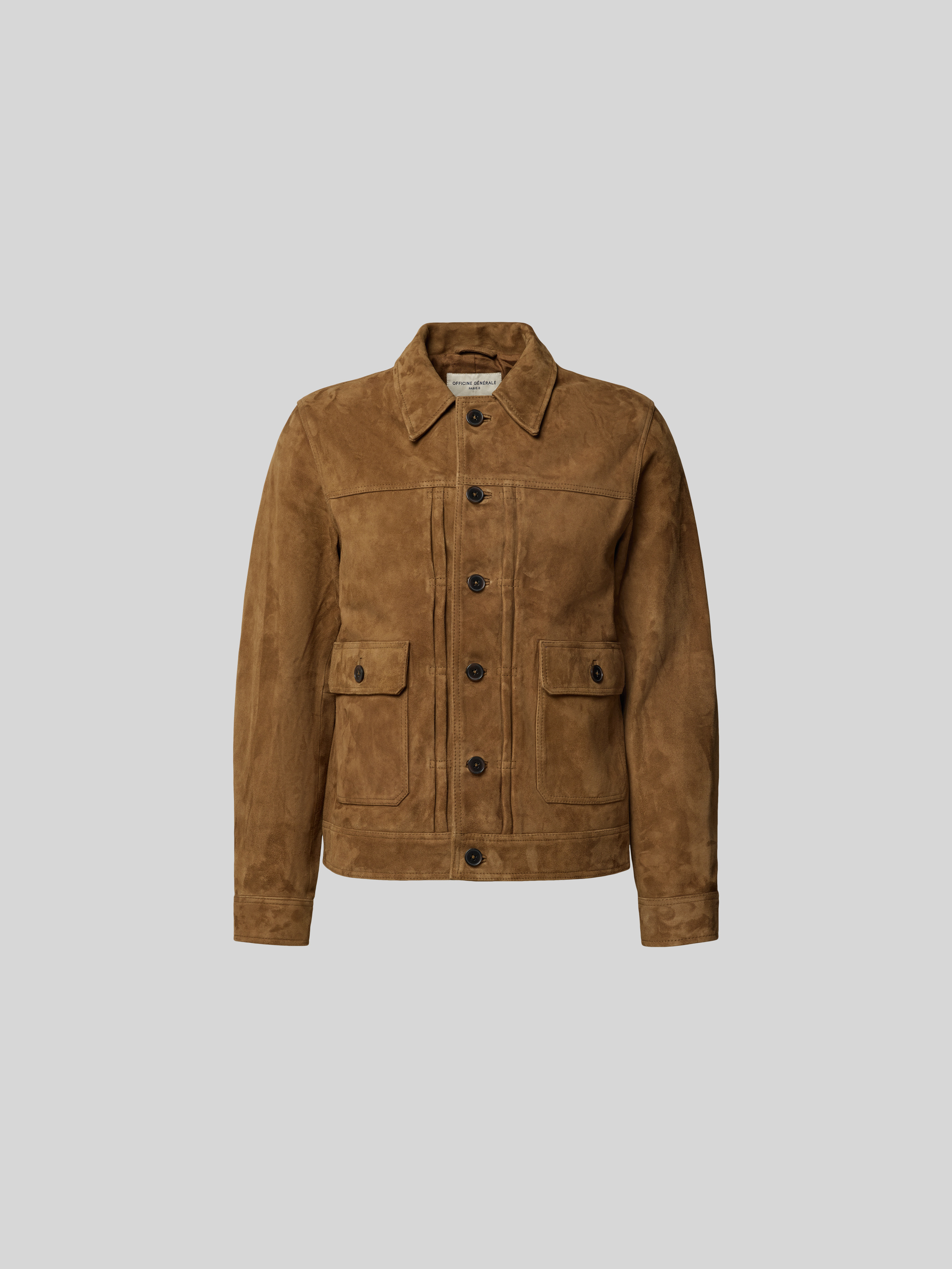 Die Herren Jacke von Officine Générale zeigt sich im Regular Fit und legt mit reinem Ziegenleder einen besonderen Akzent. Durch den Umlegekragen entsteht ein klassischer Look, während Pattentaschen das Gesamtbild abrunden. Damit eignet sich dieses Modell für vielseitige Kombinationen im Alltag.