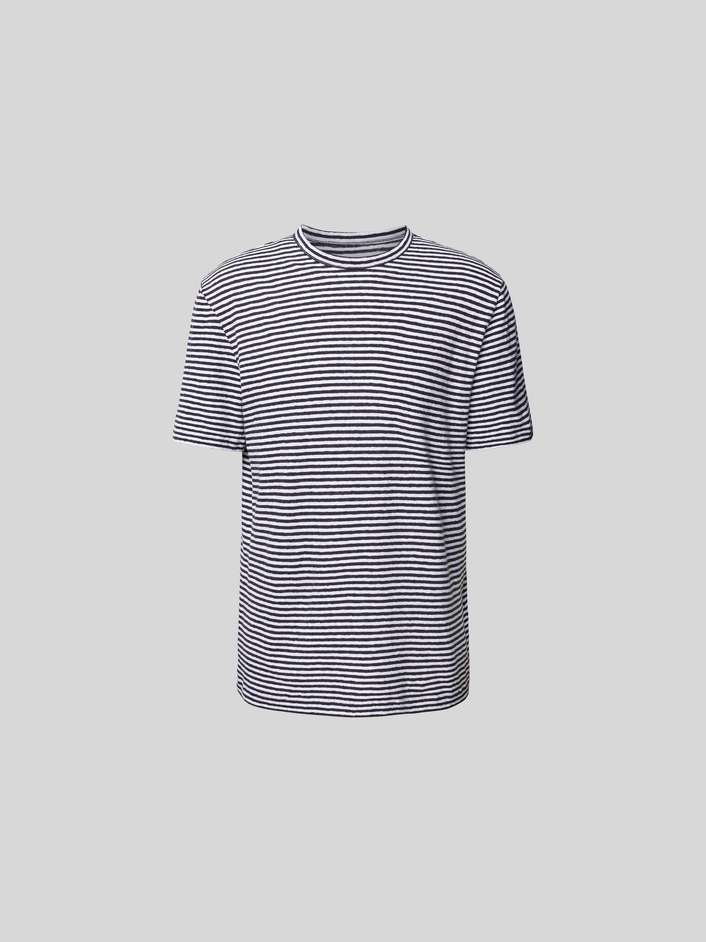 Das Herren T-Shirt von Officine Générale vereint die Leichtigkeit von Baumwolle und Leinen mit der angenehmen Struktur von Frottee. Die gerade Passform und der Rundhalsausschnitt bieten ein komfortables Tragegefühl, während das kurzärmelige Design für eine lässige Optik sorgt. Ideal für entspannte Tage.