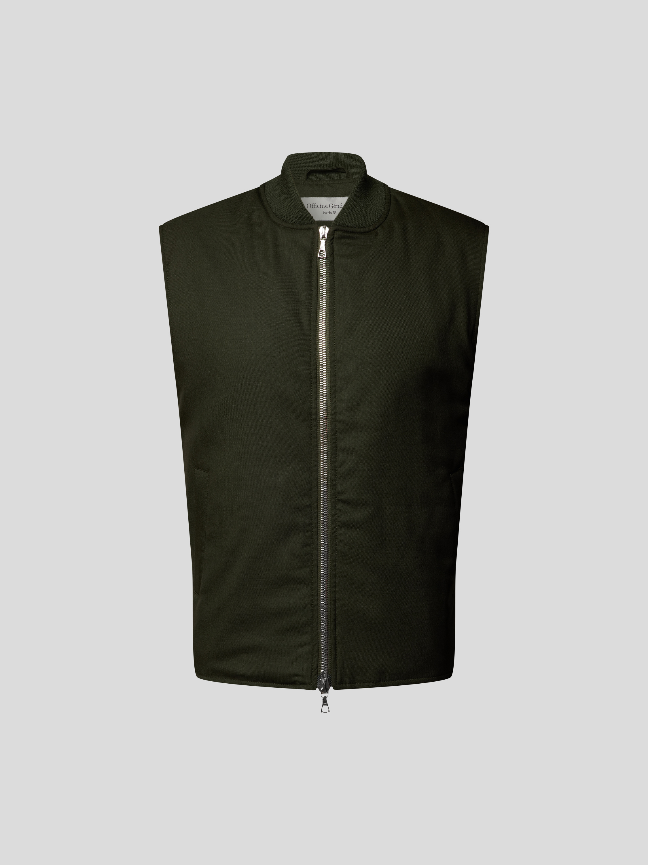 Die Herren Weste von Officine Générale in reiner Wolle zeichnet sich durch ihren geraden Schnitt und einen angenehm anliegenden Stehkragen aus. Dank praktischer Taschen lassen sich Kleinigkeiten griffbereit verstauen, wodurch der Alltag unkompliziert bleibt. Die Passform sorgt für Bewegungsfreiheit und eine lässige Silhouette.