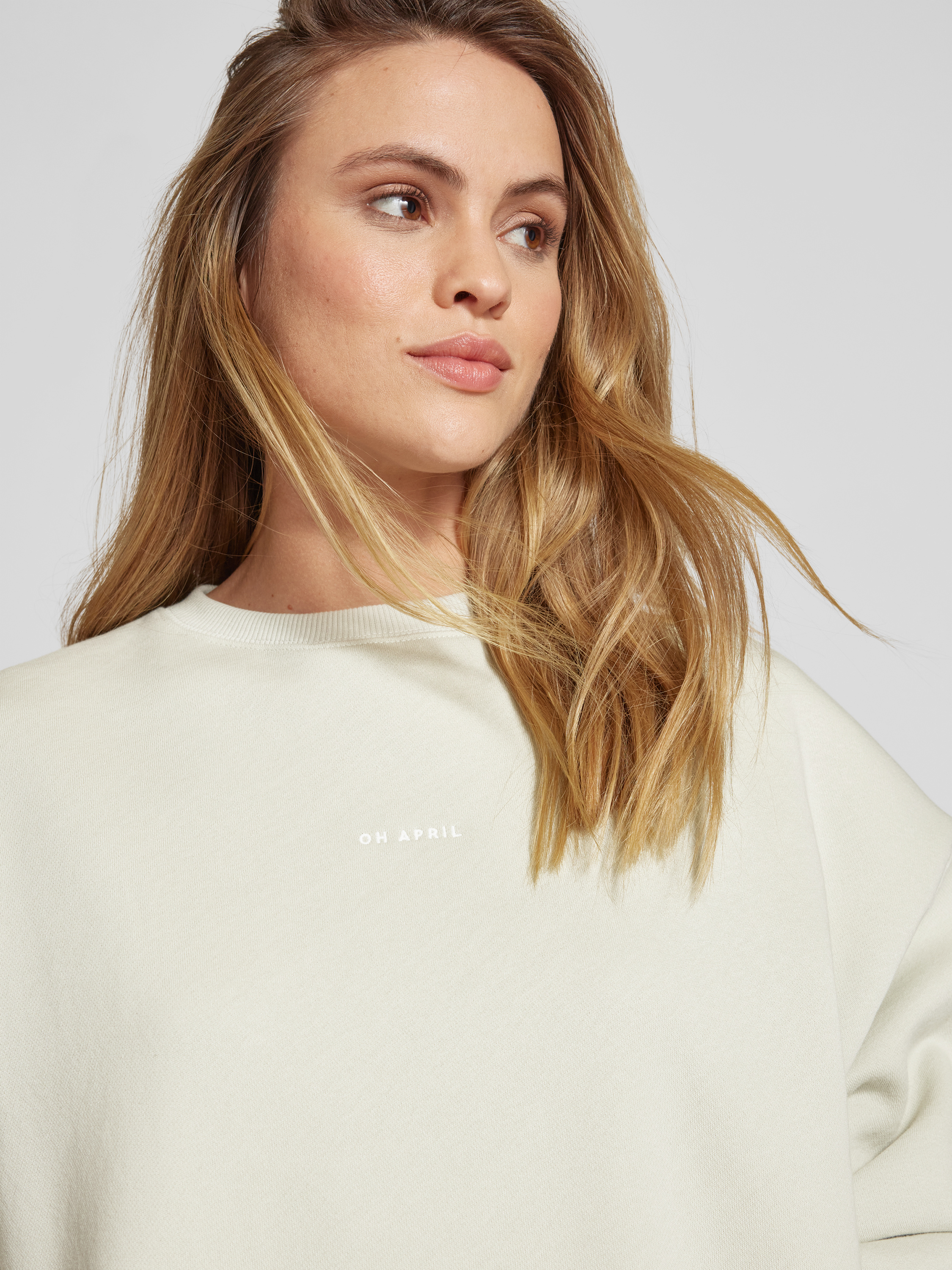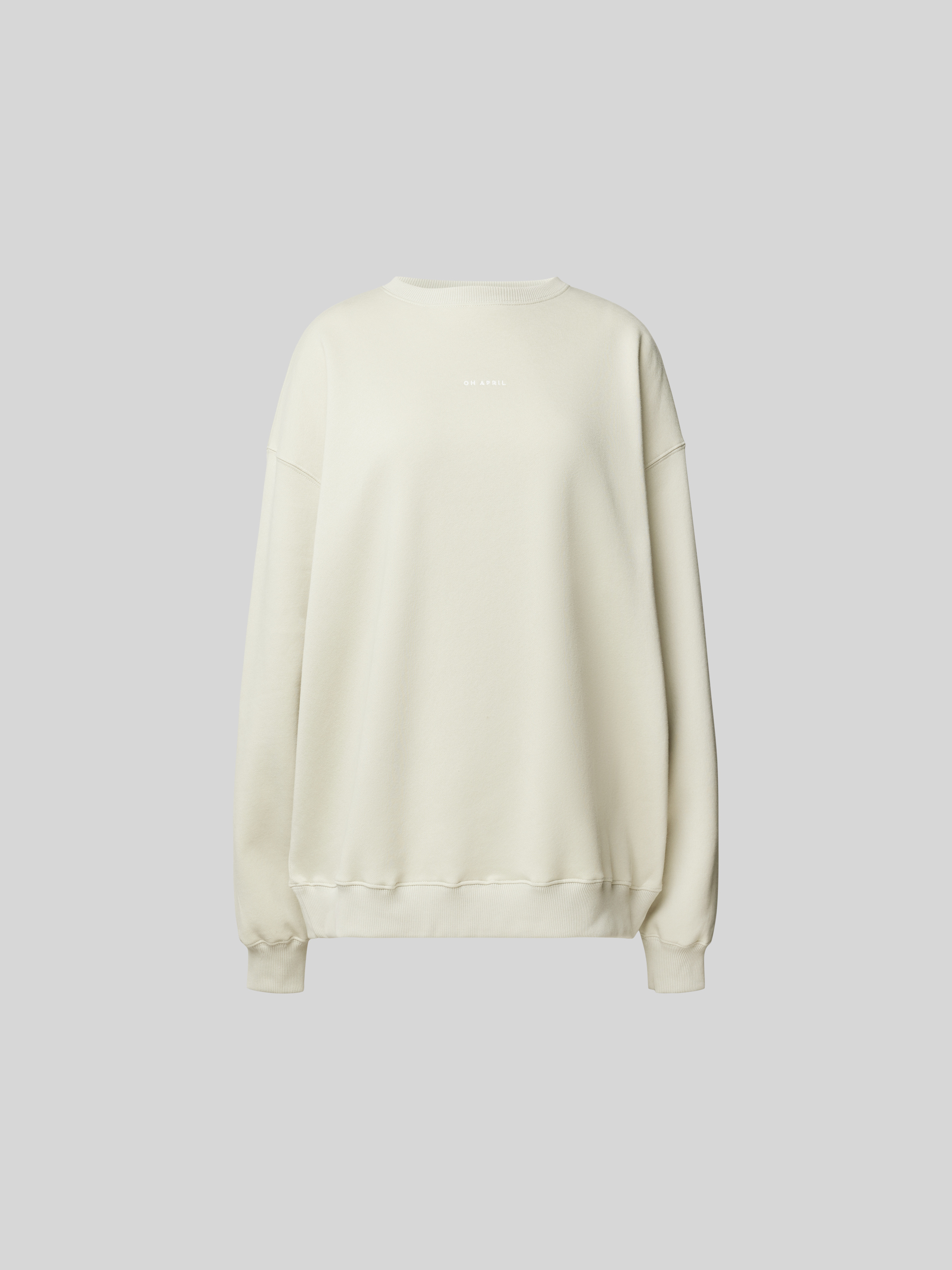 Das Damen Sweatshirt von OH APRIL aus einem Baumwoll-Mix vereint Komfort und Stil durch seinen legeren Oversized-Schnitt. Überschnittene Schultern und ein gerippter Stehkragen verleihen ihm eine lässige Note, während man sich in das weiche Material einkuscheln kann. Ideal für entspannte Tage.