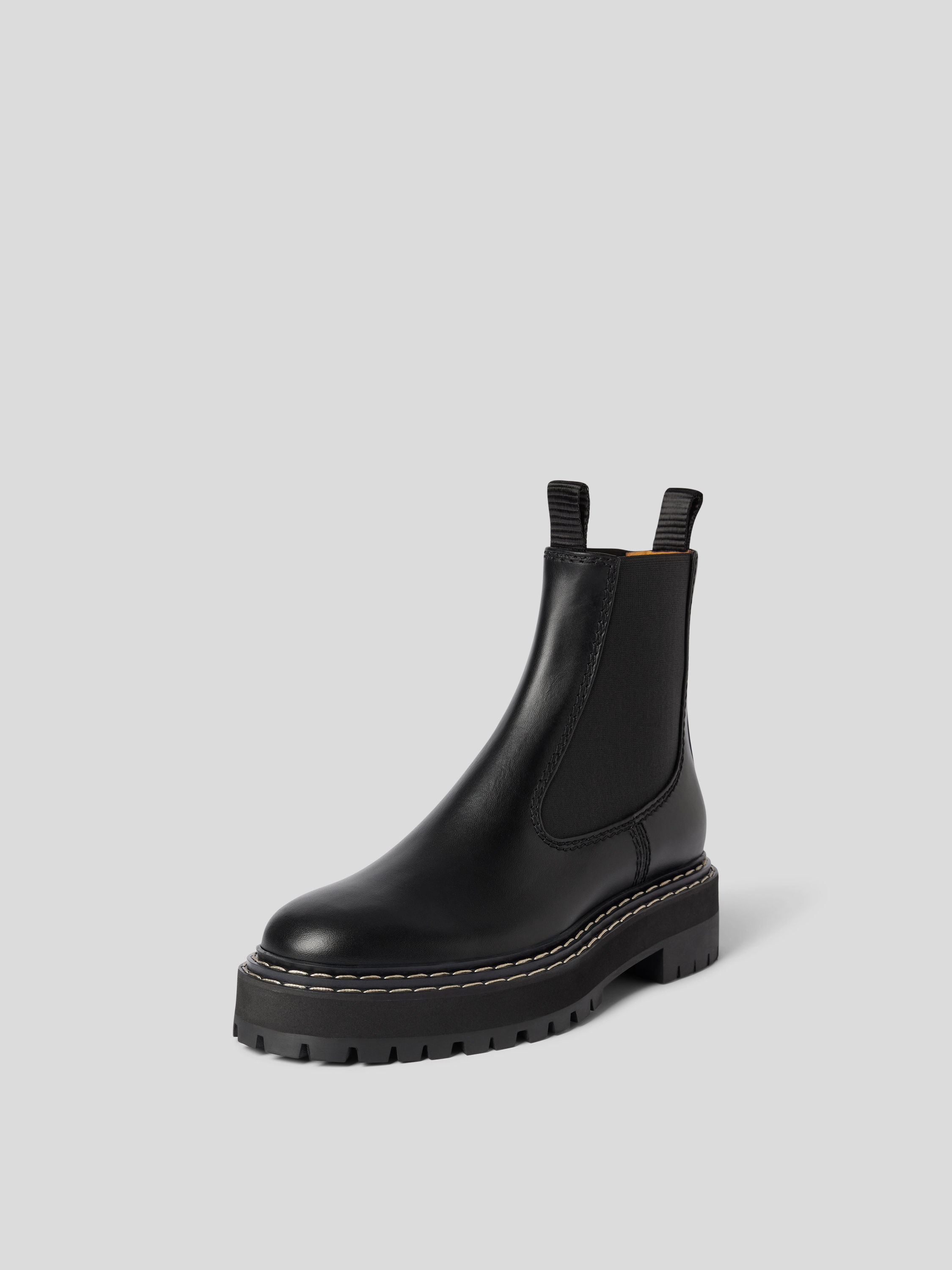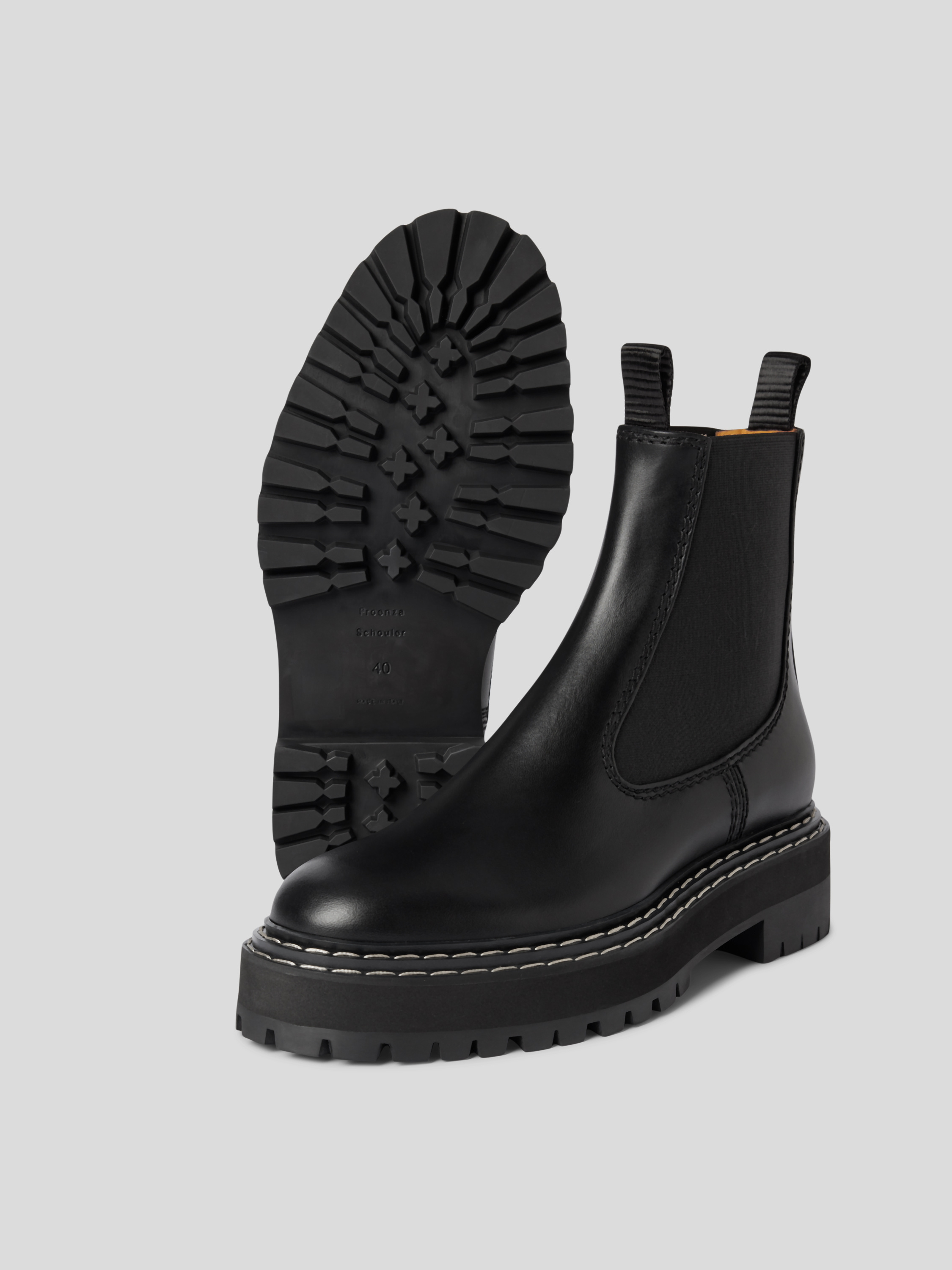 Die Damen Chelsea Boots von Proenza Schouler Shoes zeichnen sich durch ihr echtes Leder und eine abgerundete Form aus, wodurch sie angenehm am Fuß liegen. Das unifarbene Design wirkt schlicht und lässt sich vielseitig kombinieren. Durch die profilierte Sohle erhält man sicheren Halt im Alltag.