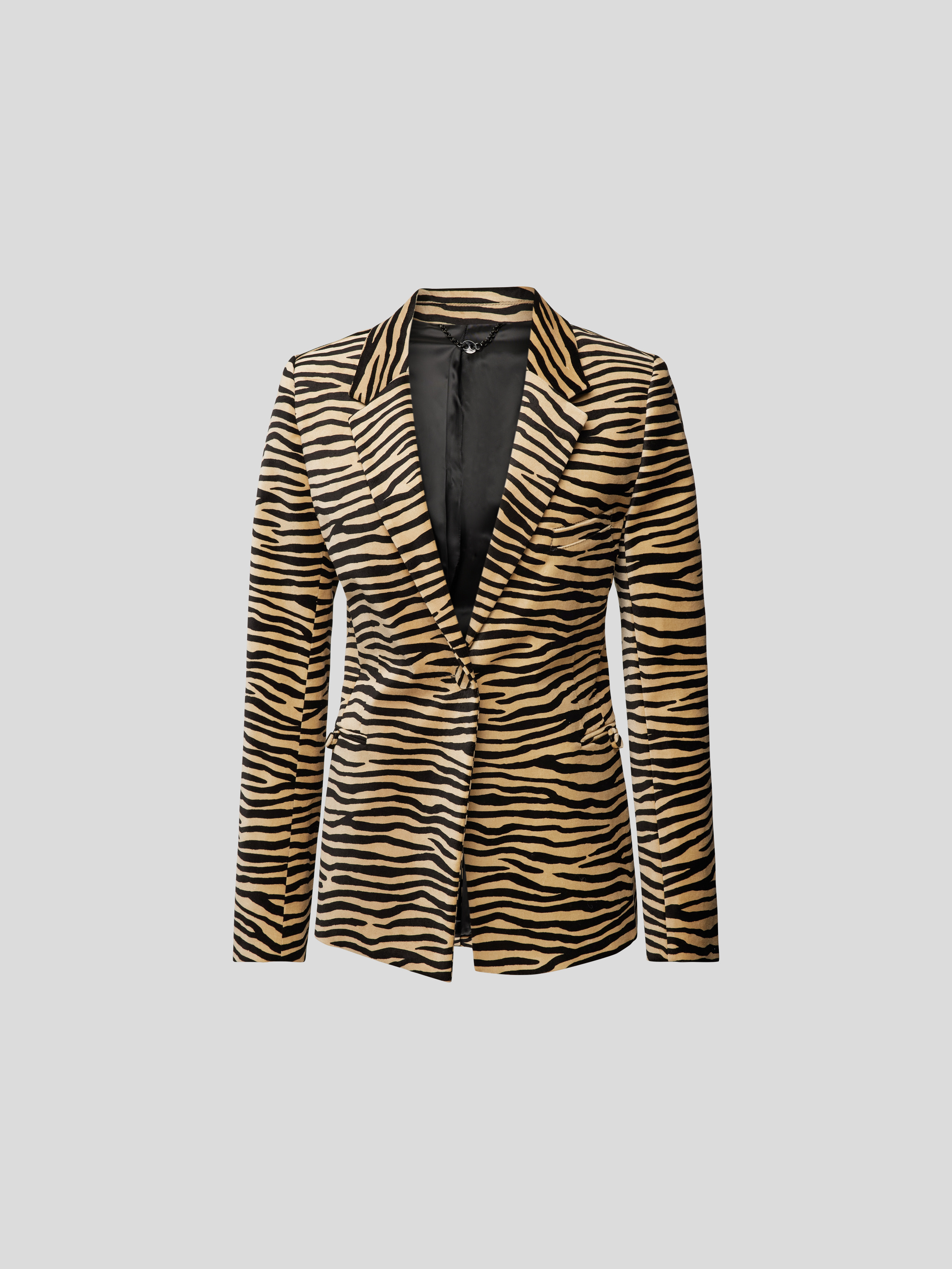 Der Damen Blazer mit Reverskragen von Paco Rabanne überzeugt durch einen taillierten Schnitt, der eine feminine Silhouette unterstreicht. Dank des Baumwoll-Elasthan-Mix sitzt das Modell angenehm und bewegungsfreundlich. Brust- und Paspeltaschen sorgen zudem für praktische Details im Alltag.