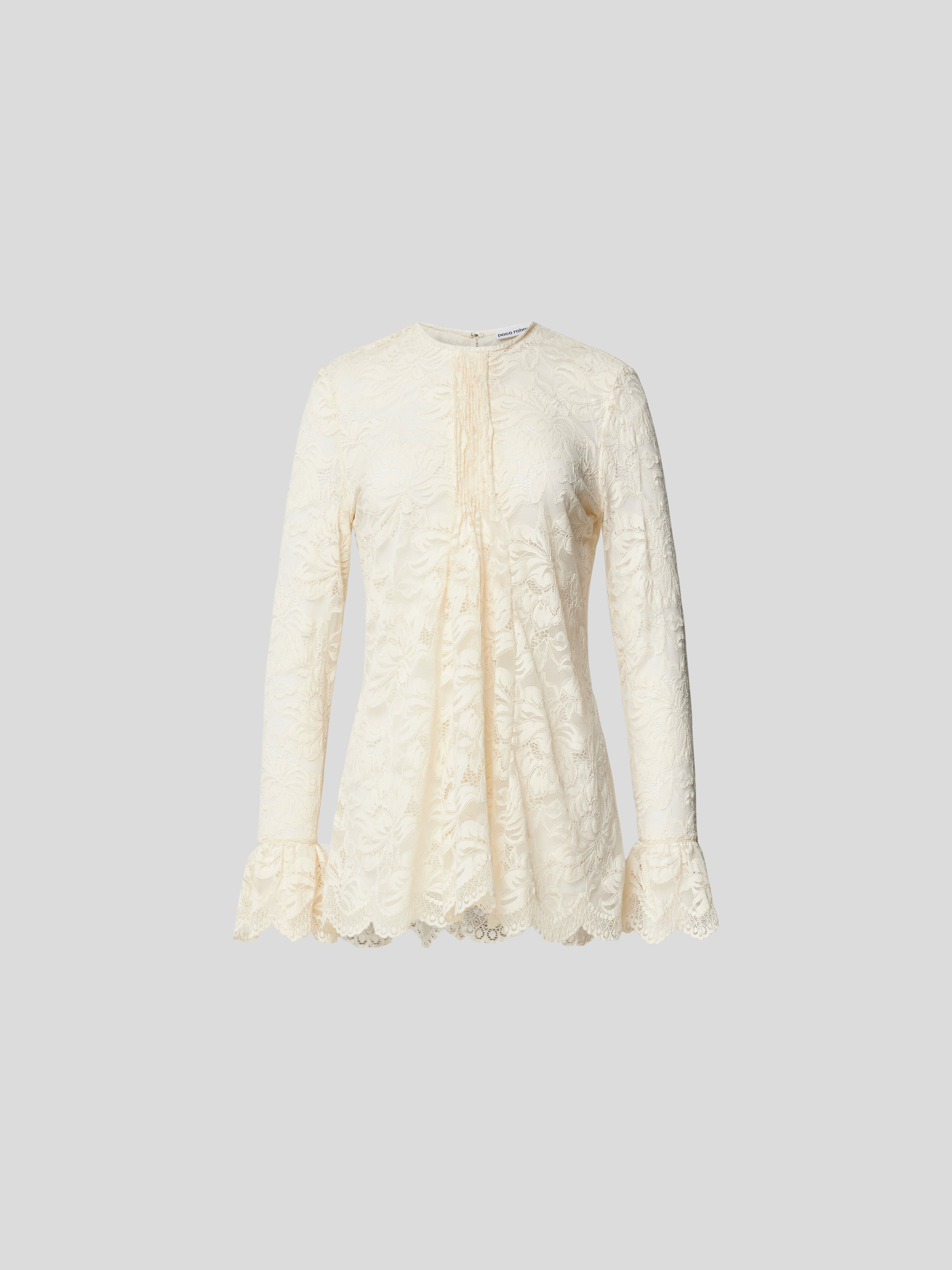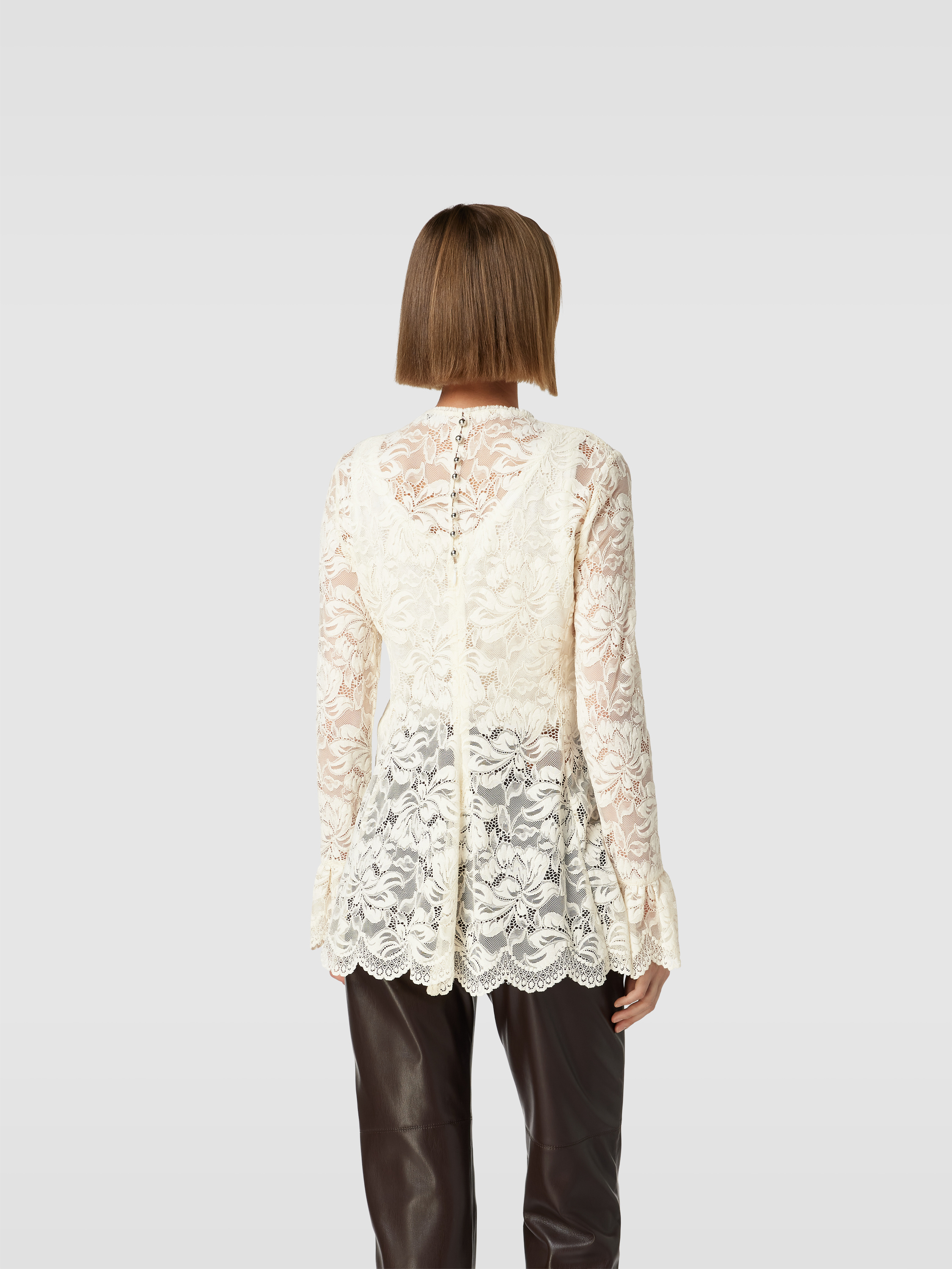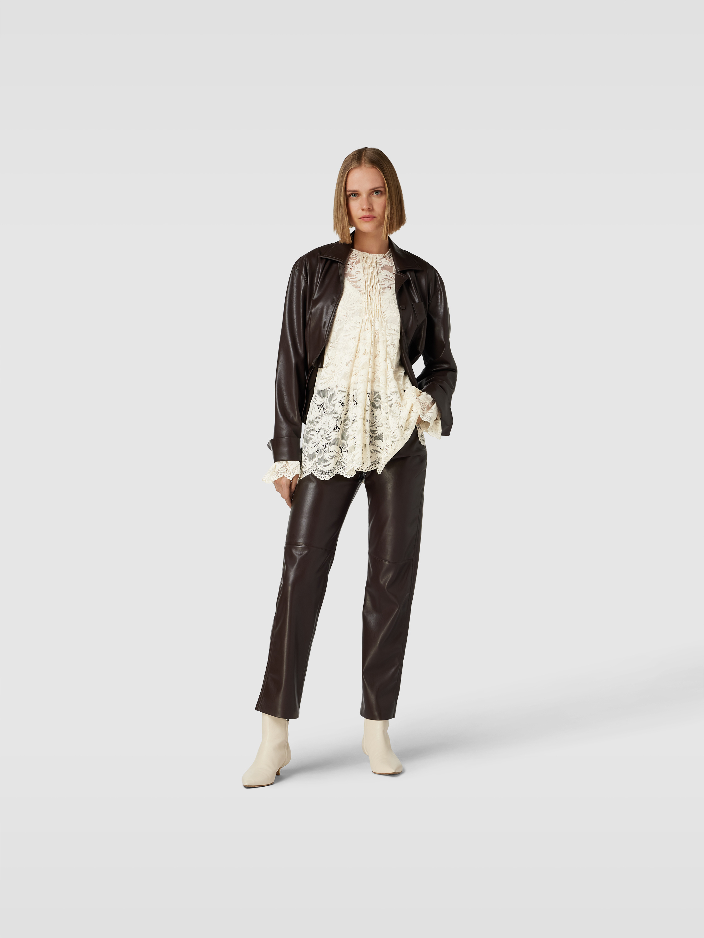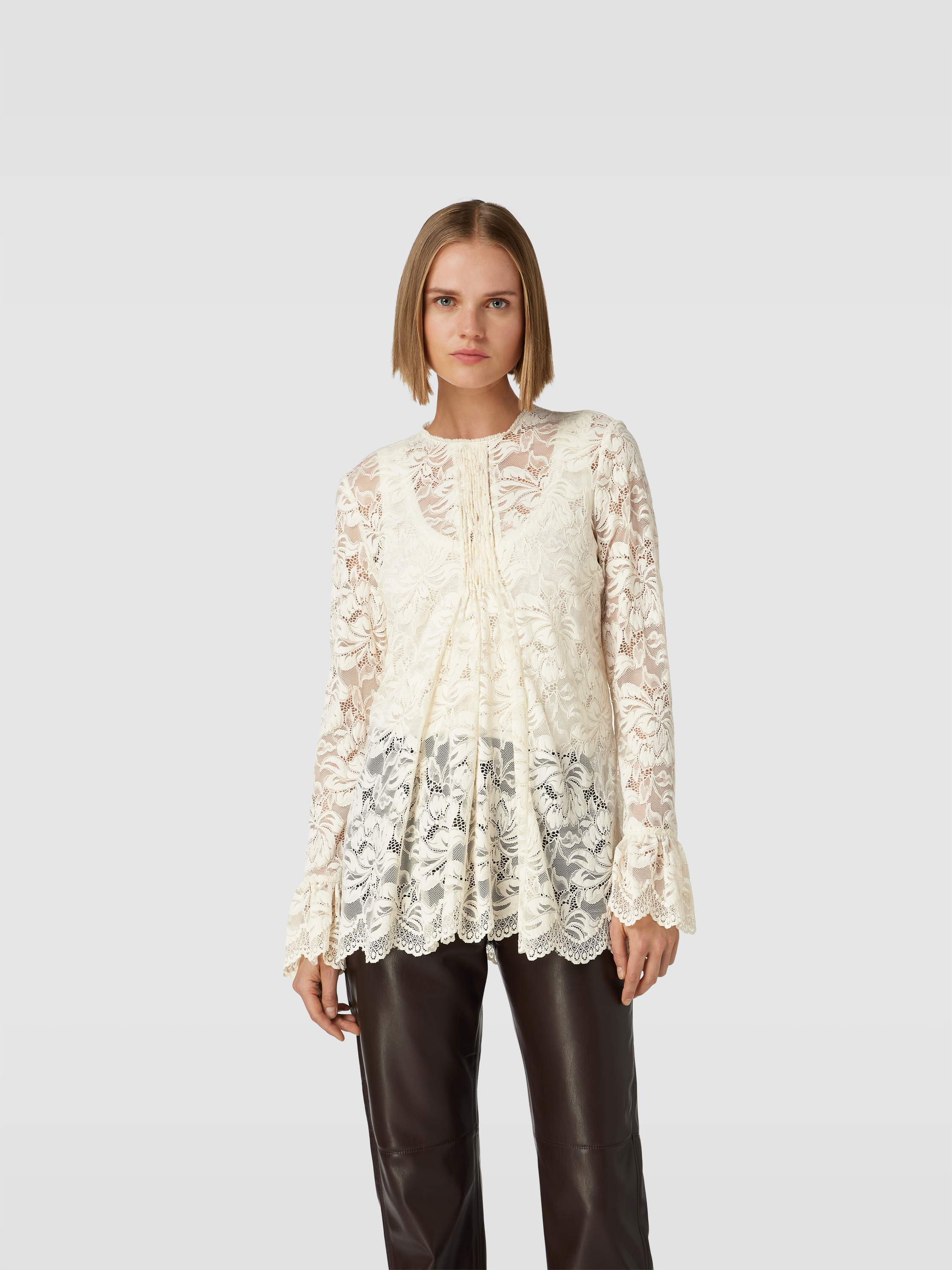 Die Damen Bluse von Paco Rabanne präsentiert sich in lockerem Schnitt und verbindet durch ihren Material-Mix mit Stretch-Anteil angenehmen Tragekomfort mit raffinierter Optik. Feine Spitzenakzente setzen dezente Highlights, während das langärmelige Design vielseitige Kombinationen ermöglicht. So entsteht ein Kleidungsstück, das Bewegungsfreiheit erlaubt.