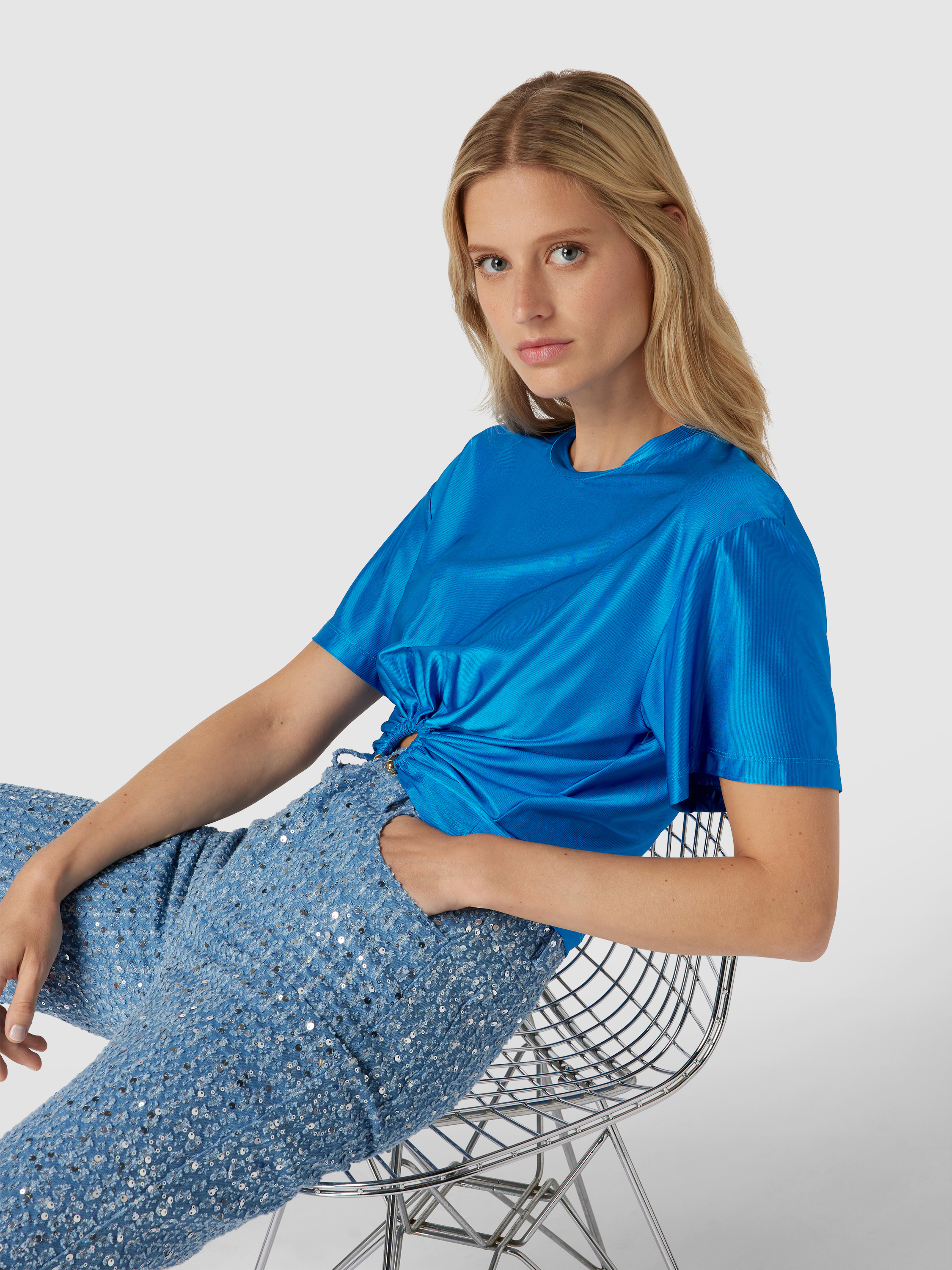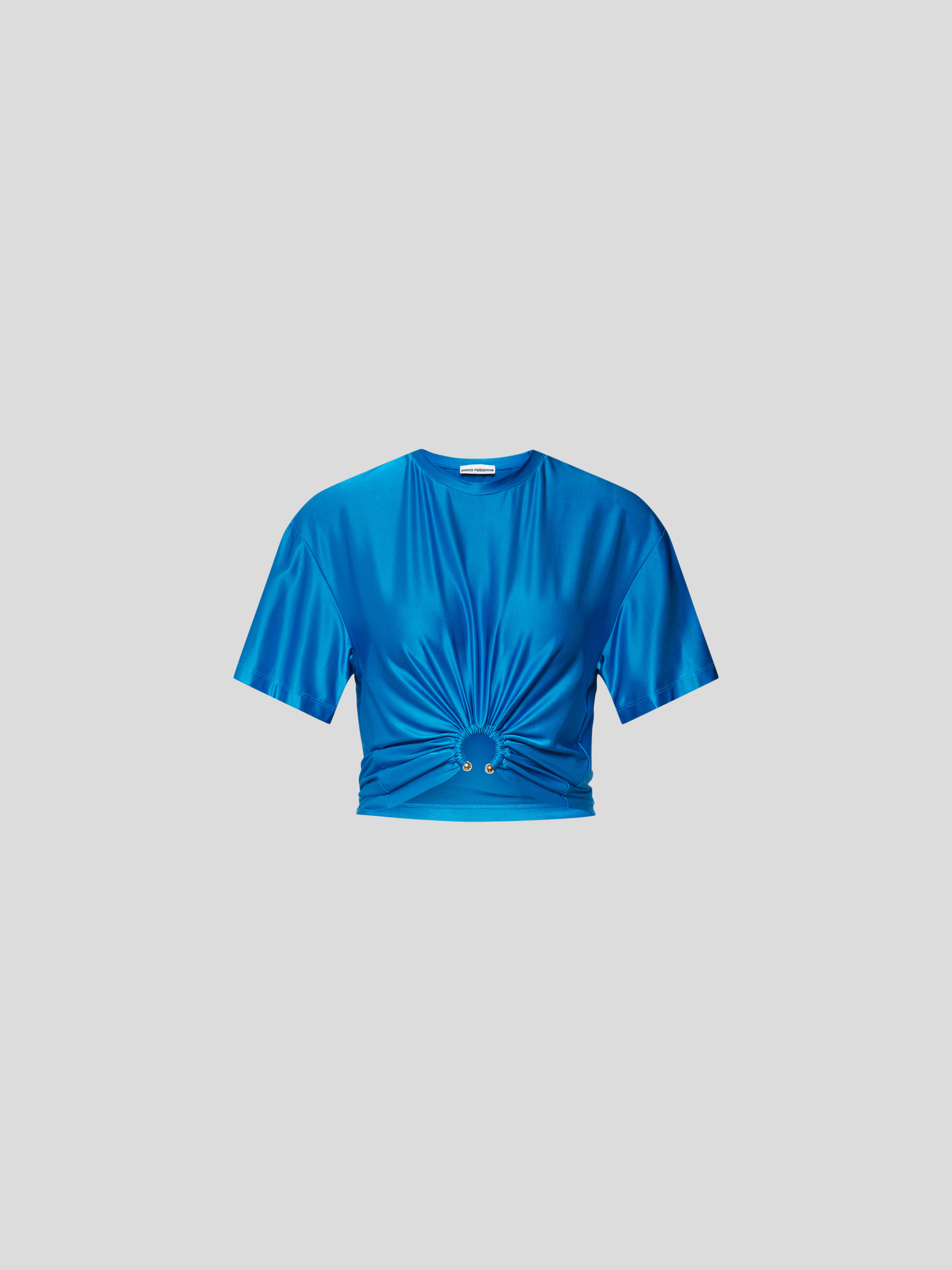 Das Damen Cropped T-Shirt von Paco Rabanne aus reiner Viskose liegt angenehm an und betont dezent die Silhouette. Durch den leichten Glanz und den raffinierten Zierbesatz wirkt das Design modern und vielseitig. Es eignet sich besonders für Tage, an denen Bewegungsfreiheit gefragt ist.