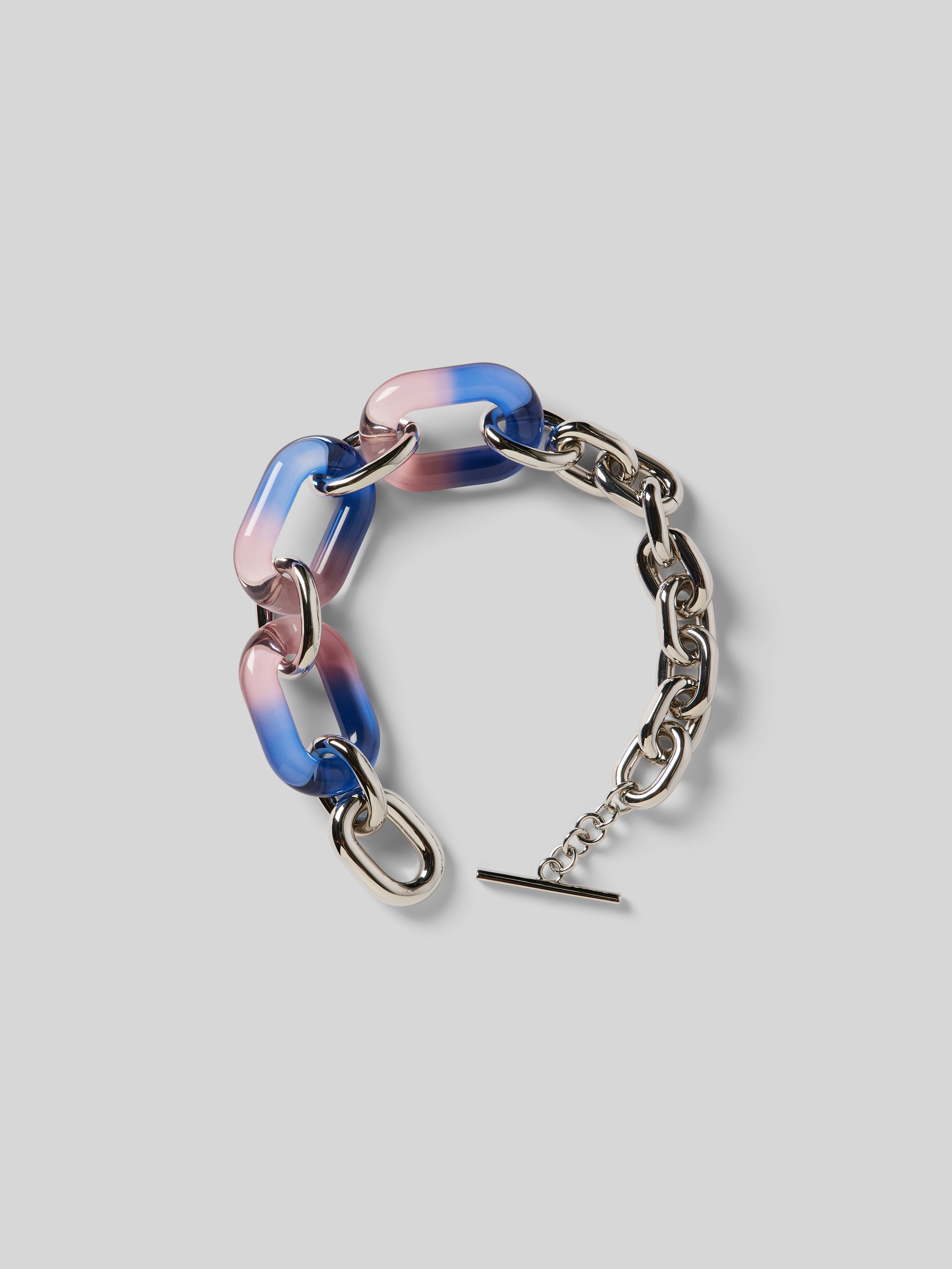 Die Halskette von Rabanne zeigt sich in markanter Gliederketten-Optik und erhält durch das dezente Label-Detail eine individuelle Note. Das metallic schimmernde Material sorgt für einen modernen Akzent, während die harmonische Formgebung einen angenehmen Sitz ermöglicht. So setzt man unkompliziert ein Statement, das vielseitig kombinierbar bleibt.