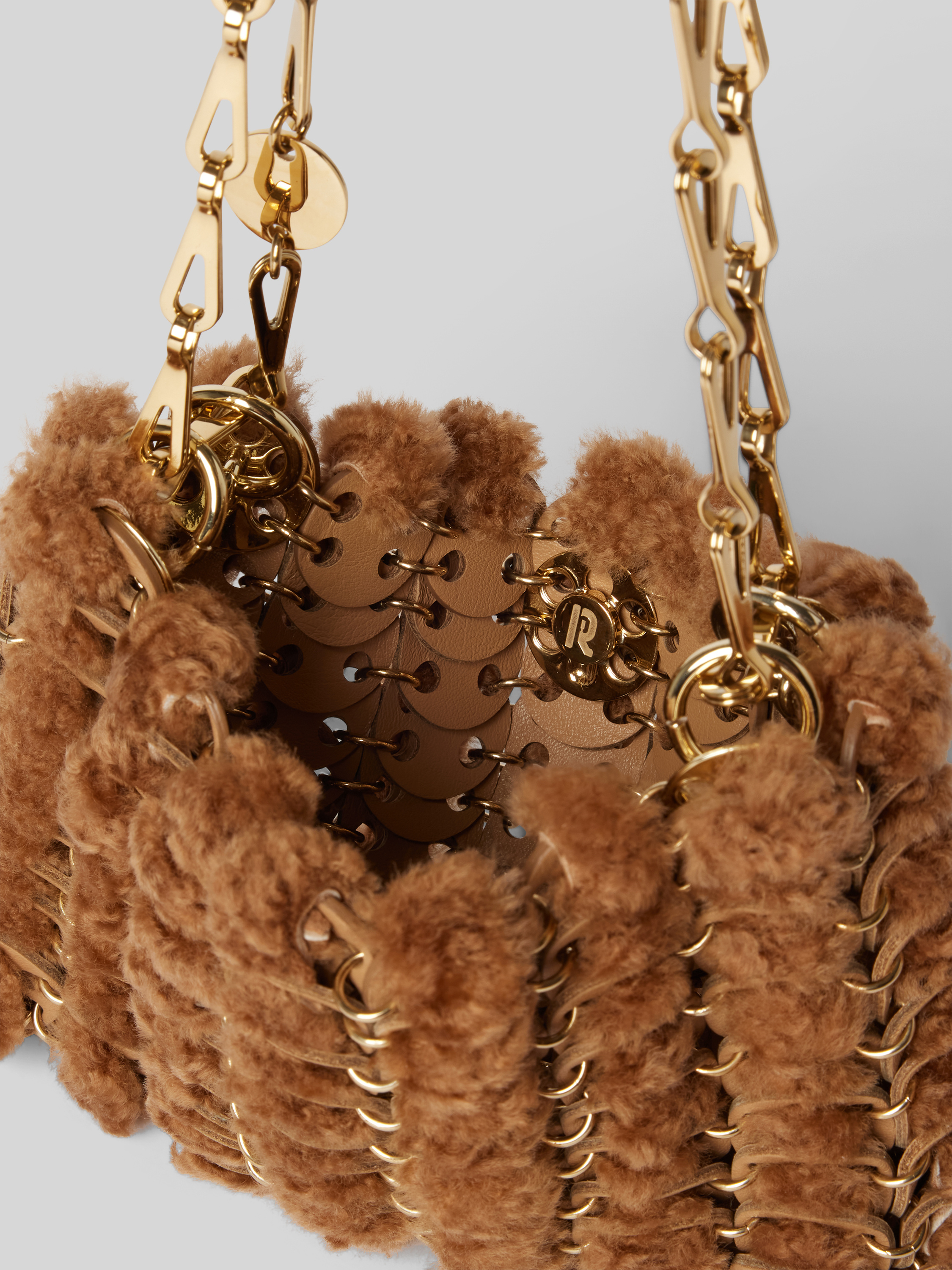 Die Damen Handtasche von Paco Rabanne vereint Kalbsleder mit kühlem Edelstahl und fällt durch einen markanten Kunstfell-Besatz auf. Durchdacht gestaltet, eignet sich die Tasche als Begleiter für verschiedenste Gelegenheiten, während das Label-Detail einen dezenten Akzent im Alltag setzt.