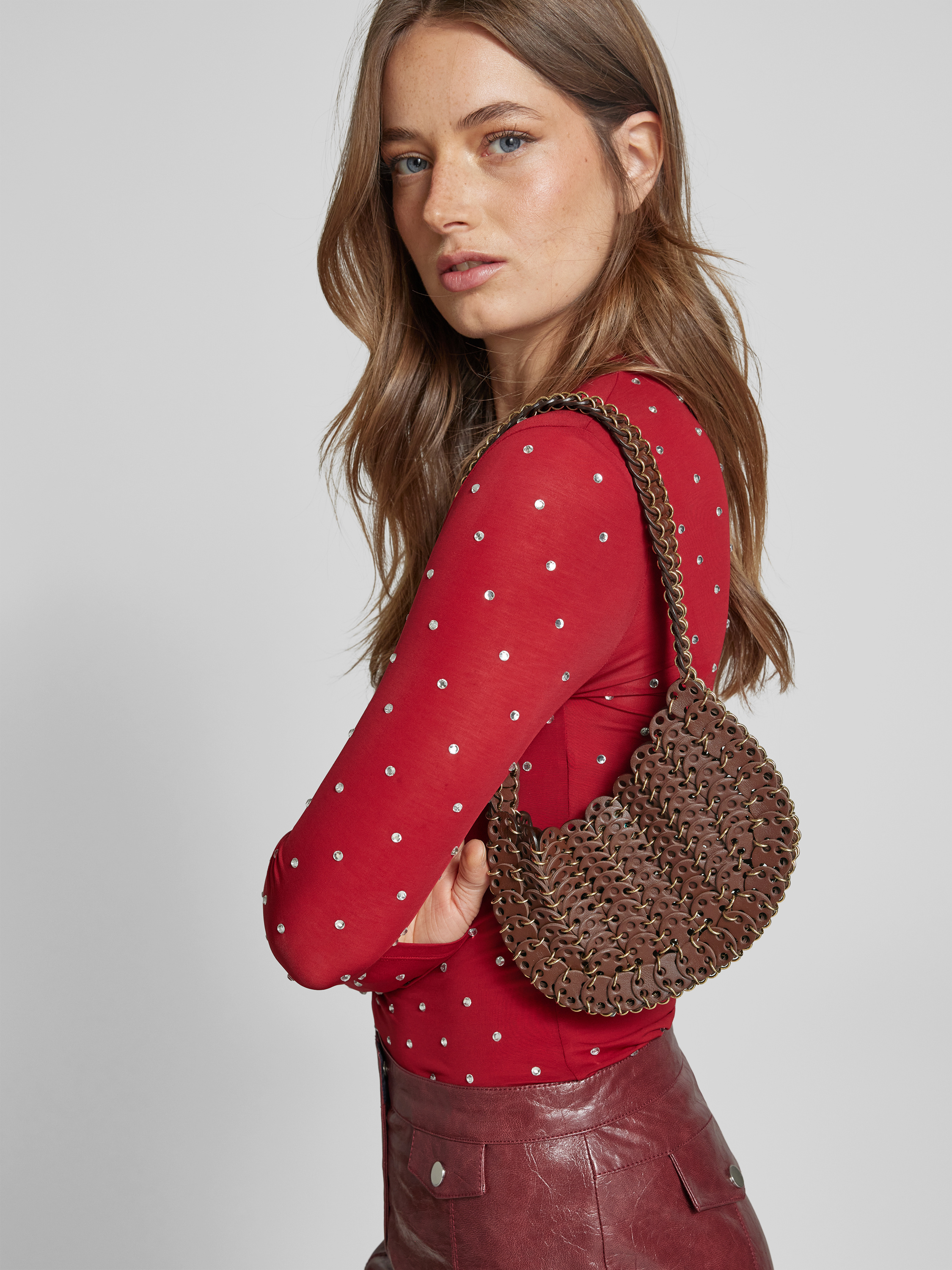 RabanneHandtasche mit Schulterriemen in mittelbraun