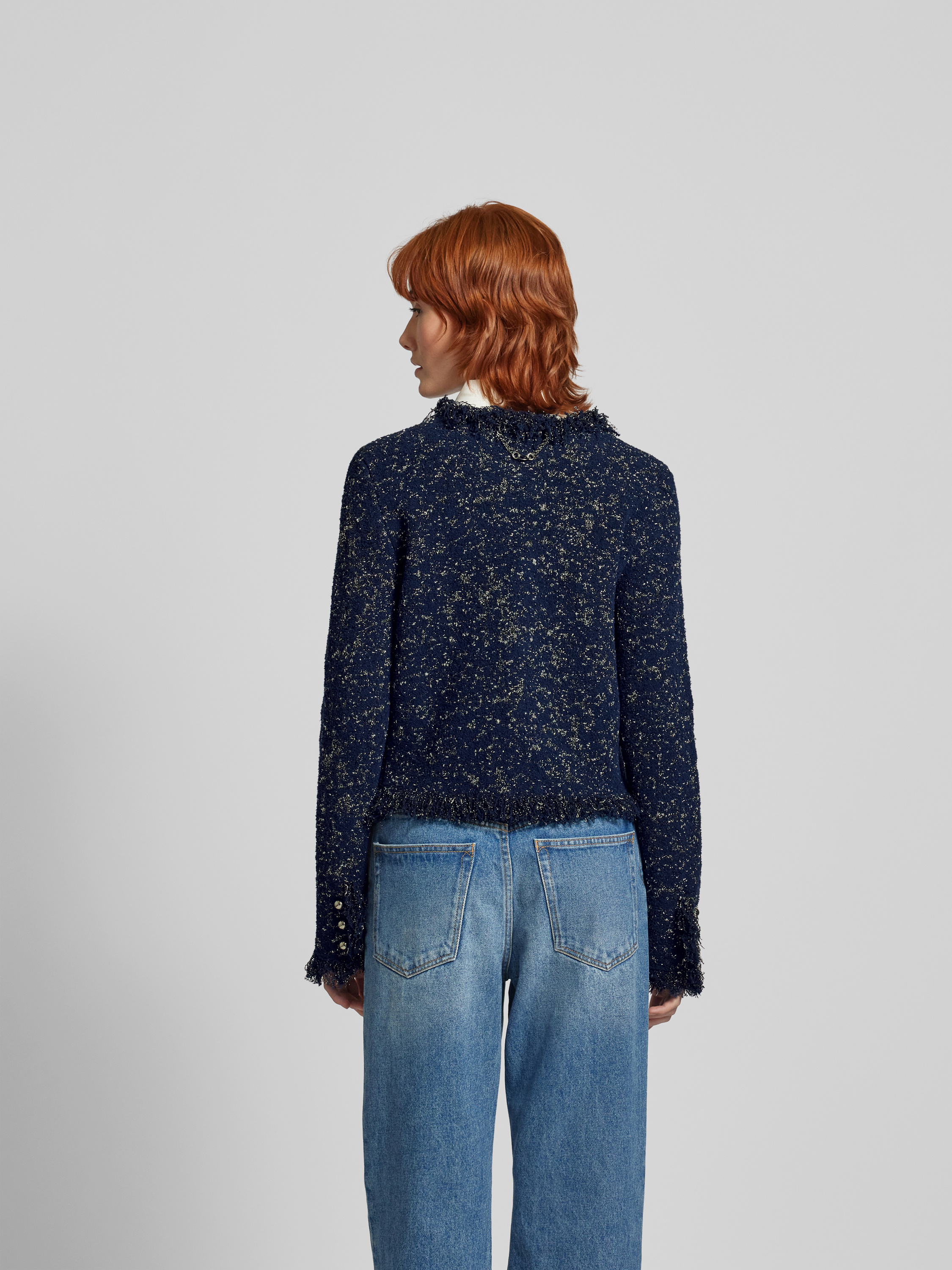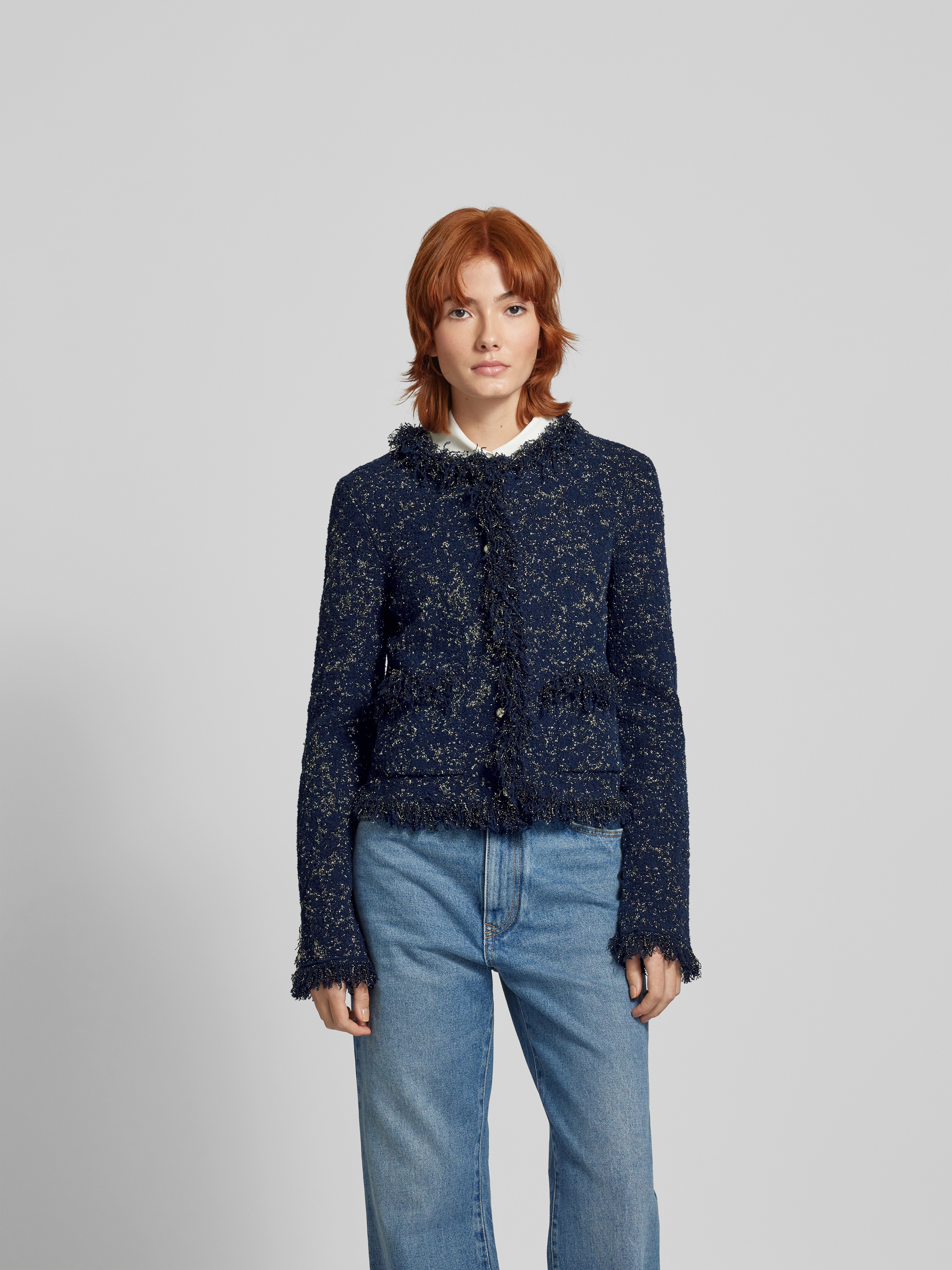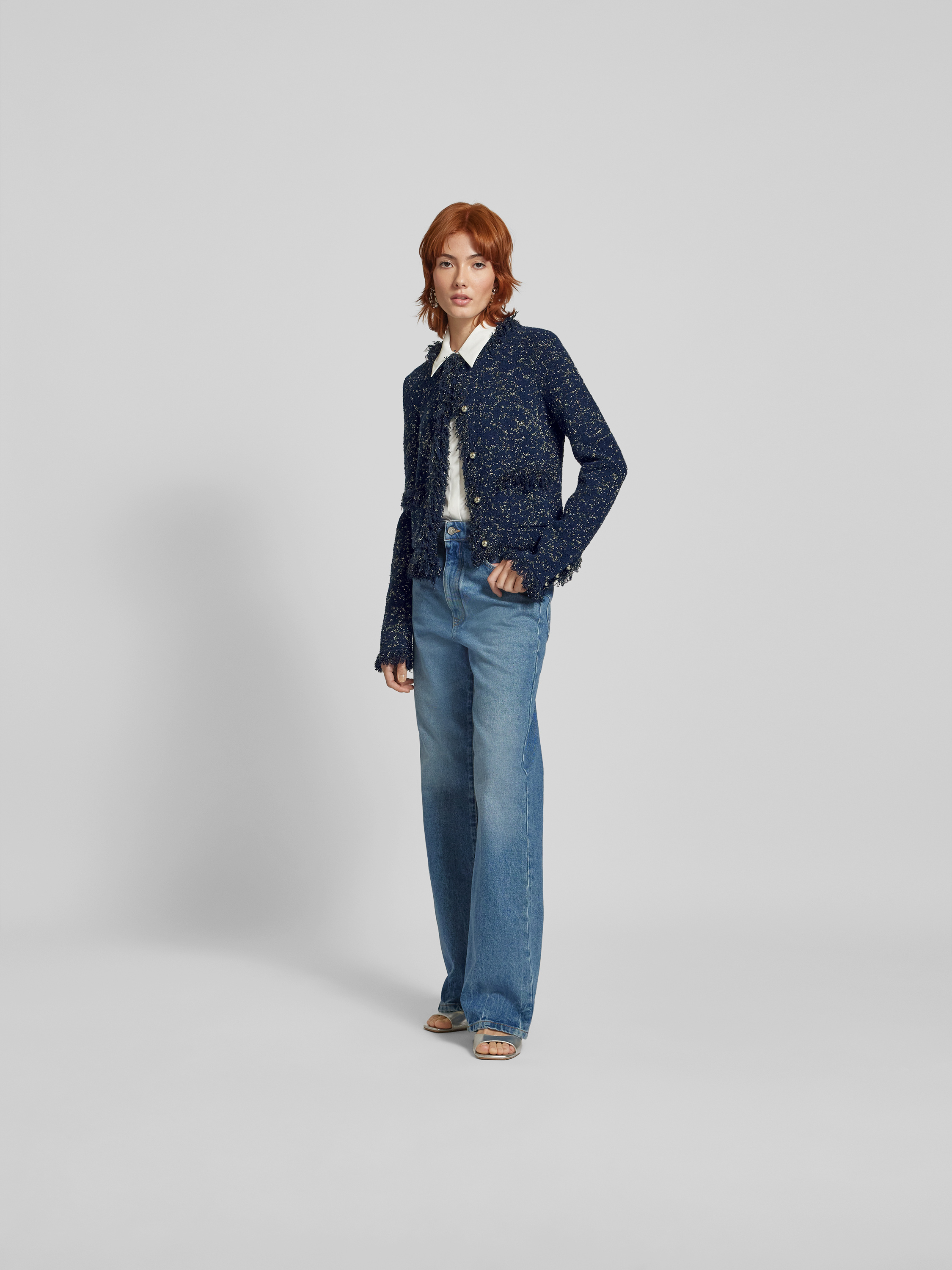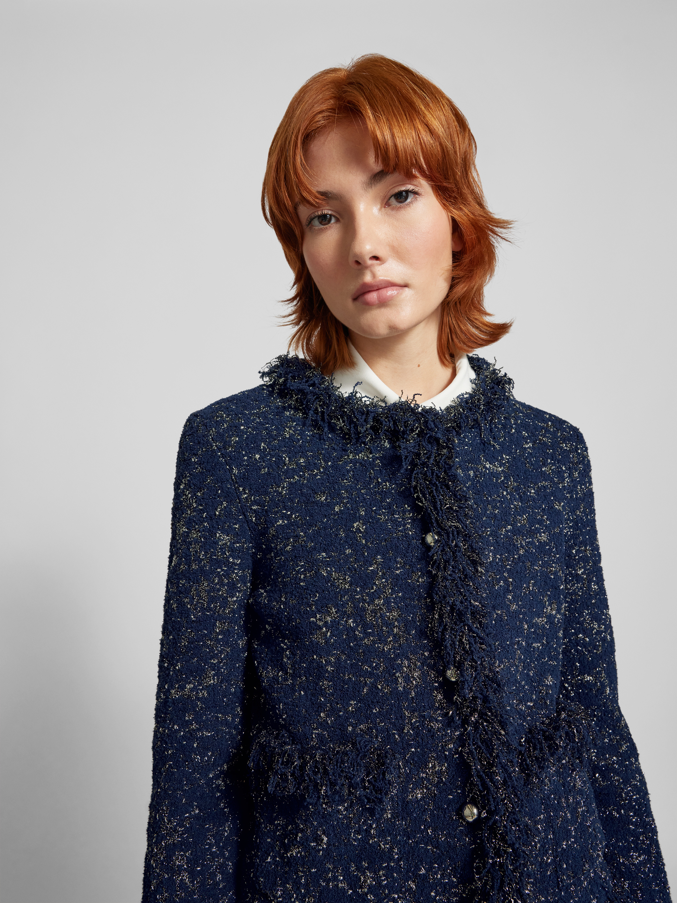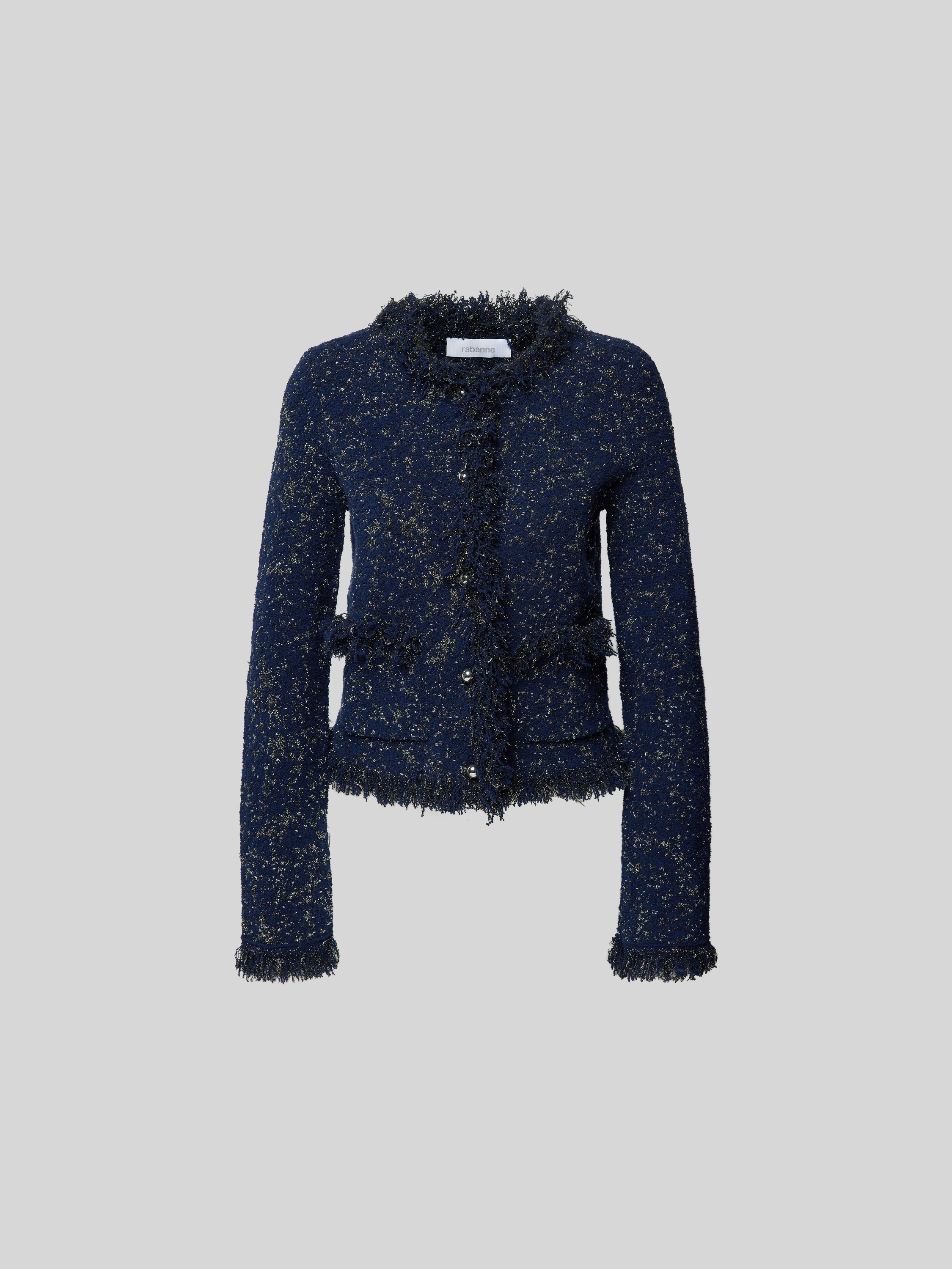 Die Damen Jacke mit Fransen von Paco Rabanne zeigt sich im Regular Fit und fällt durch ihr Allover-Muster auf. Durch den Baumwoll-Viskose-Mix mit Stretch-Anteil trägt sie sich angenehm und bleibt auch bei Bewegung formstabil. Fransen verleihen dem Modell eine besondere Dynamik.