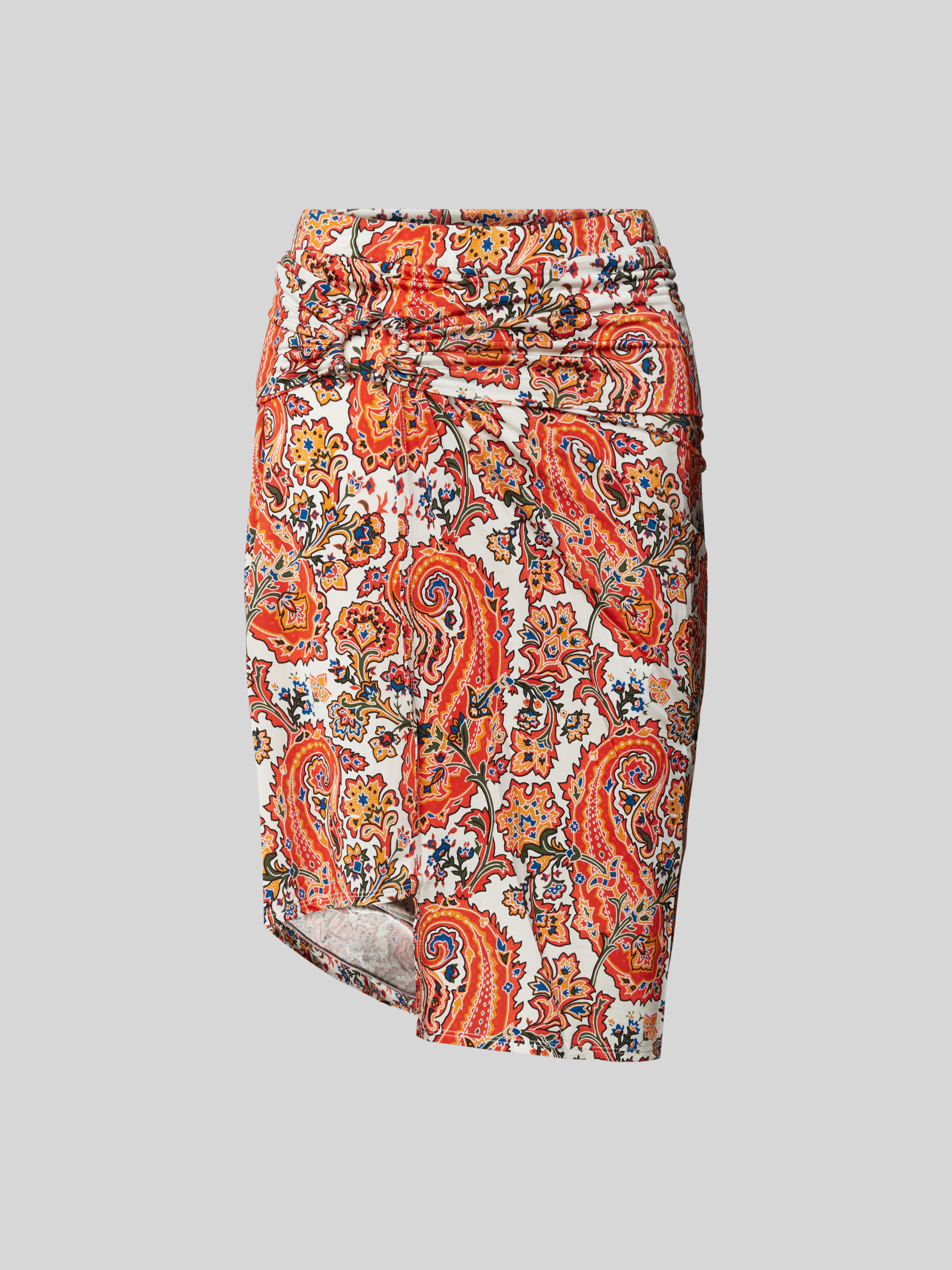 RabanneKnielanger Rock mit Raffungen in orange