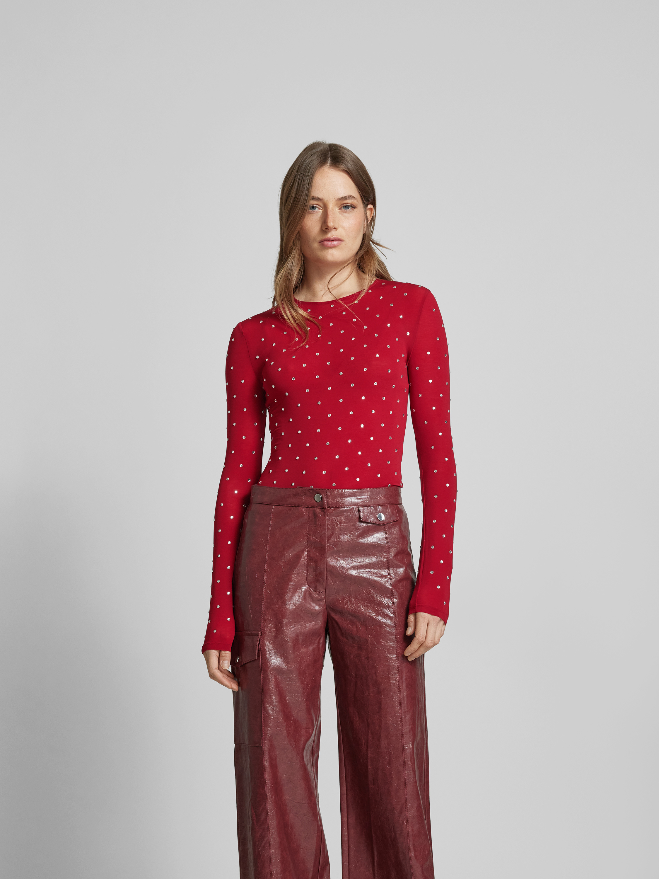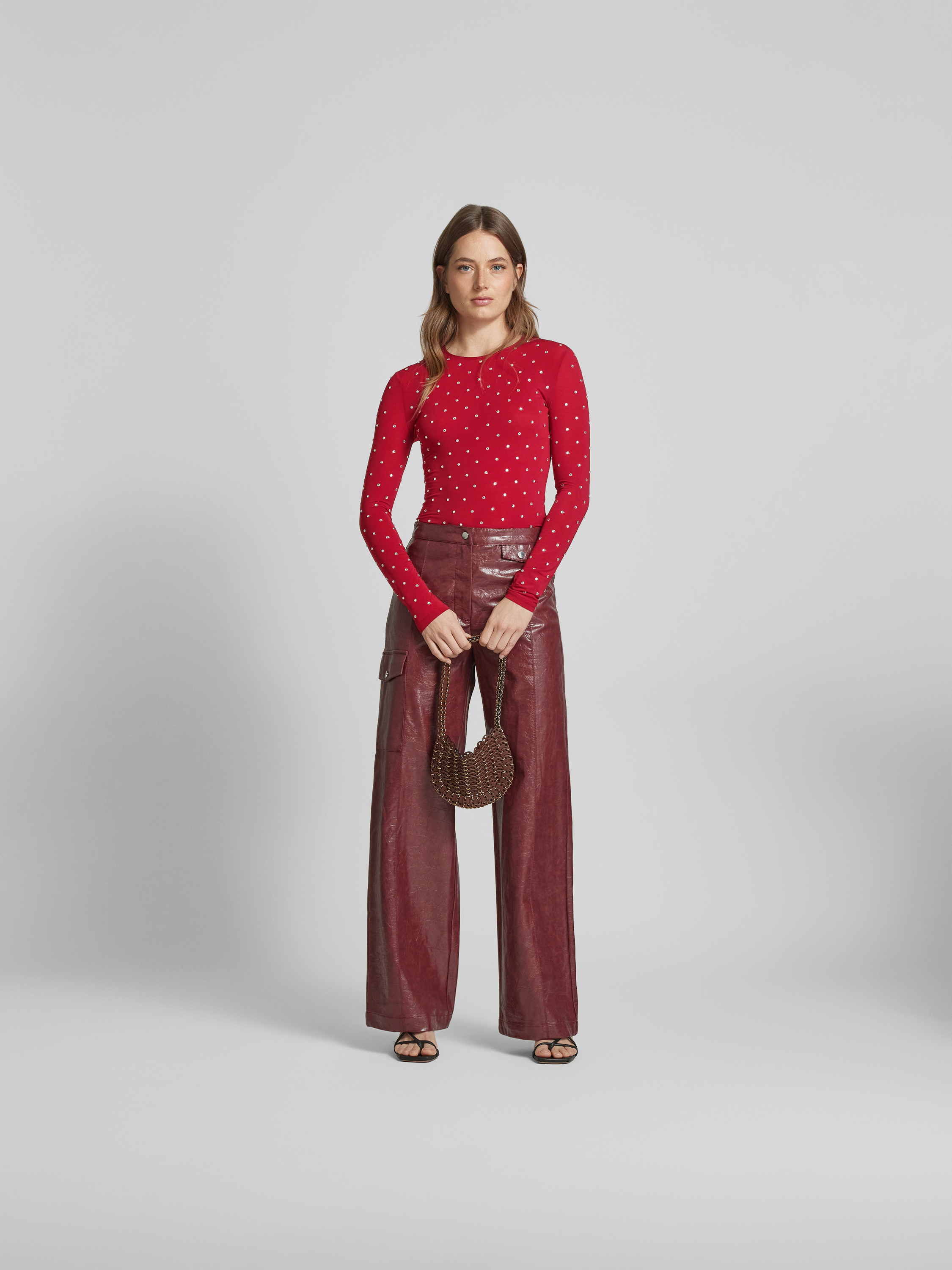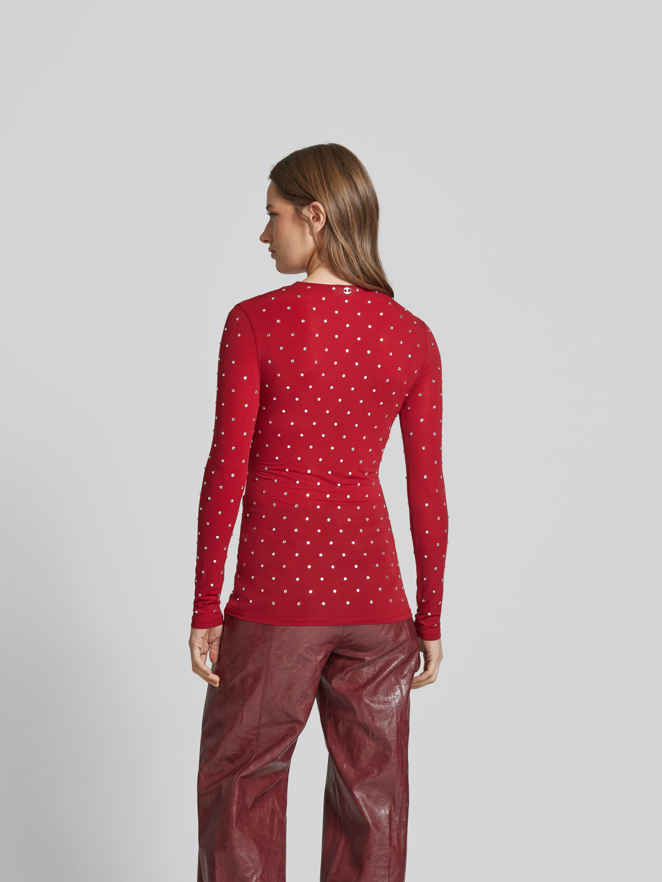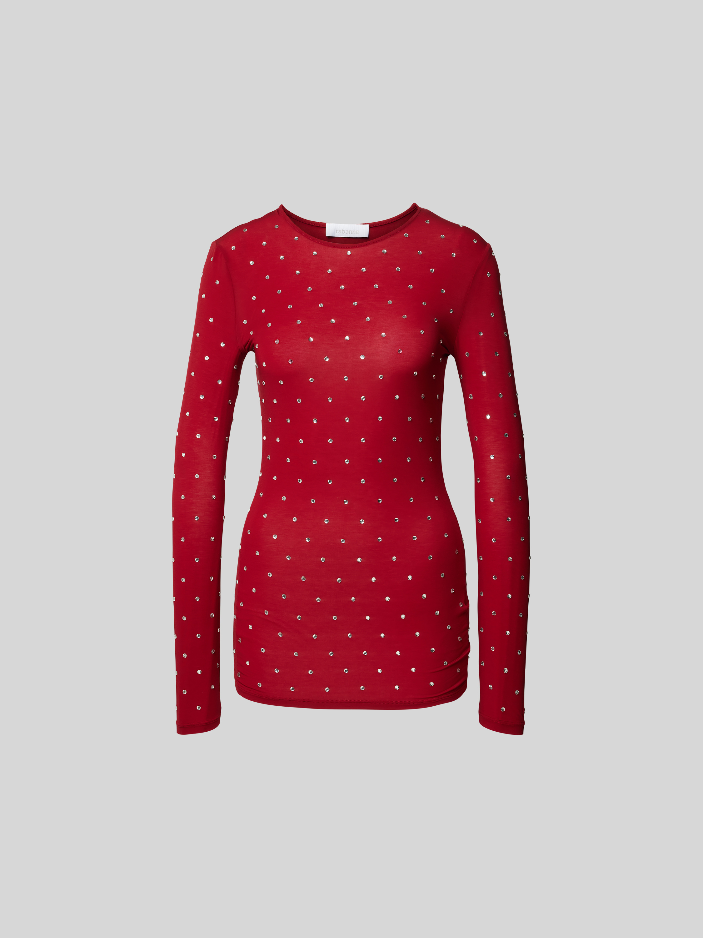 Das Damen Longsleeve von Paco Rabanne schmiegt sich dank des Cupro-Elasthan-Mixes angenehm an die Haut. Der Regular Fit sorgt für eine bequeme Passform, während der Ziersteinbesatz dezente Akzente setzt. Durch den gerippten Rundhalsausschnitt wirkt der Look modern und vielseitig.