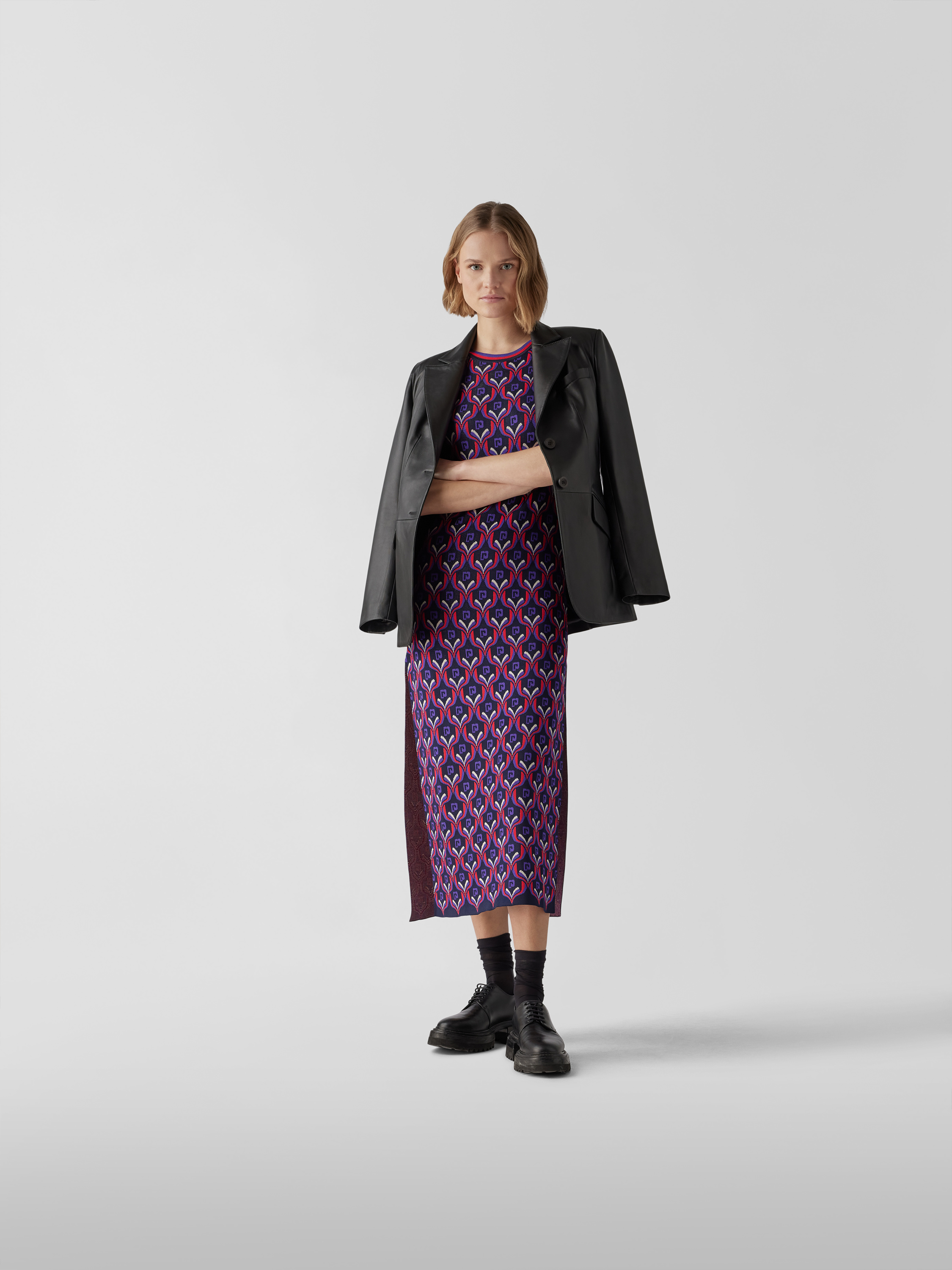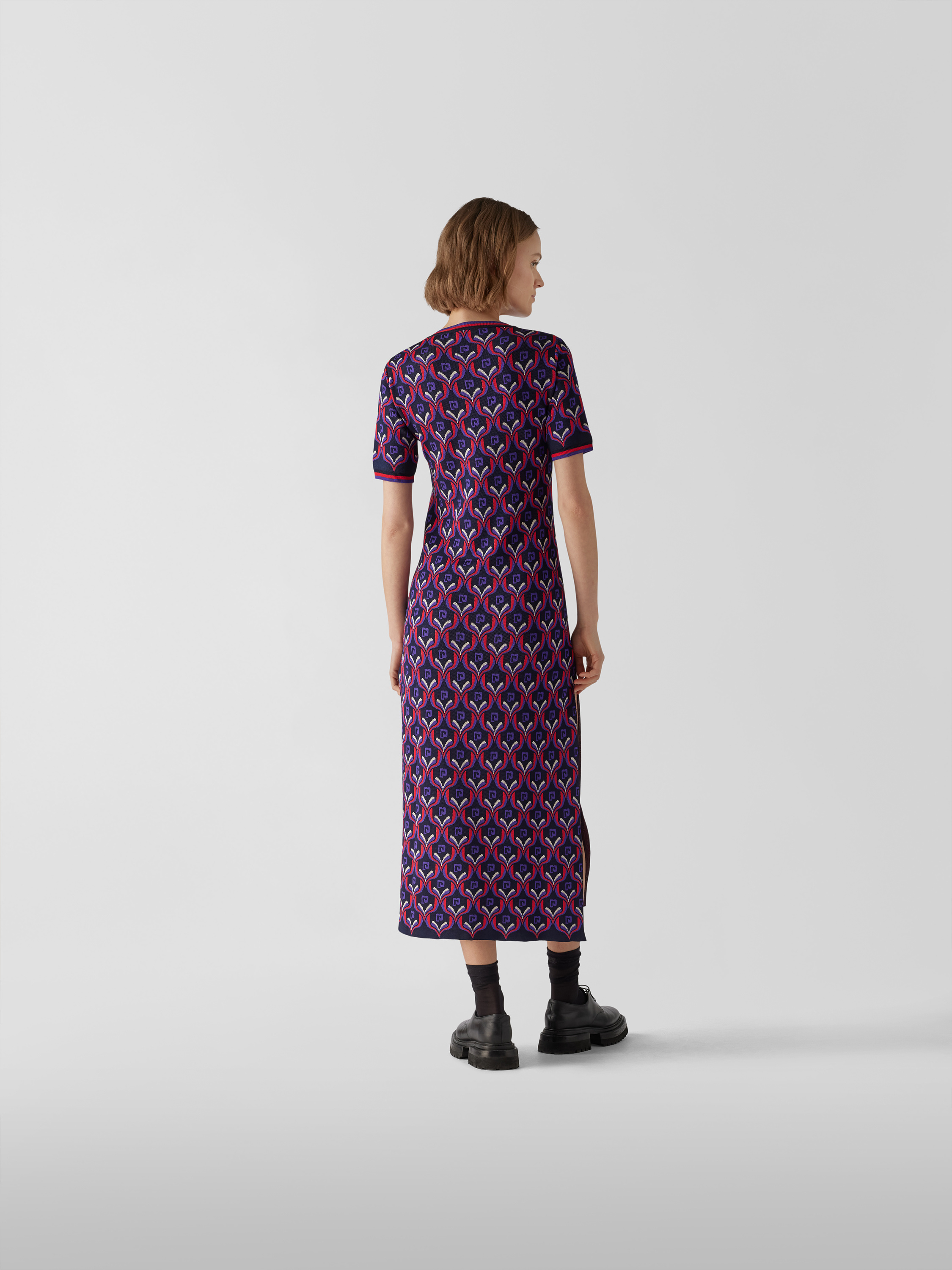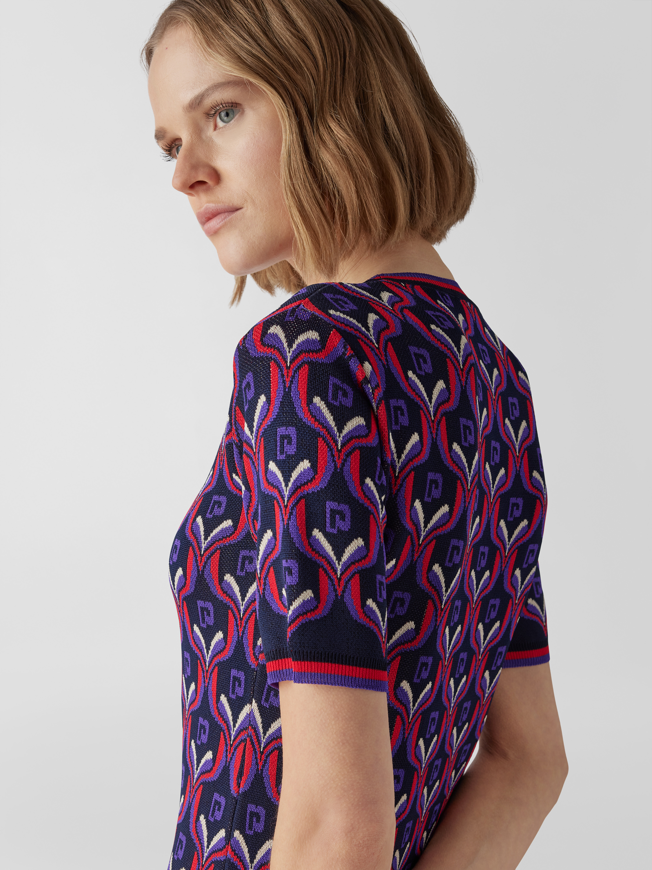 Das Maxikleid mit Allover-Muster von Paco Rabanne zeigt sich mit einer taillierten Silhouette und kurzen Ärmeln, wodurch es angenehm luftig wirkt. Die reine Viskose sorgt für ein leichtes Tragegefühl, während das lebendige Muster dem Outfit eine besondere Note verleiht. Durch den Rundhalsausschnitt erhält das Kleid einen zeitlosen Rahmen.