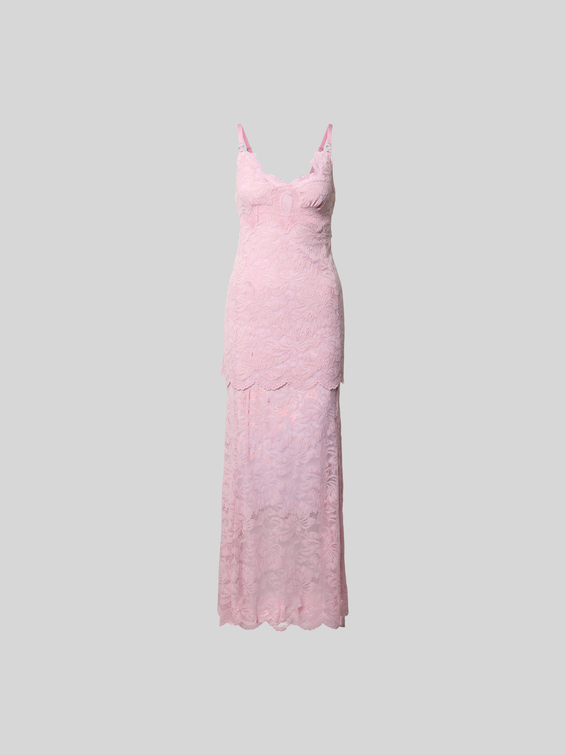 RabanneMaxikleid mit Nahtreißverschluss in rosa