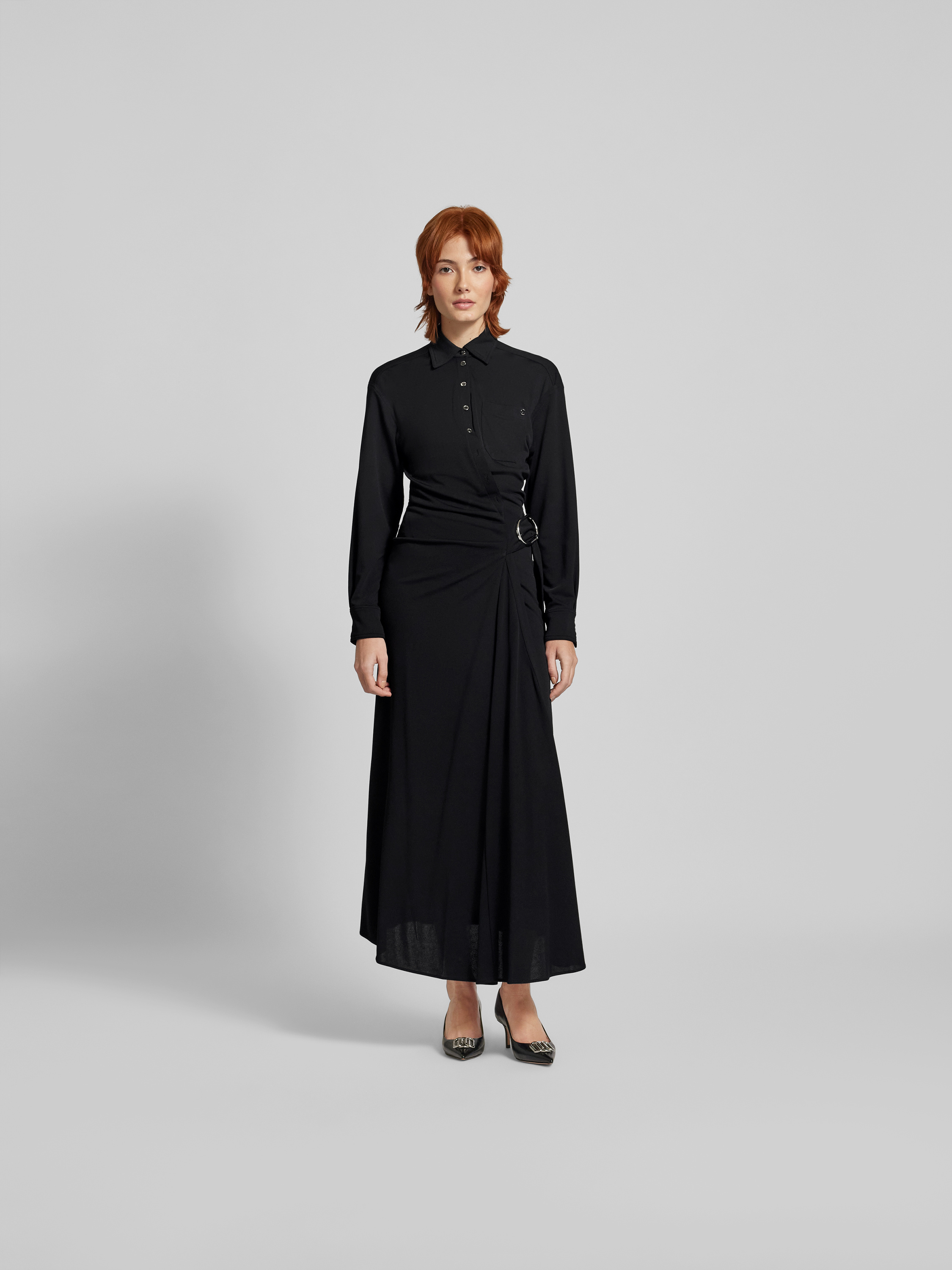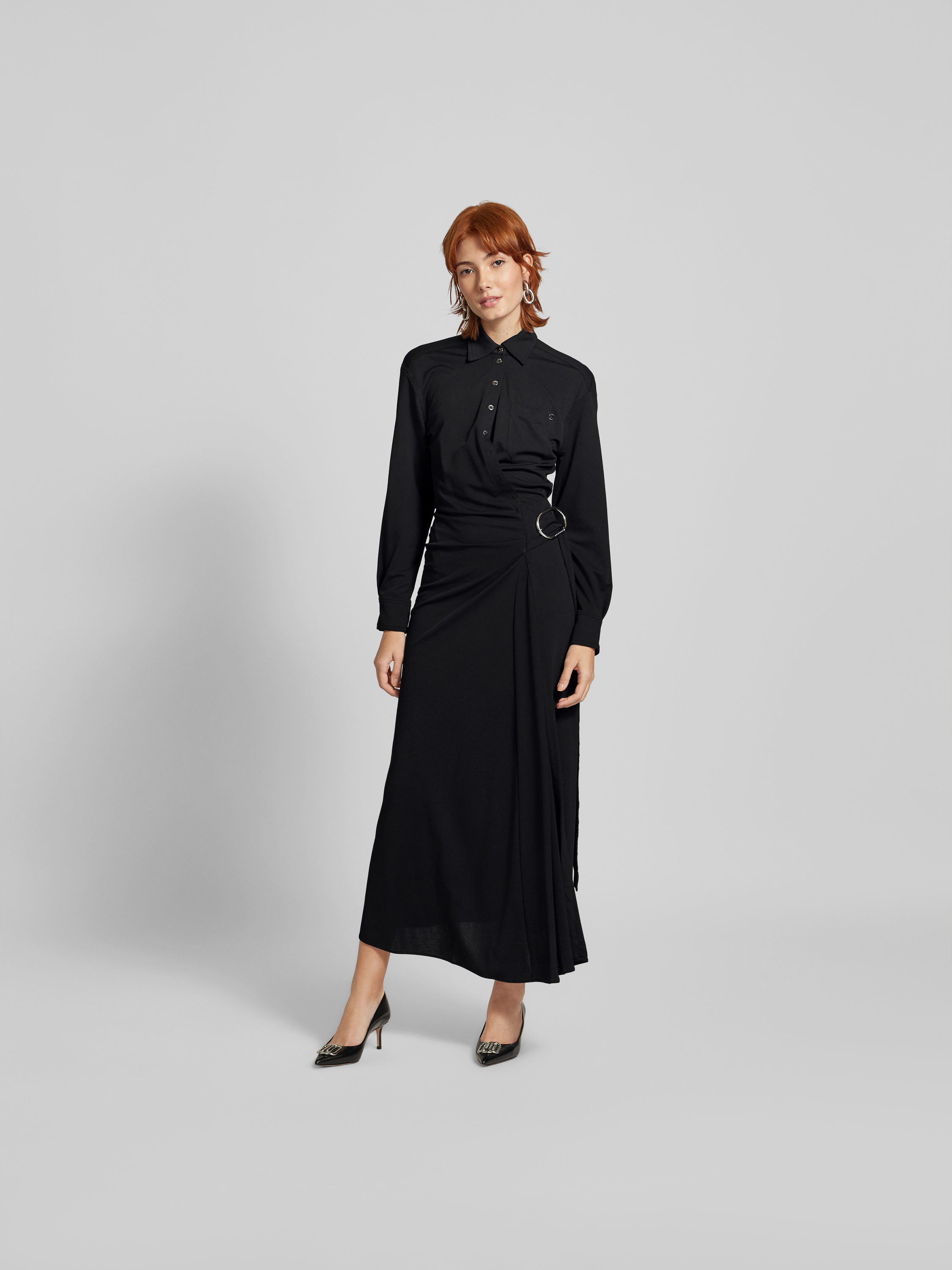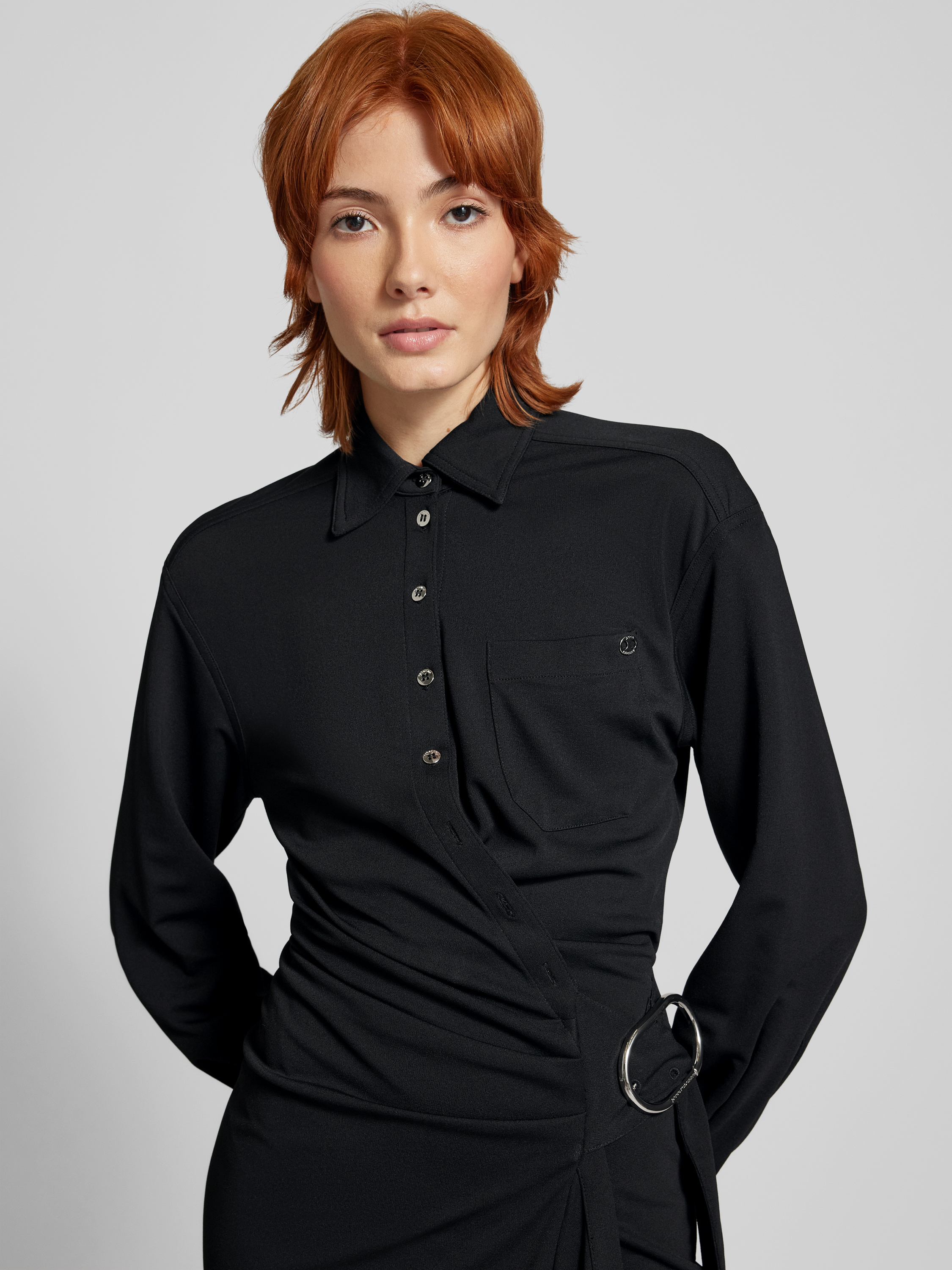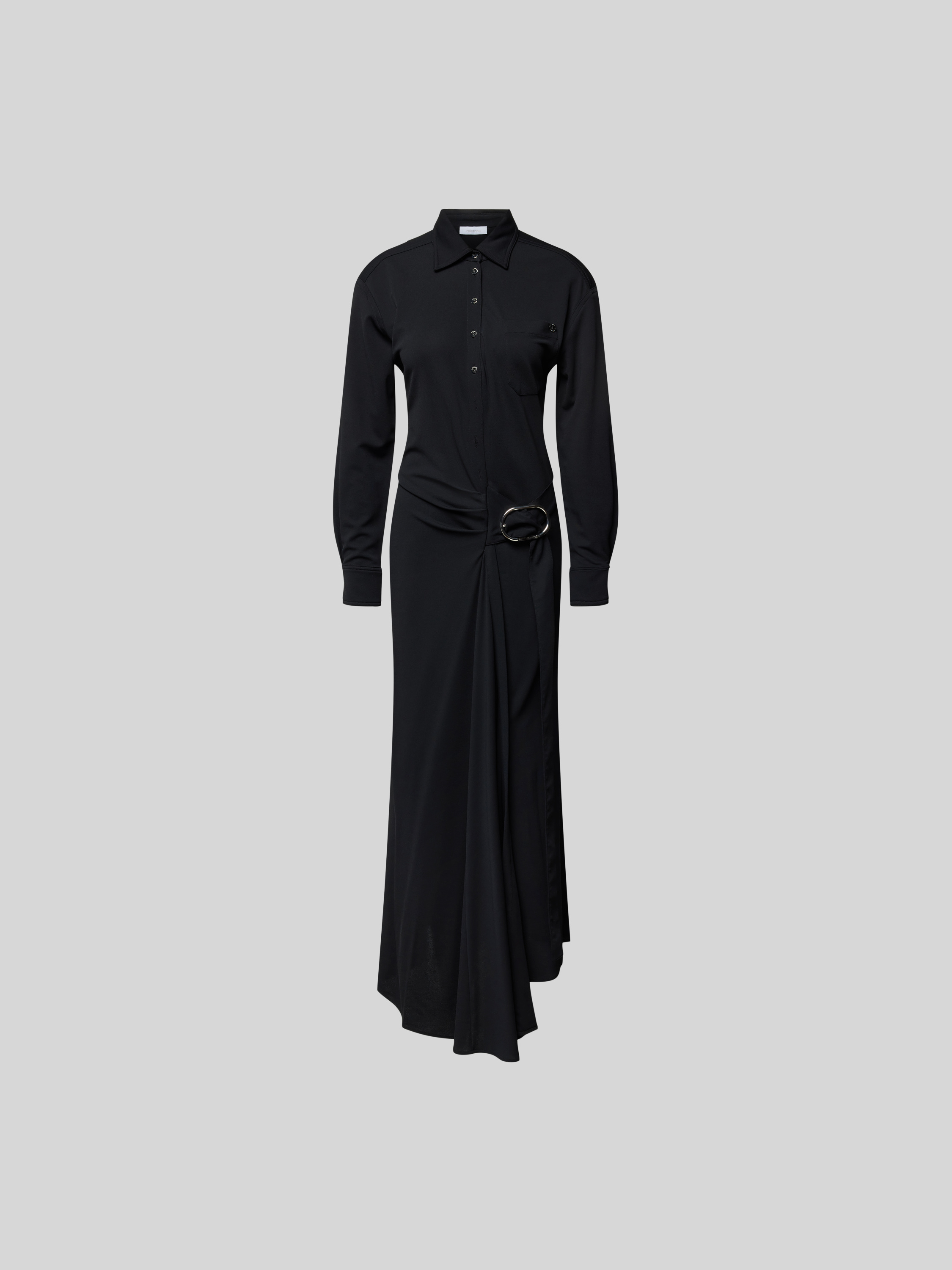 Das Damen Maxikleid von Paco Rabanne kombiniert einen taillierten Schnitt mit einem Umlegekragen und sorgt durch den Viskose-Mix mit Stretch-Anteil für angenehmen Tragekomfort. Raffungen setzen dezente Akzente, während die fließende Silhouette Bewegungsfreiheit ermöglicht. Durchdachte Details lassen das Kleid vielseitig einsetzbar erscheinen.