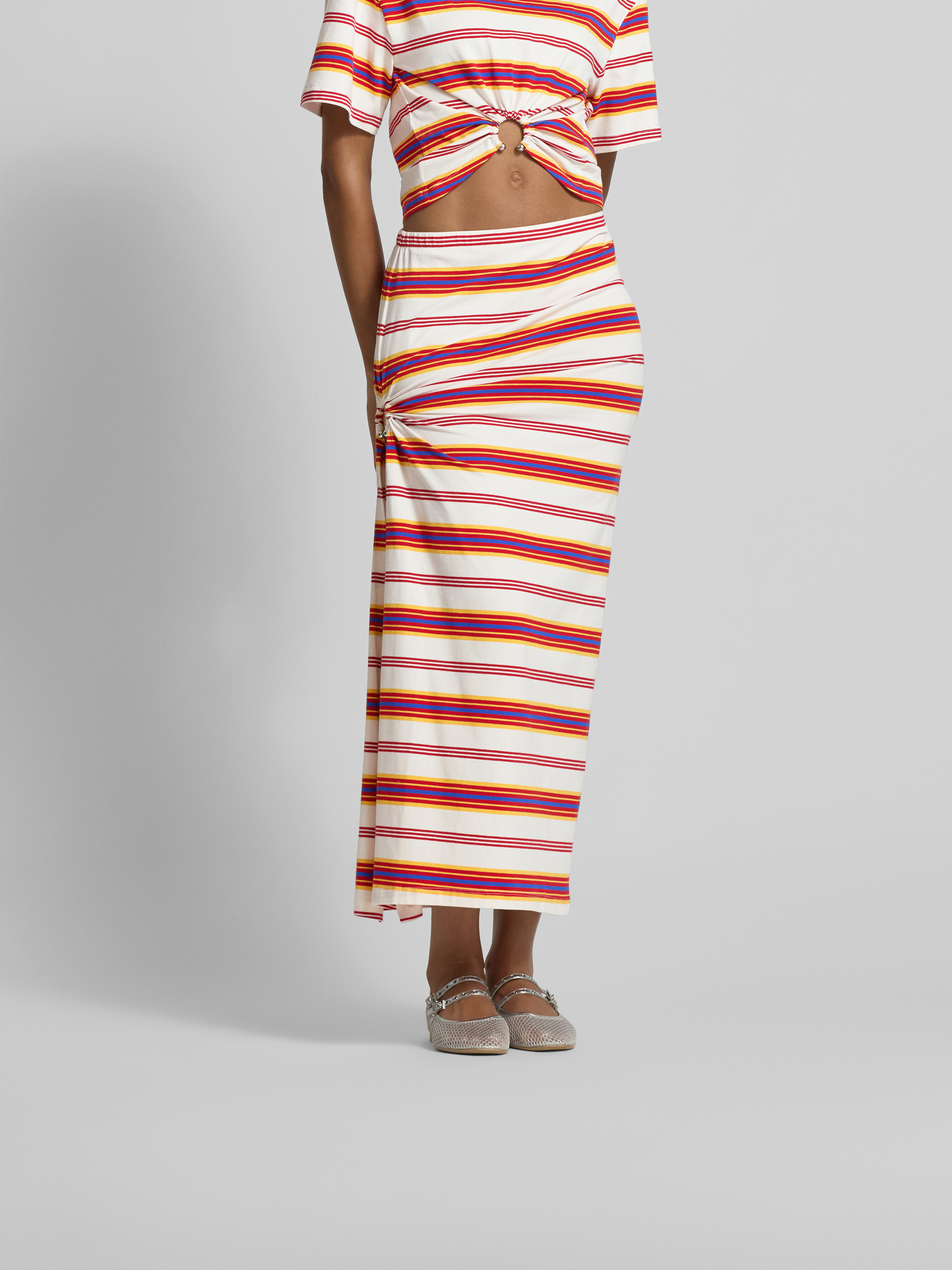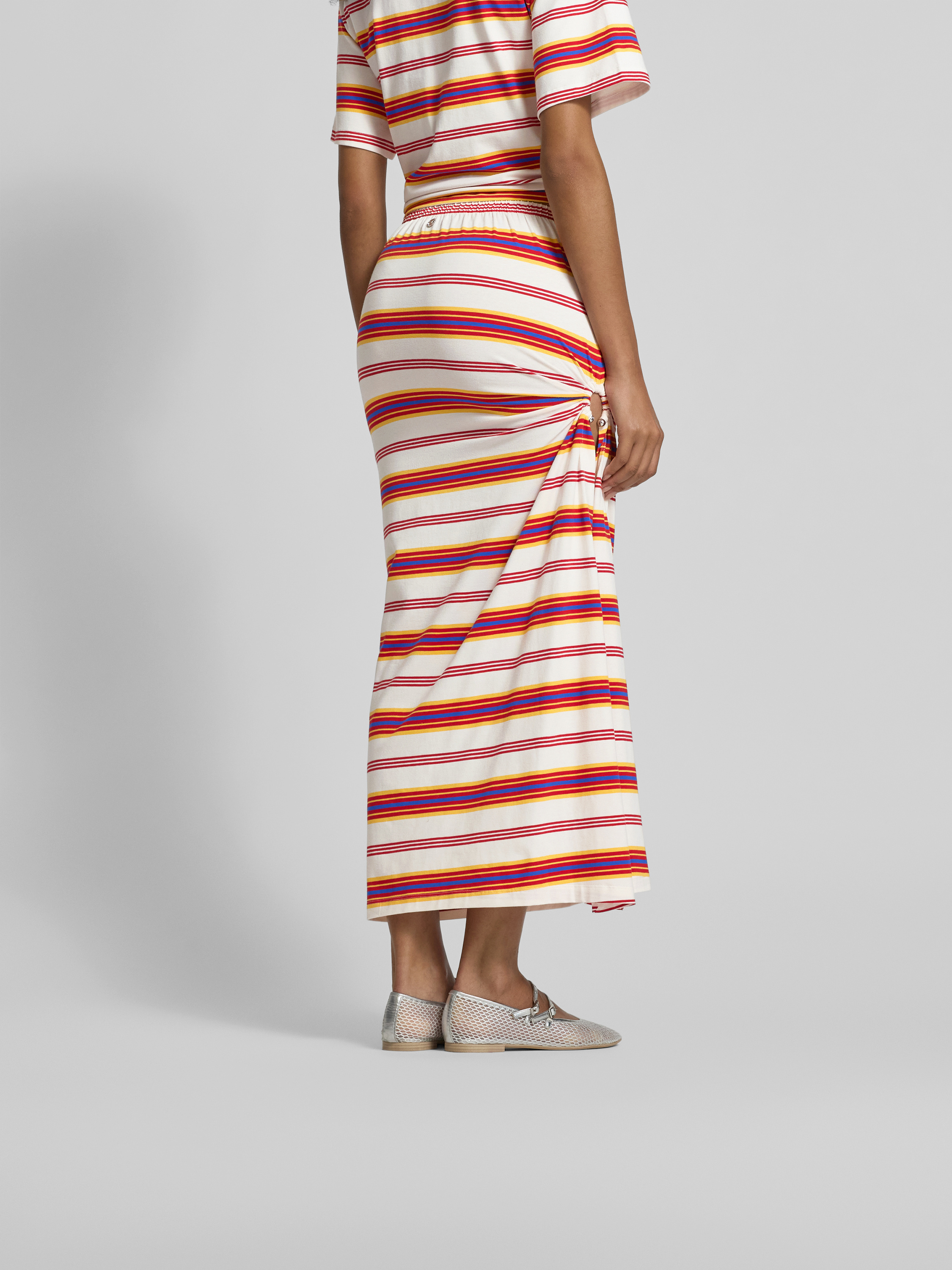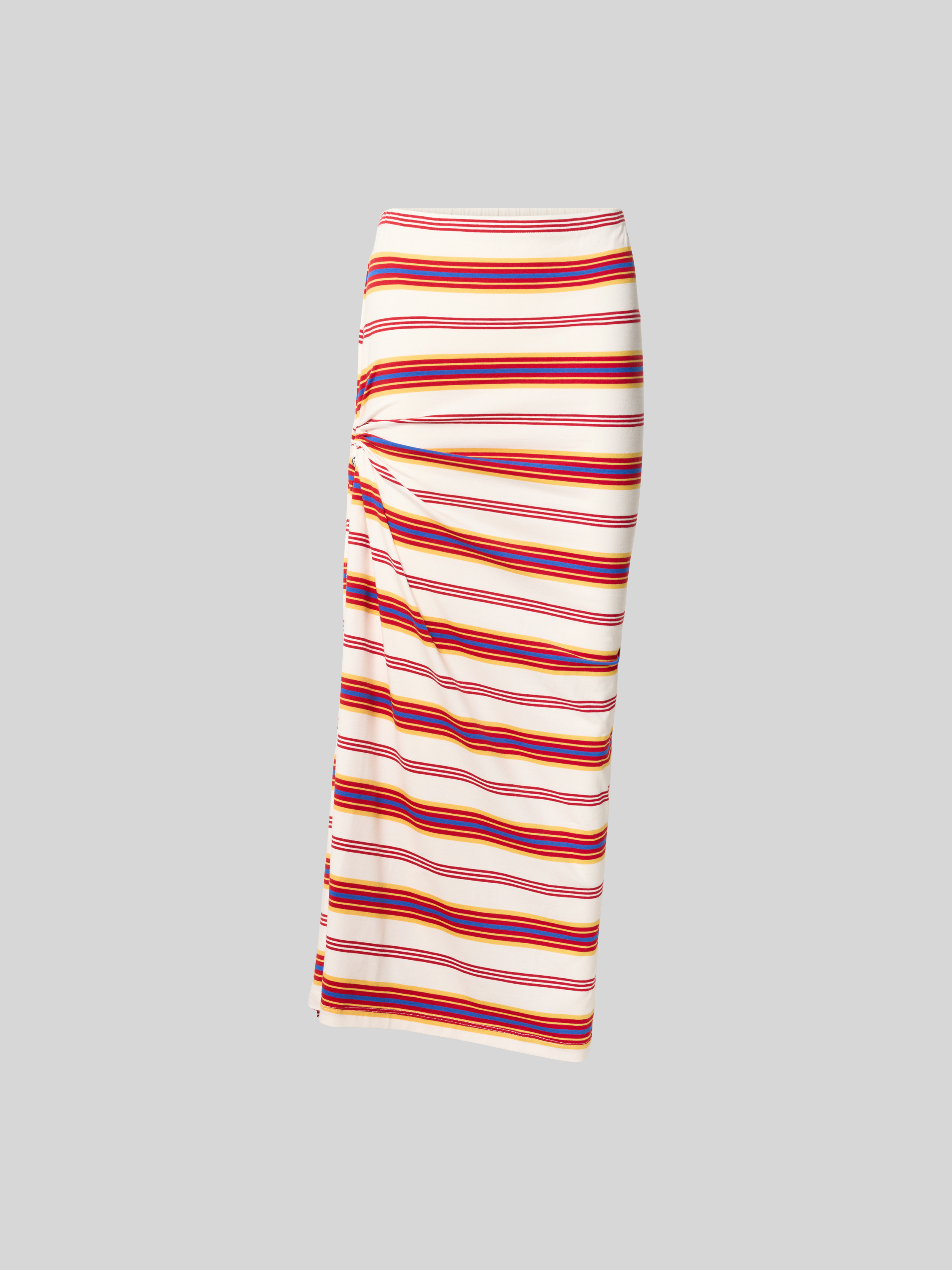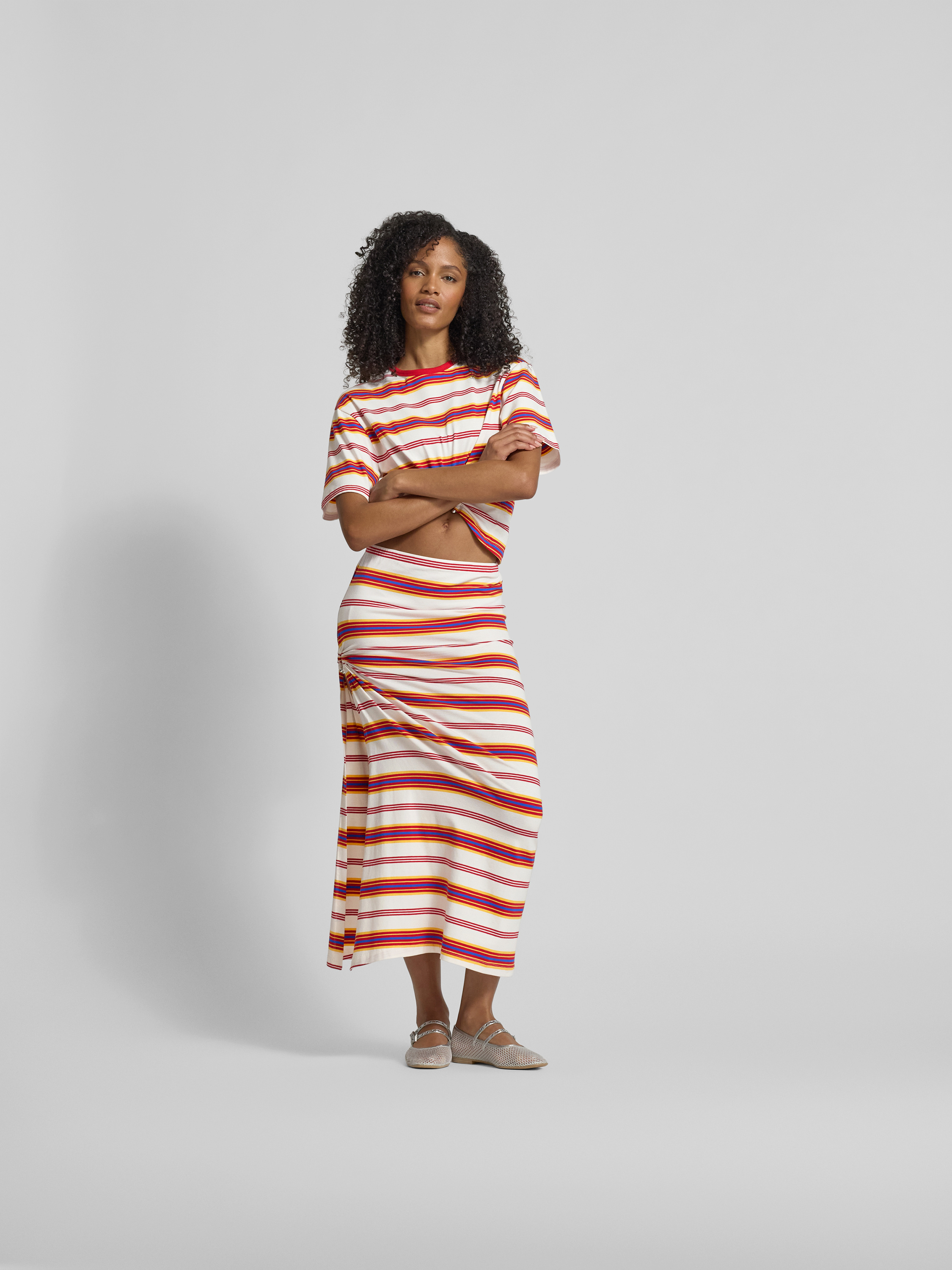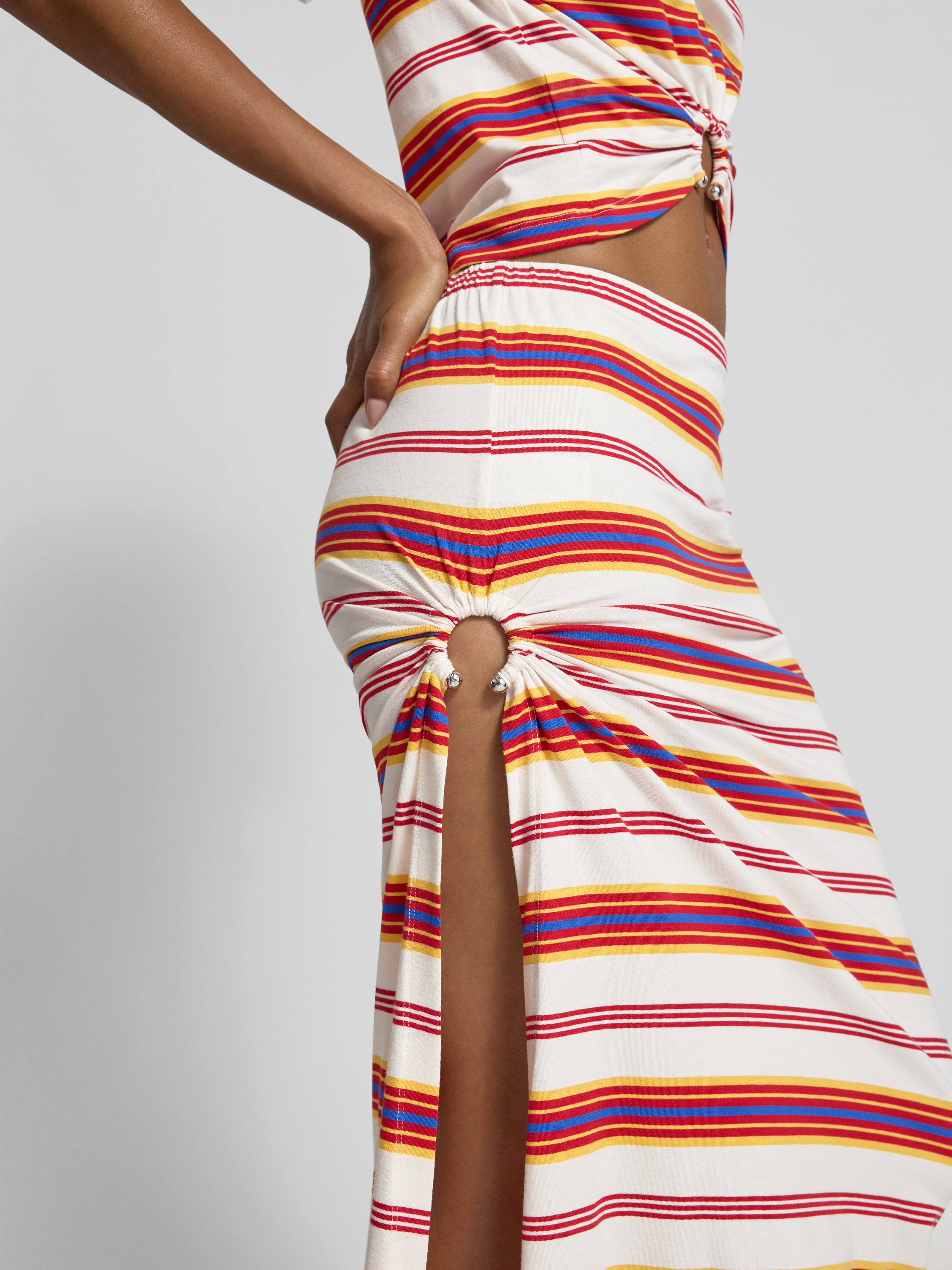 Der Maxirock von Rabanne kombiniert einen geraden Schnitt mit einem raffinierten LENZING™-ECOVERO™-Fasern-Mix, der sich angenehm anschmiegt. Durch den elastischen Bund lässt sich der Rock unkompliziert anziehen, während dezente Raffungen die Silhouette locker umspielen. So eignet er sich für vielseitige Gelegenheiten und trägt sich angenehm im Alltag.