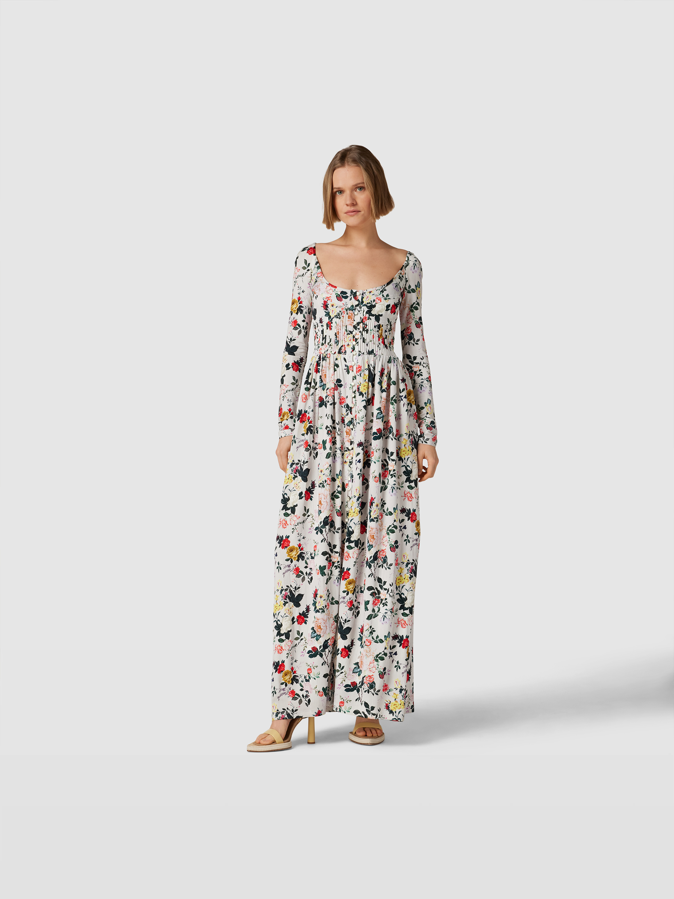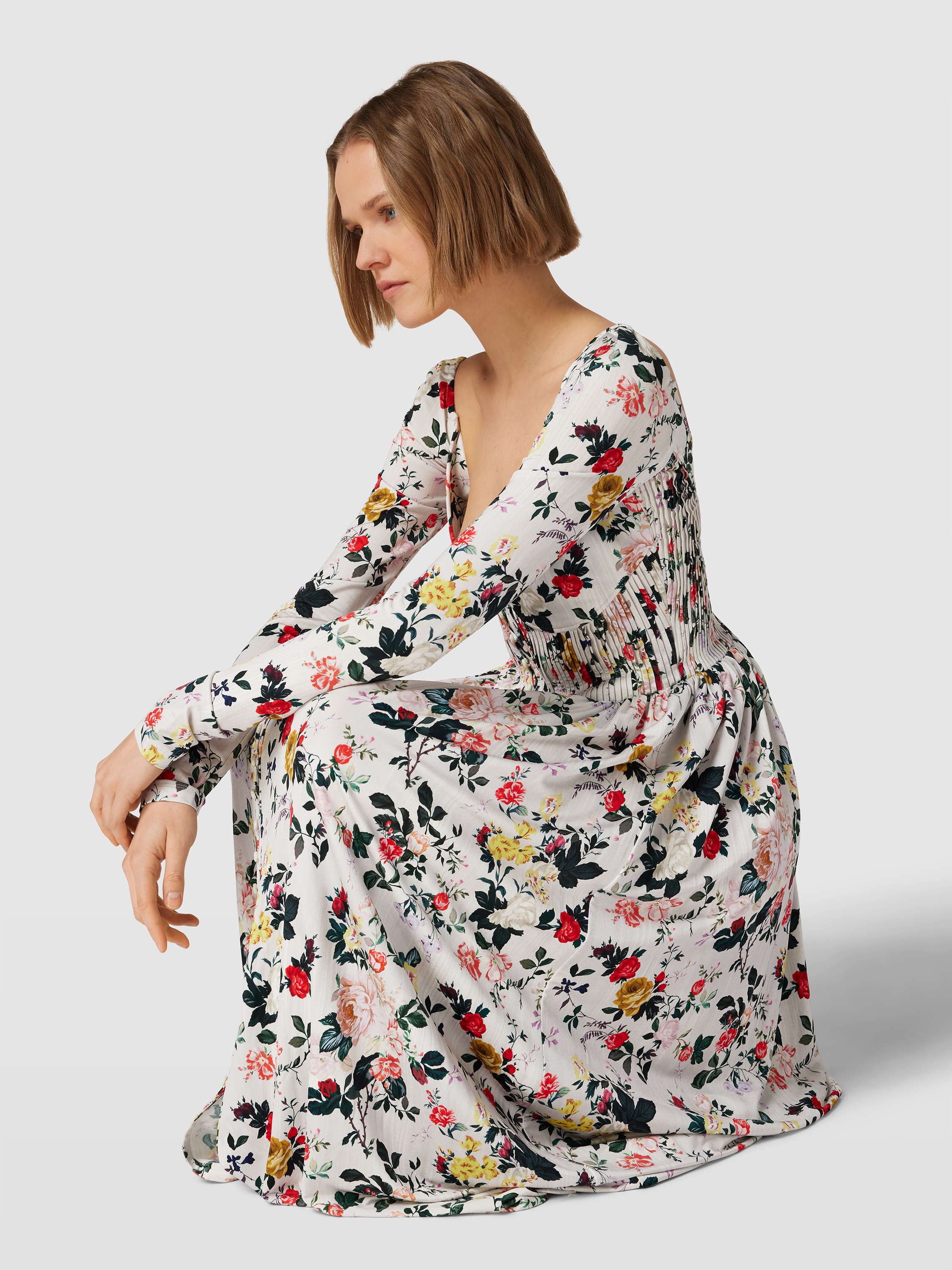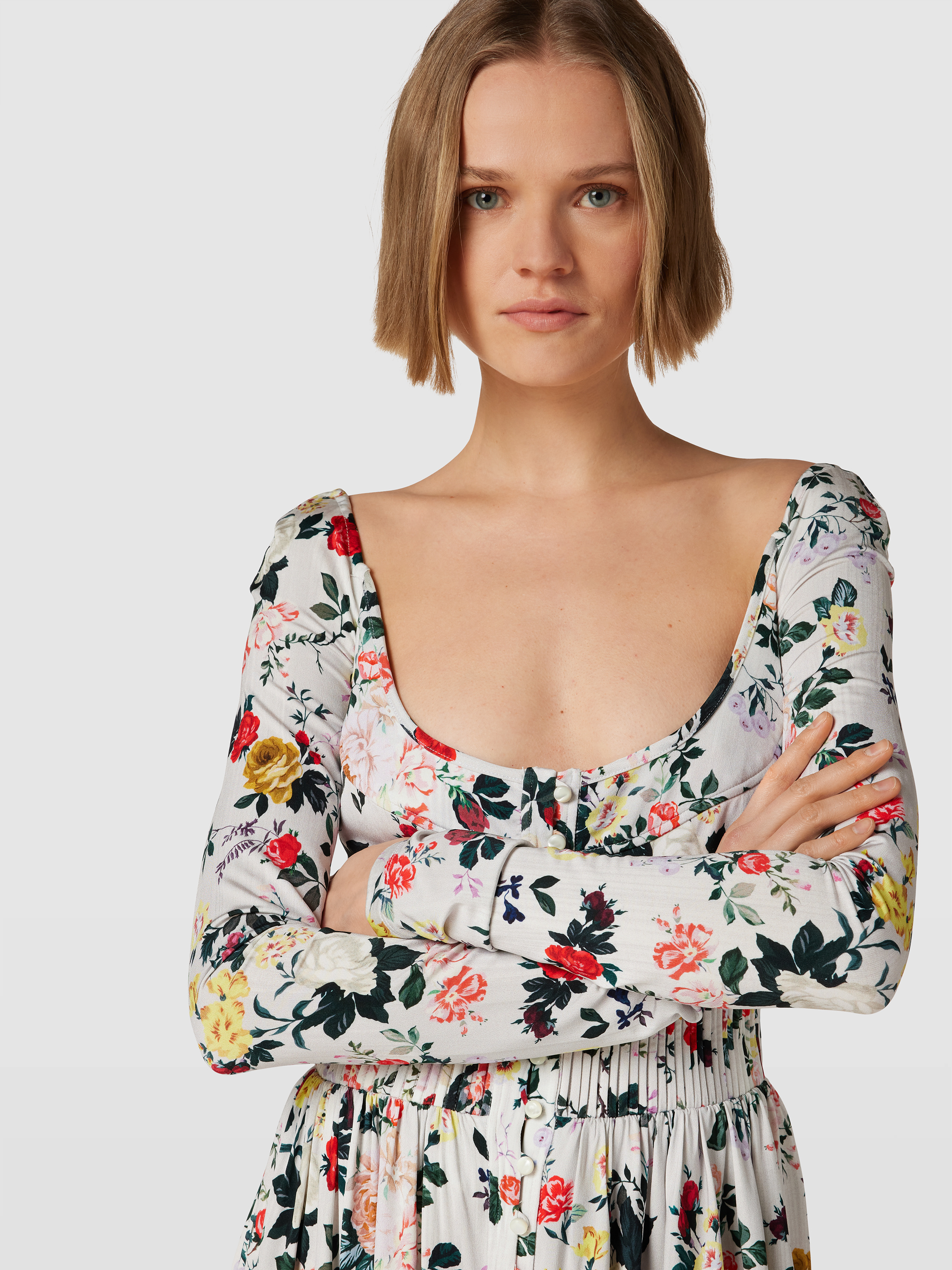 Das Damen Midikleid von Paco Rabanne fällt durch sein florales Allover-Muster ins Auge, während Biesen entlang des taillierten Schnitts eine feine Struktur schaffen. Der Viskose-Elasthan-Mix sorgt für angenehme Bewegungsfreiheit. Durch das langärmelige Design eignet sich das Midikleid mit Biesen sowohl für Alltag als auch besondere Anlässe.
