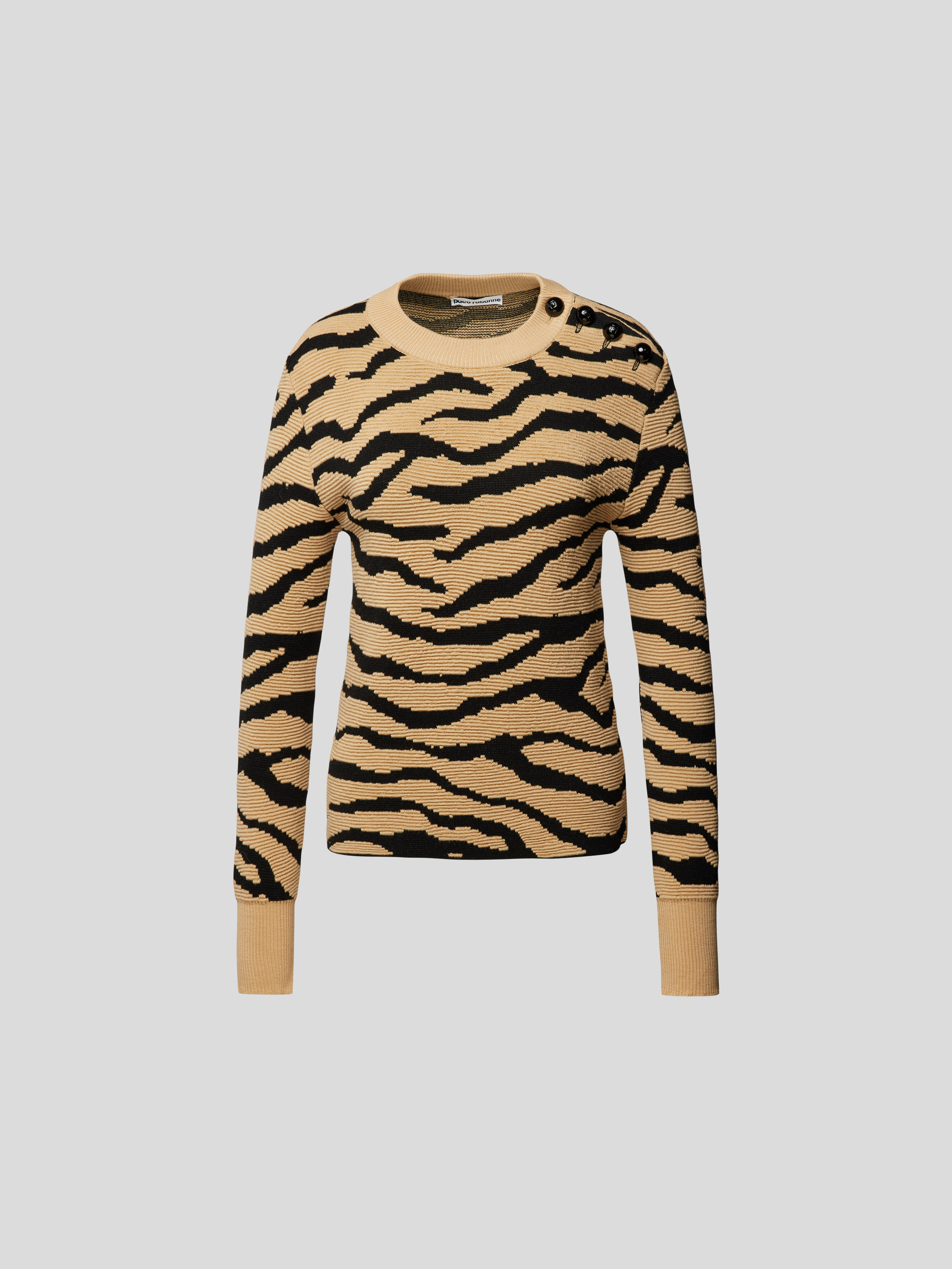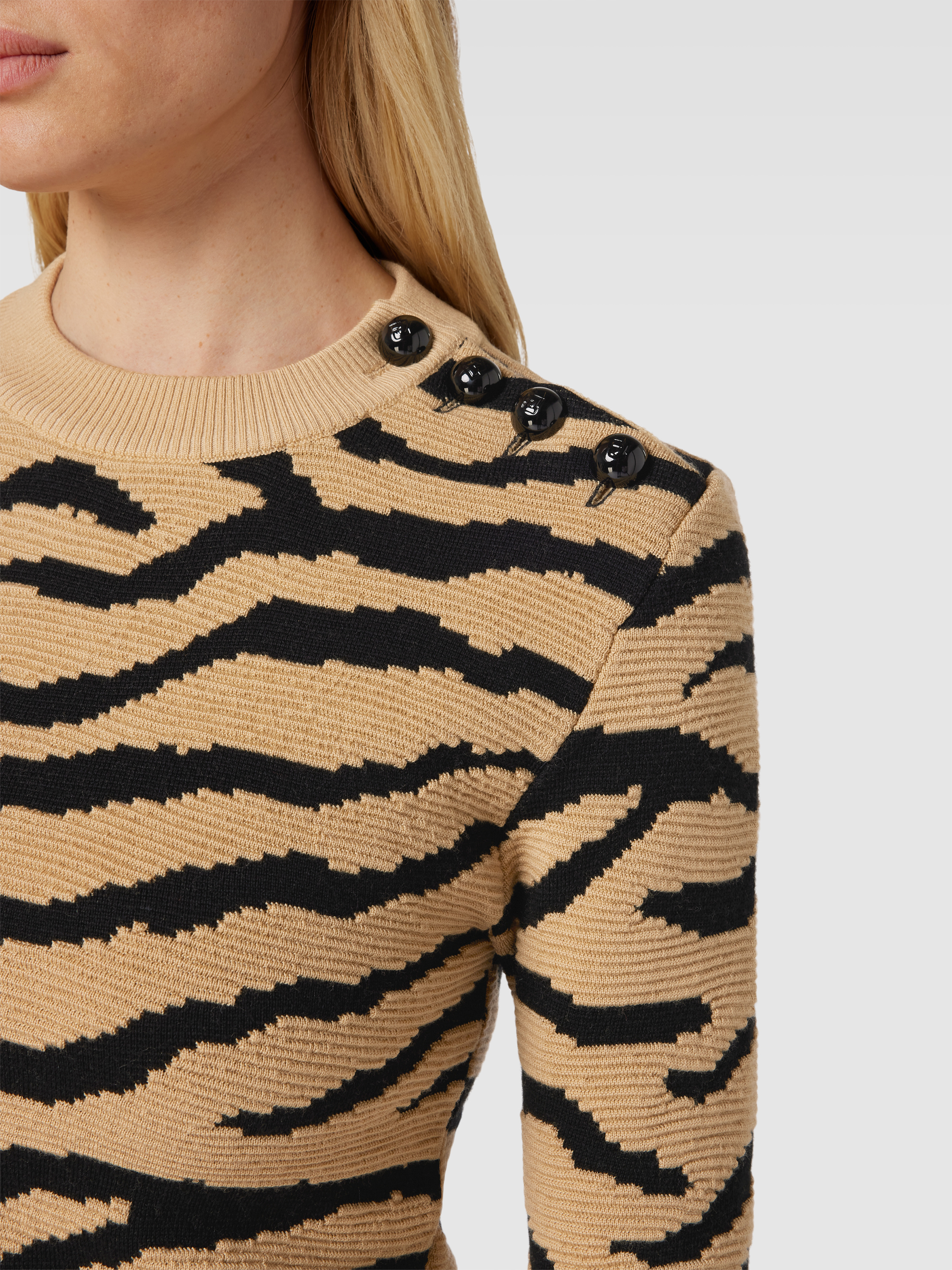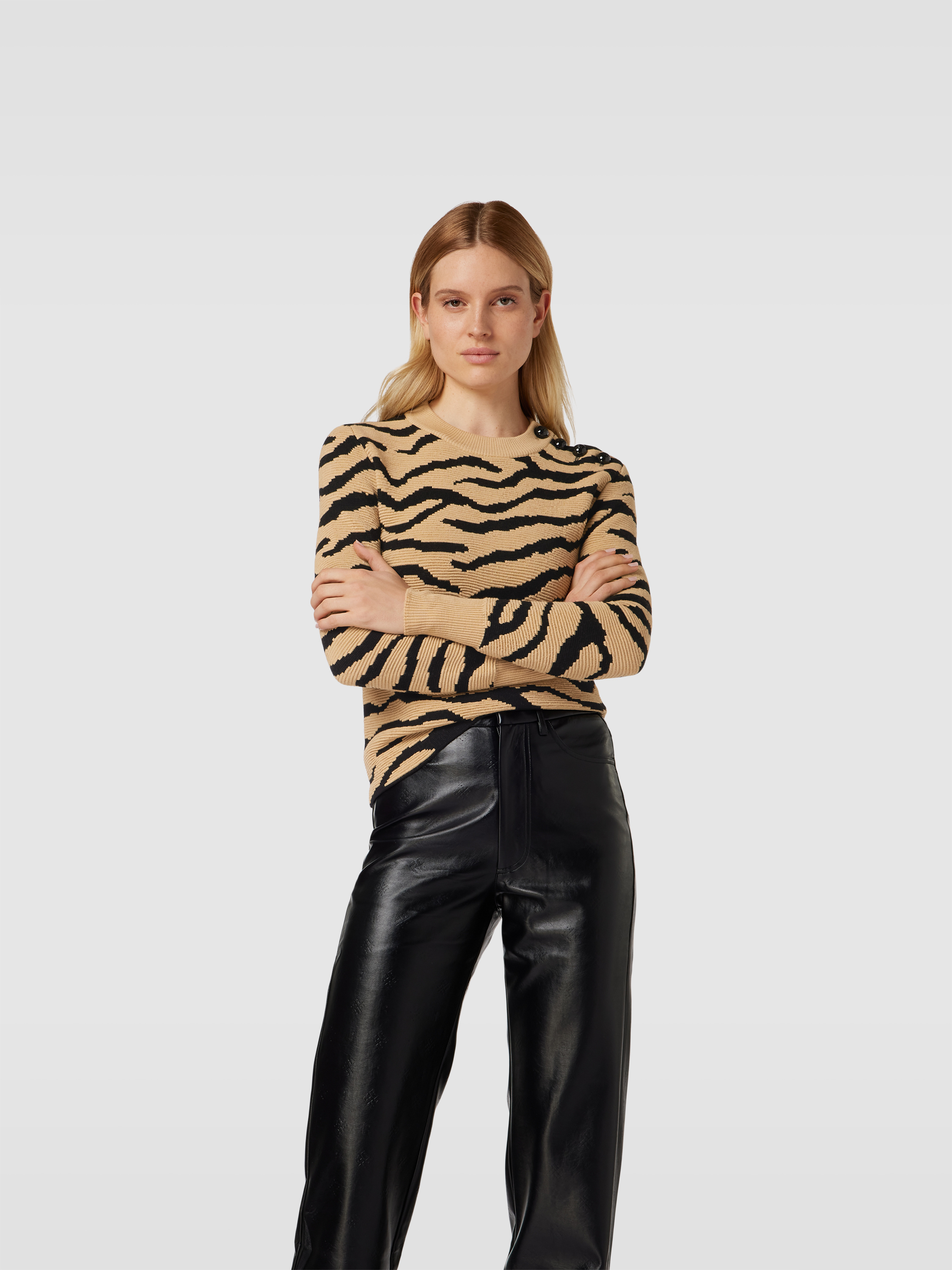 Der Damen Pullover von Paco Rabanne aus reiner Wolle schmiegt sich durch seinen körpernahen Schnitt angenehm an. Mit klassischer Strick-Optik und Rundhalsausschnitt passt er zu unterschiedlichen Outfits. So entsteht ein unkomplizierter Begleiter, der sich vielseitig kombinieren lässt.
