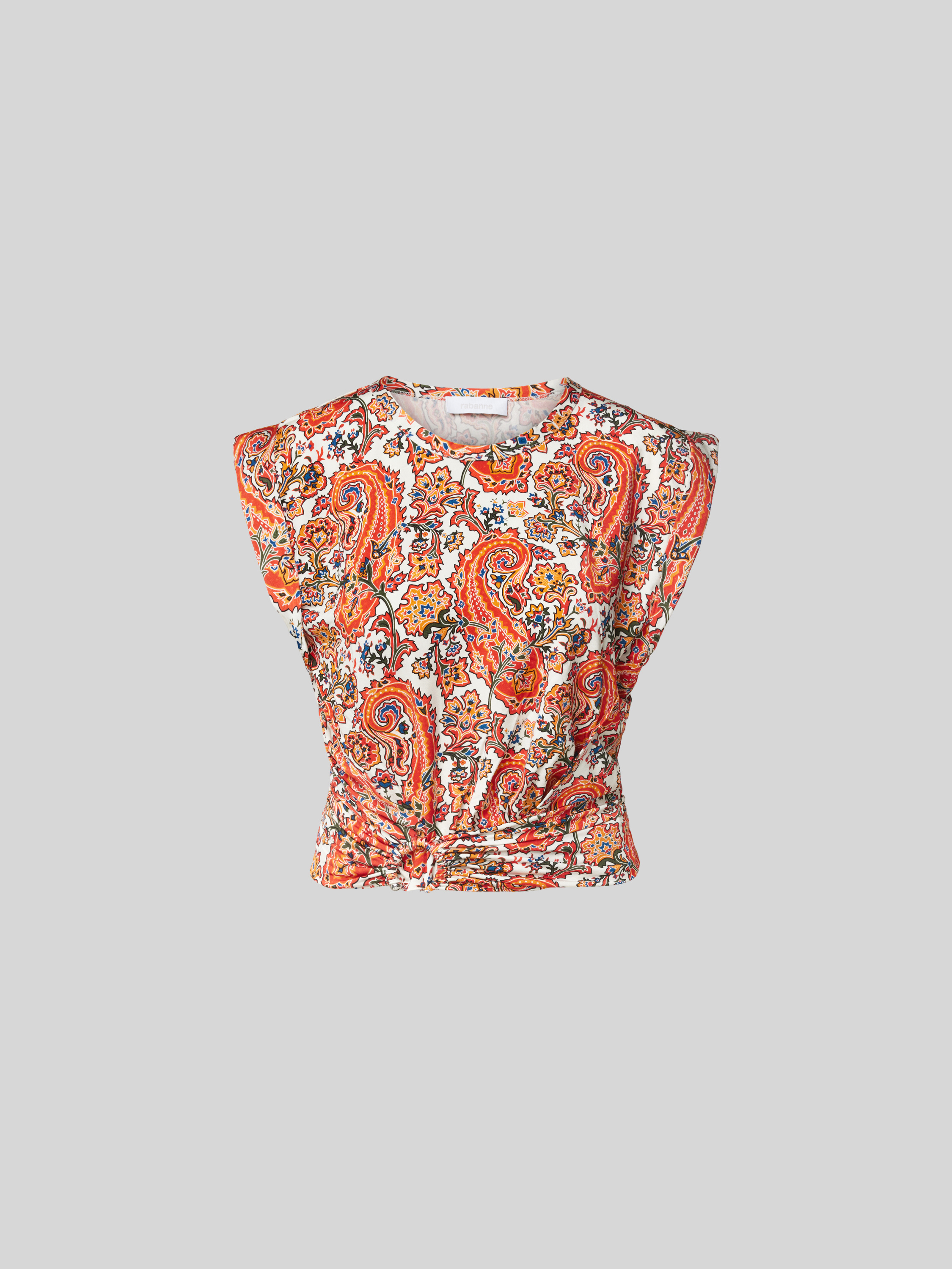 Das Damen-T-Shirt von Paco Rabanne präsentiert sich mit dezenten Raffungen und einem klassischen Rundhalsausschnitt. Durch den Regular Fit schmiegt es sich angenehm an, während der Viskose-Elasthan-Mix für ein geschmeidiges Tragegefühl sorgt. So eignet sich das T-Shirt mit Raffungen vielseitig im Alltag.