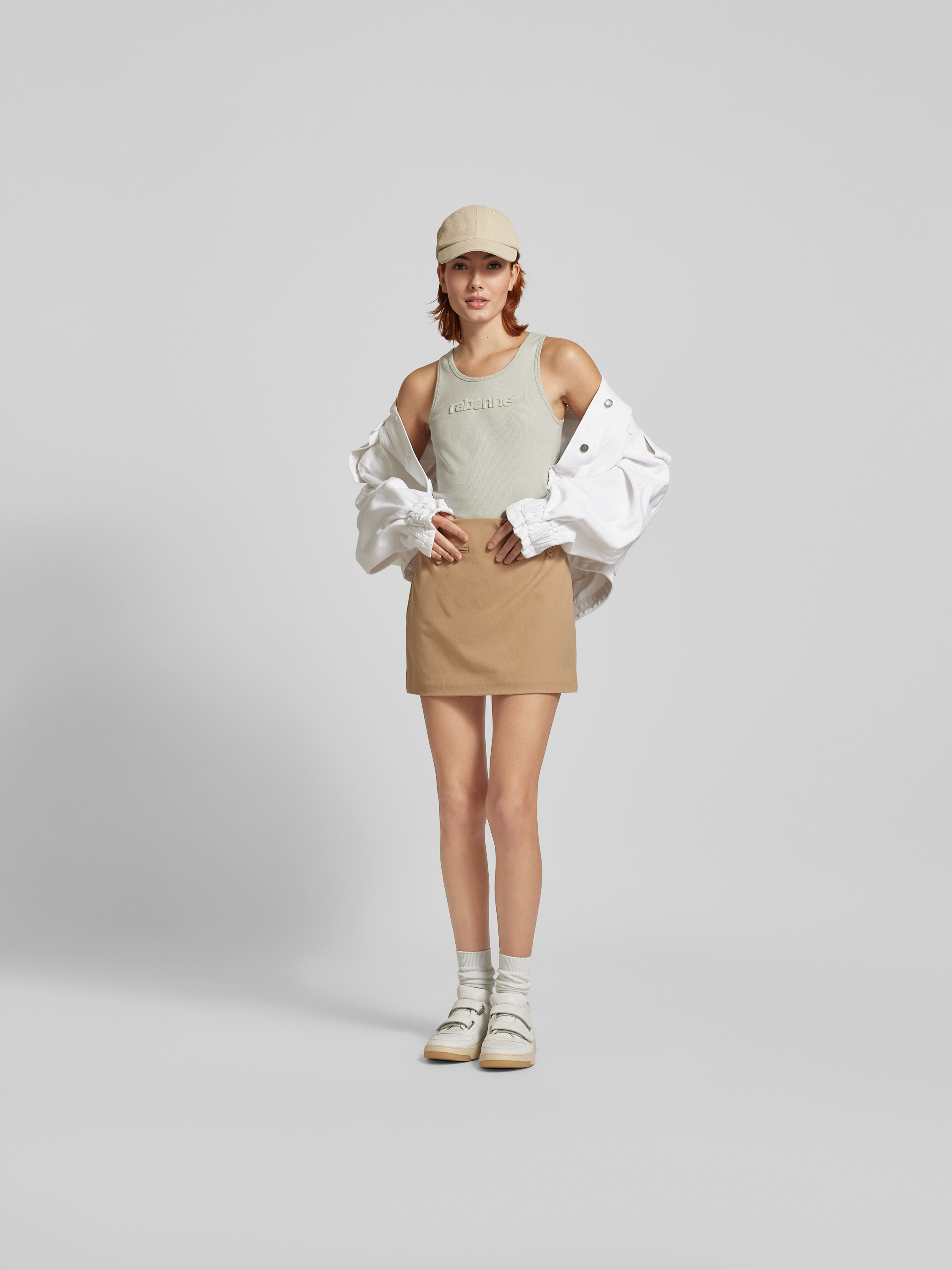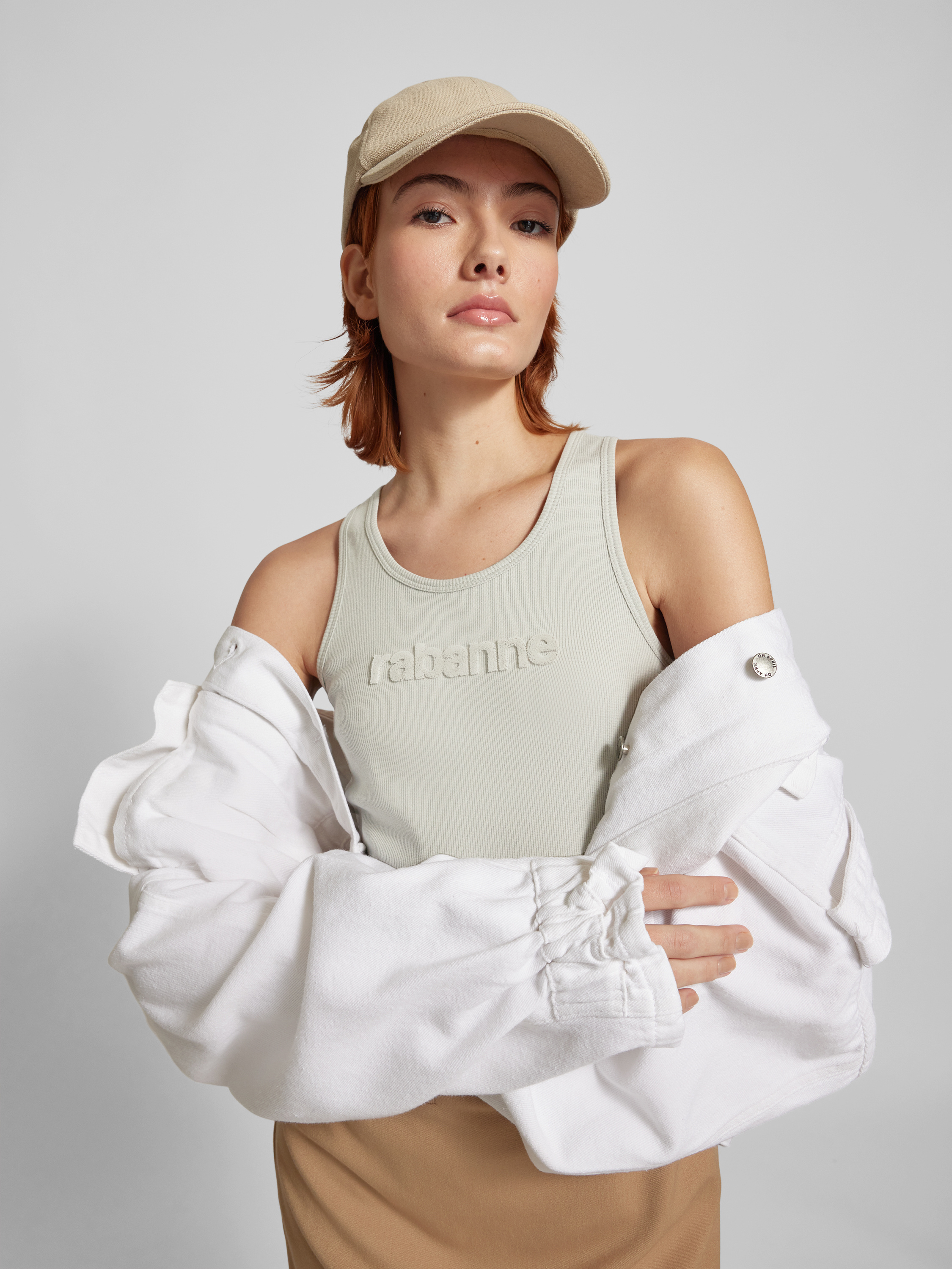 Das Damen Tanktop von Paco Rabanne zeigt durch den Regular Fit und das dezente Strukturmuster eine angenehm lässige Wirkung. Dank des Baumwoll-Elasthan-Mix passt sich das Oberteil flexibel an und fühlt sich weich auf der Haut an. Das Label-Detail rundet das Design unaufdringlich ab.