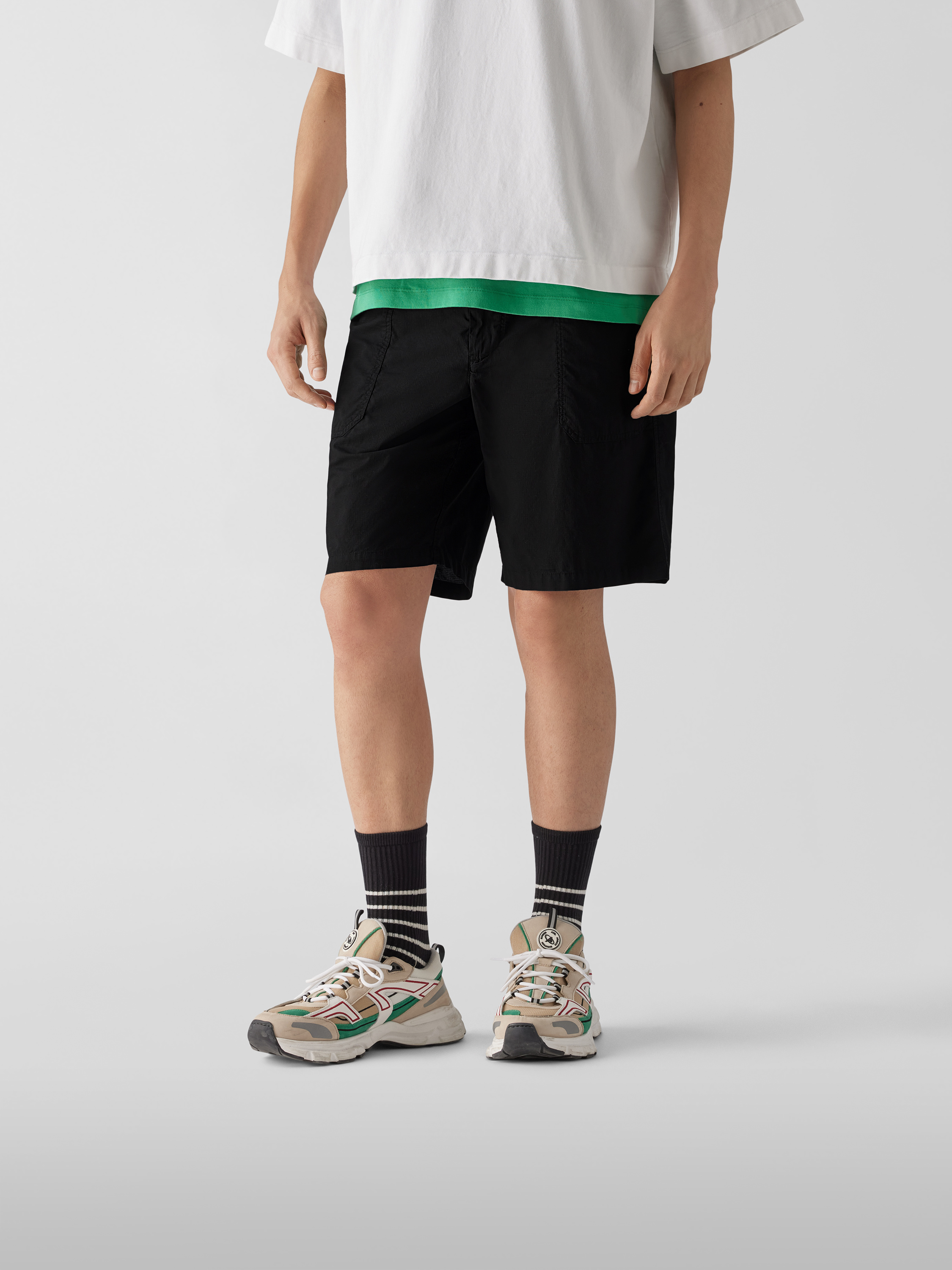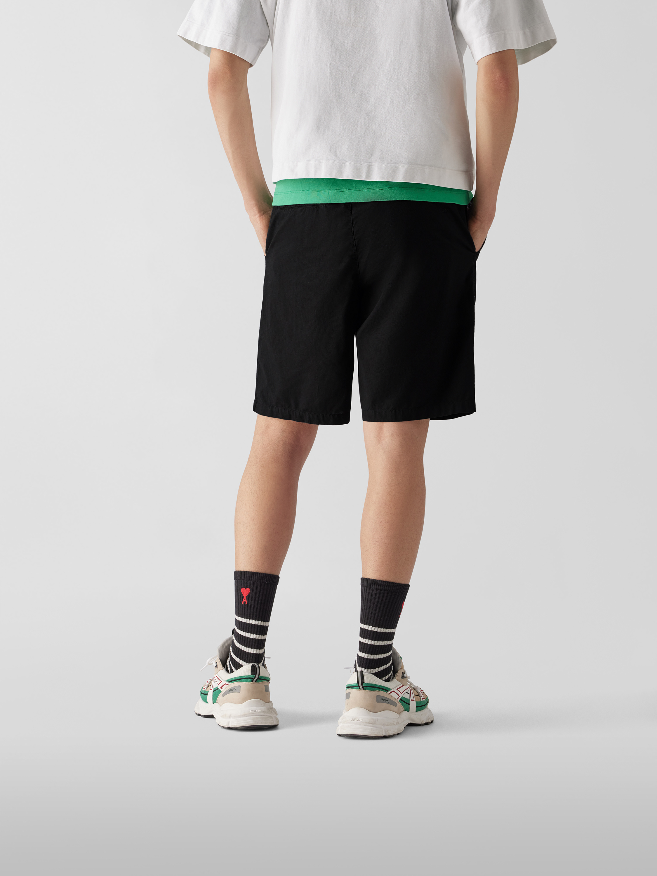 Die Herren Shorts von rag & bone zeichnen sich durch ihr strapazierfähiges Material und eine lockere Passform aus, wodurch sie vielseitige Bewegungsfreiheit im Alltag ermöglichen. Französische Eingrifftaschen sorgen für praktischen Stauraum, während angedeutete Paspeltaschen am Gesäß den Look lässig abrunden. Die Shorts mit elastischem Bund eignen sich für entspannte Aktivitäten ebenso wie für unkomplizierte Freizeitkombinationen.