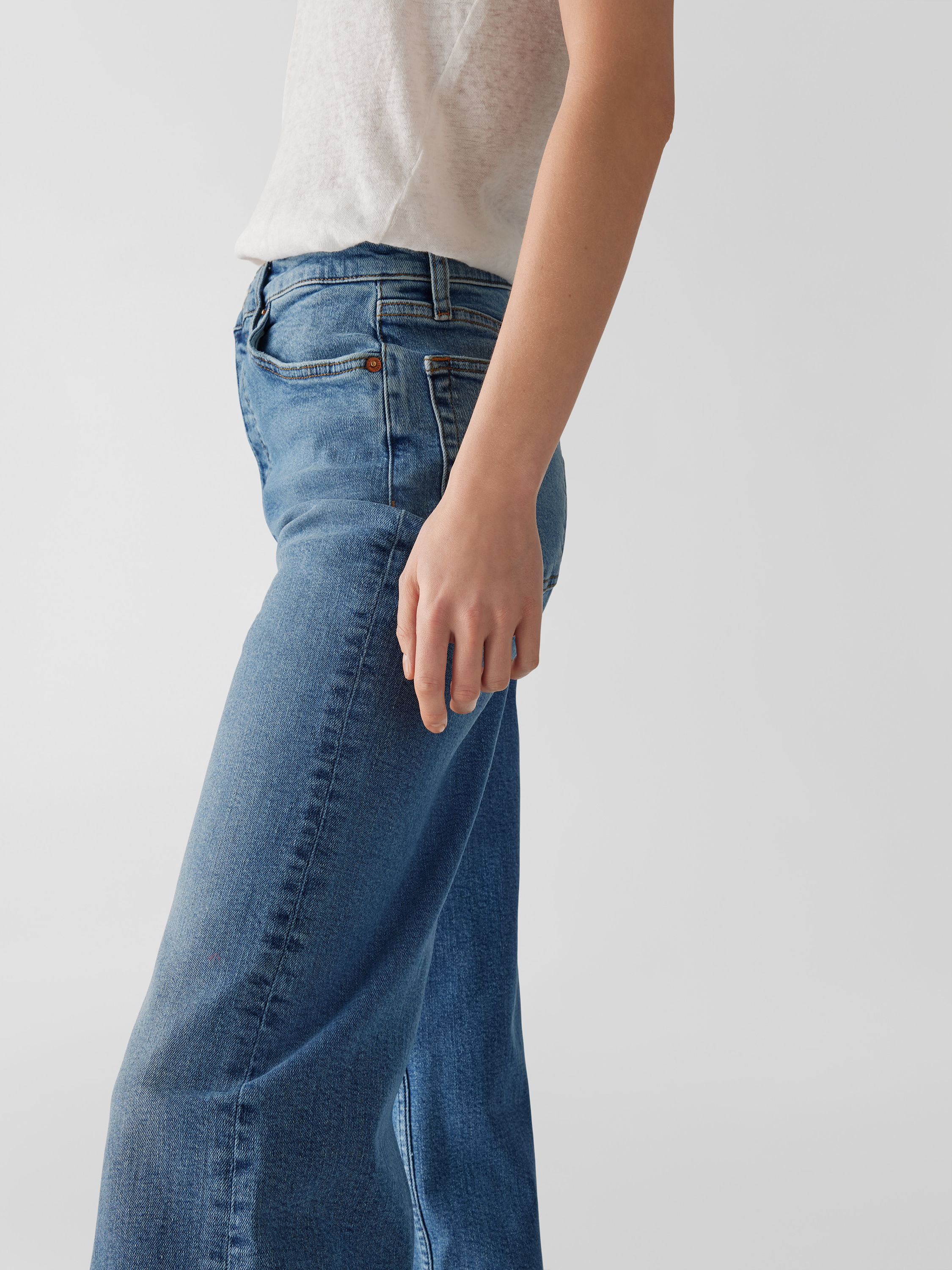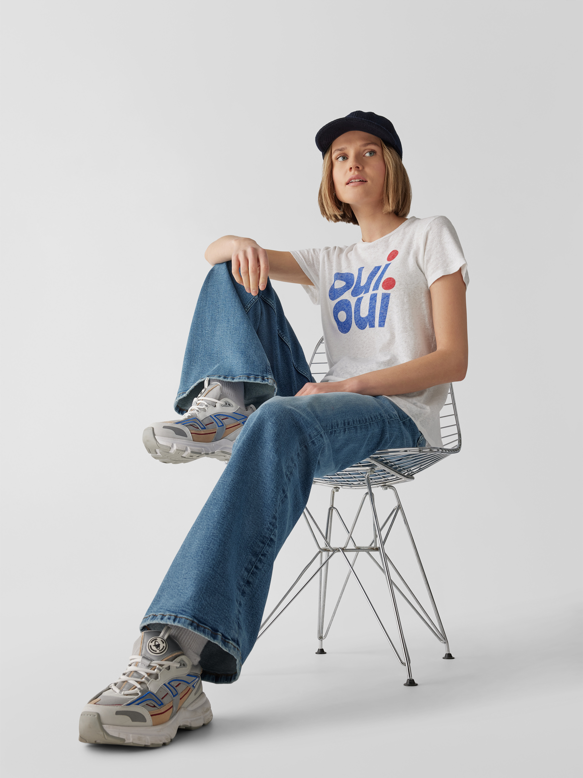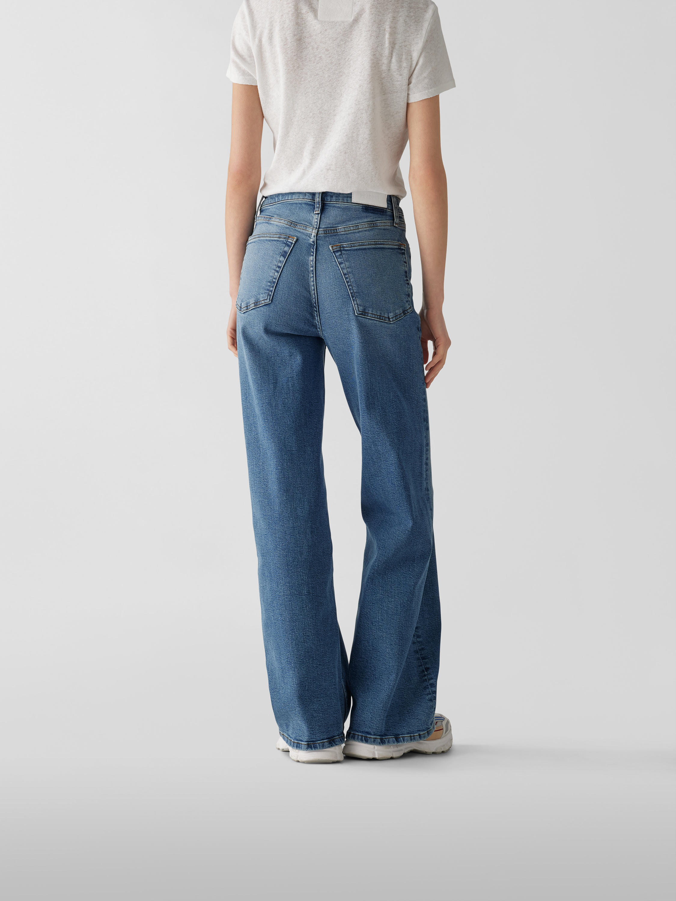 Die Damenjeans High Rise Flared Fit von RE/DONE liegt angenehm an der Taille und betont durch ihren ausgestellten Schnitt die Silhouette auf dezente Weise. Der Baumwoll-Elasthan-Mix sorgt für ein geschmeidiges Tragegefühl, während der Used-Look dem Outfit eine lässige Note verleiht. Dank des klassischen 5-Pocket-Designs erhält man ausreichend Stauraum für Kleinigkeiten.