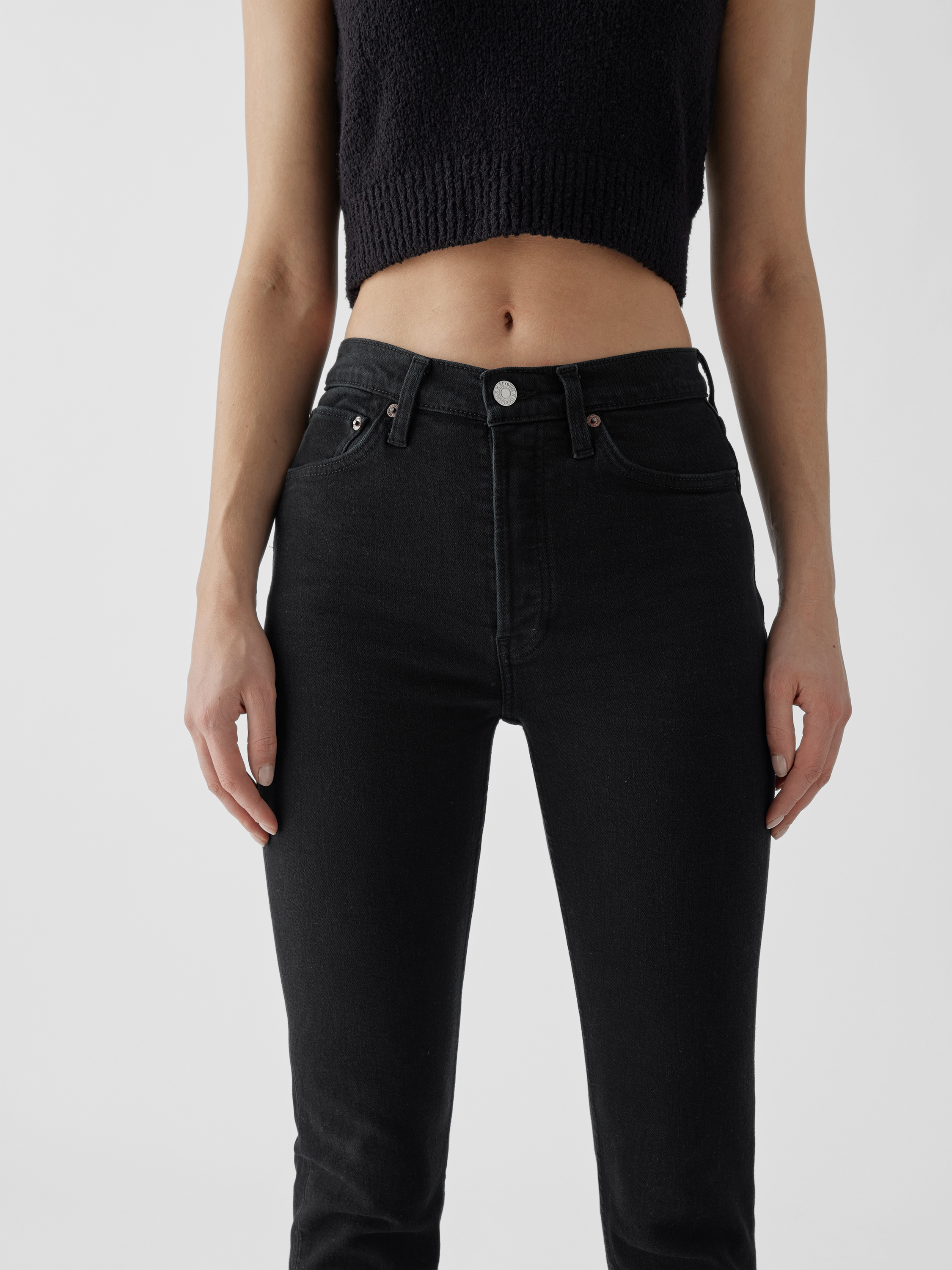 Die Damen Slim Fit Jeans von RE/DONE sitzt durch ihren schmalen Schnitt bequem und passt sich angenehm an. Dank des weichen Baumwoll-Mix fühlt sich die Hose leicht an, während der hohe Bund und das dezente Brand-Detail dem Look eine moderne Note verleihen. So eignet sich dieses Modell für vielseitige Outfits.