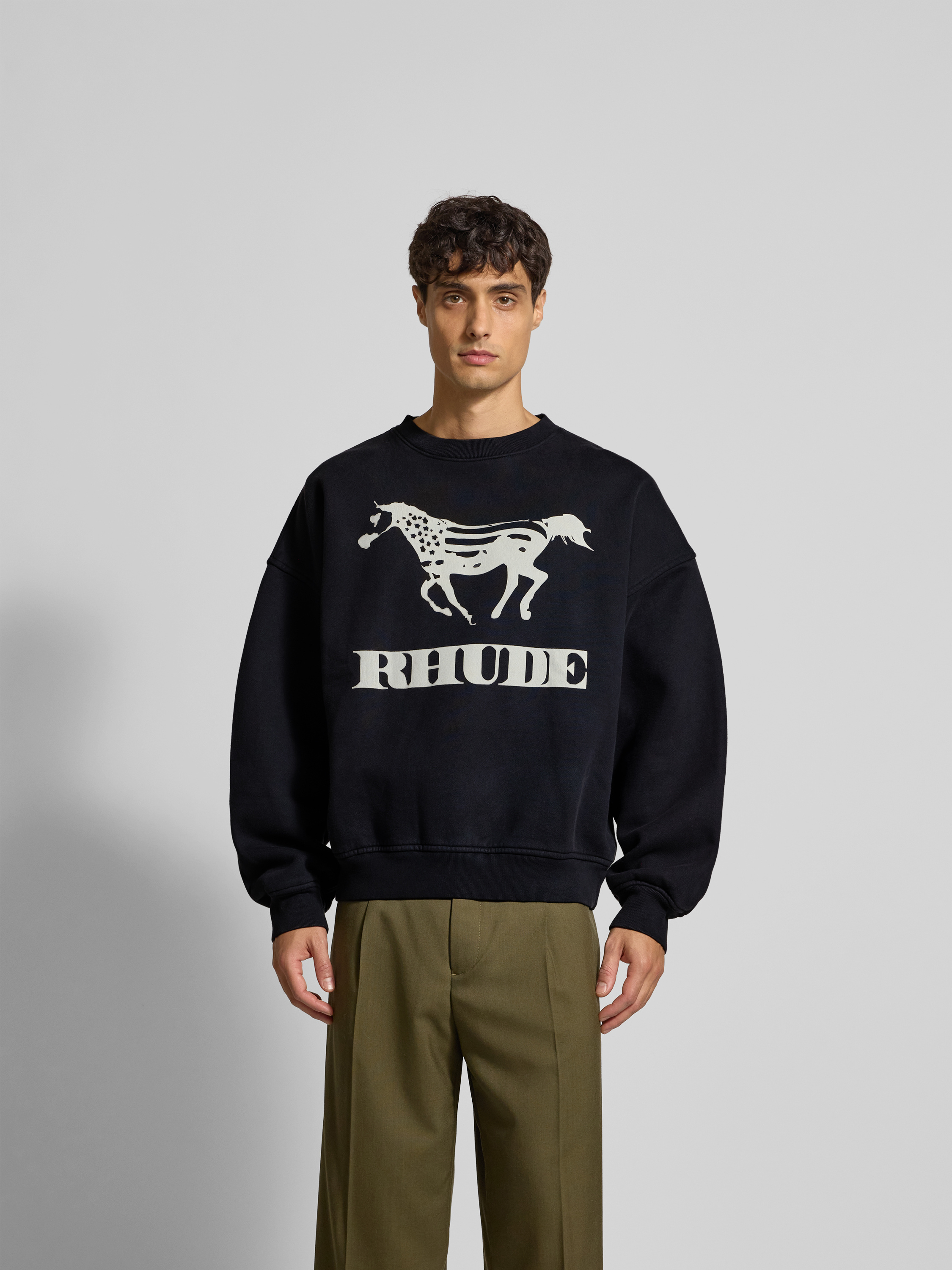 Das Herren Sweatshirt von RHUDE aus reiner Baumwolle zeigt sich im Oversized-Schnitt, wodurch Bewegungsfreiheit und ein lässiger Look miteinander einhergehen. Ein Rundhalsausschnitt und die markanten Label-Print-Details unterstreichen den entspannten Charakter. Dank der weichen Materialqualität fühlt sich das Sweatshirt angenehm auf der Haut an.