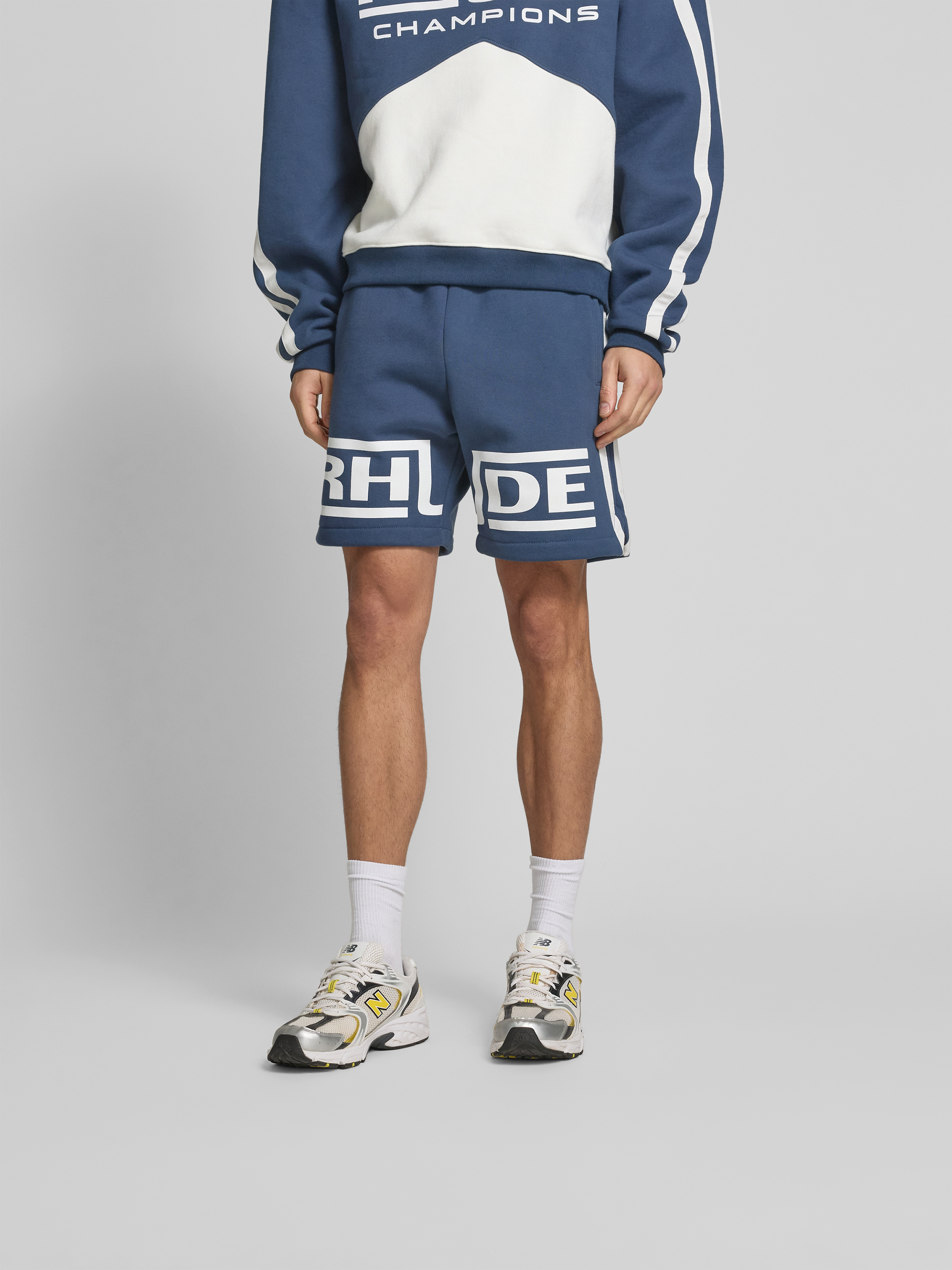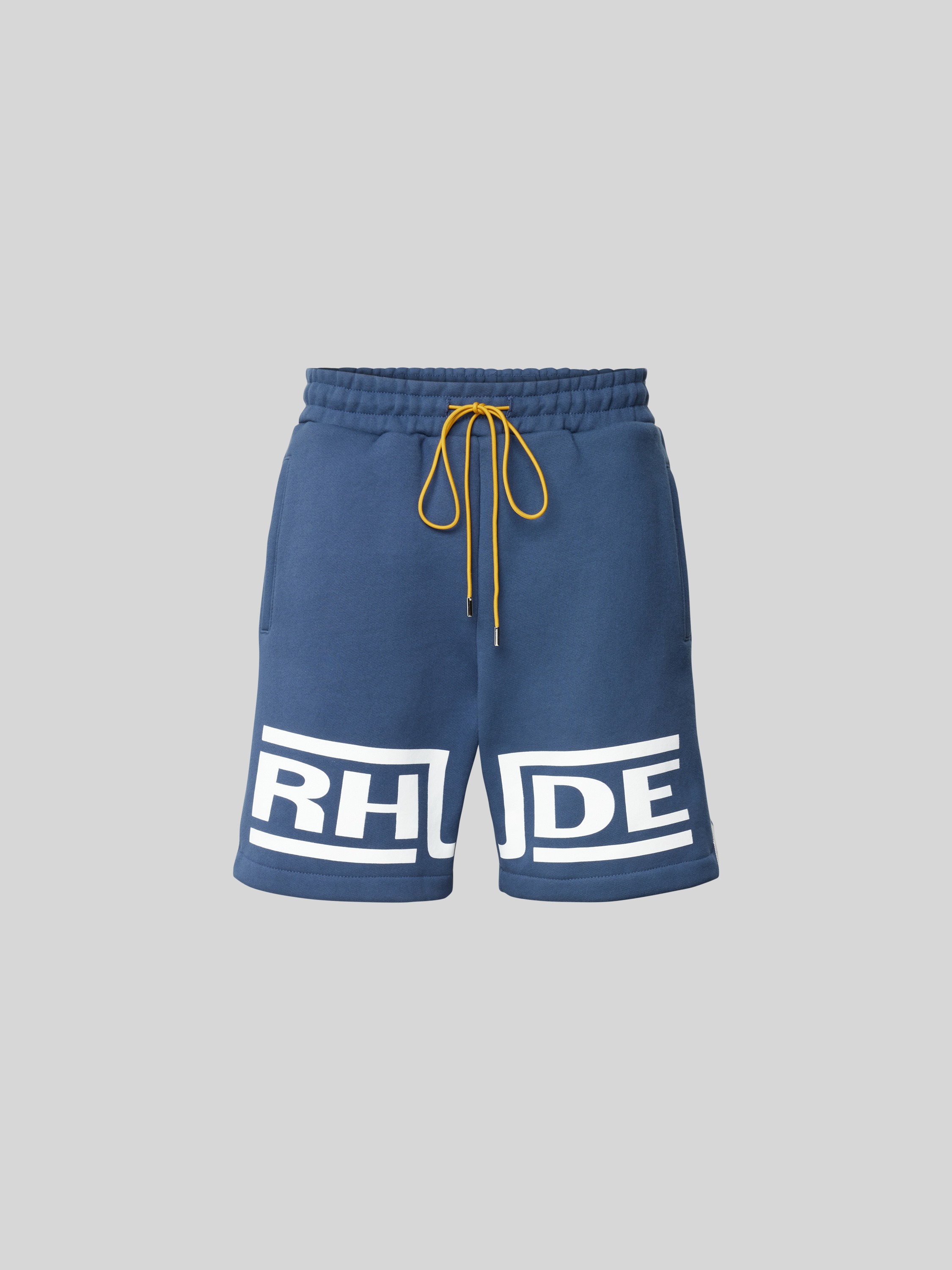 Die RHUDE Sweatshorts aus reiner Baumwolle kombinieren Komfort und Stil durch ihre lockere Passform und den elastischen Bund mit Tunnelzug. Praktische Eingrifftaschen bieten Platz für Kleinigkeiten, während der markante Label-Print einen modischen Akzent setzt. Ideal für entspannte Tage.