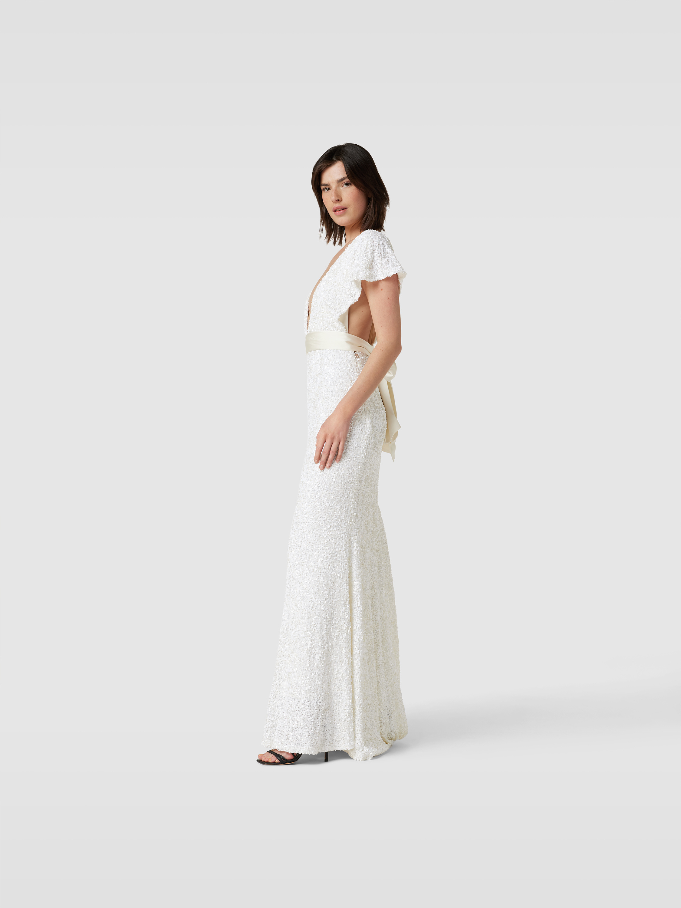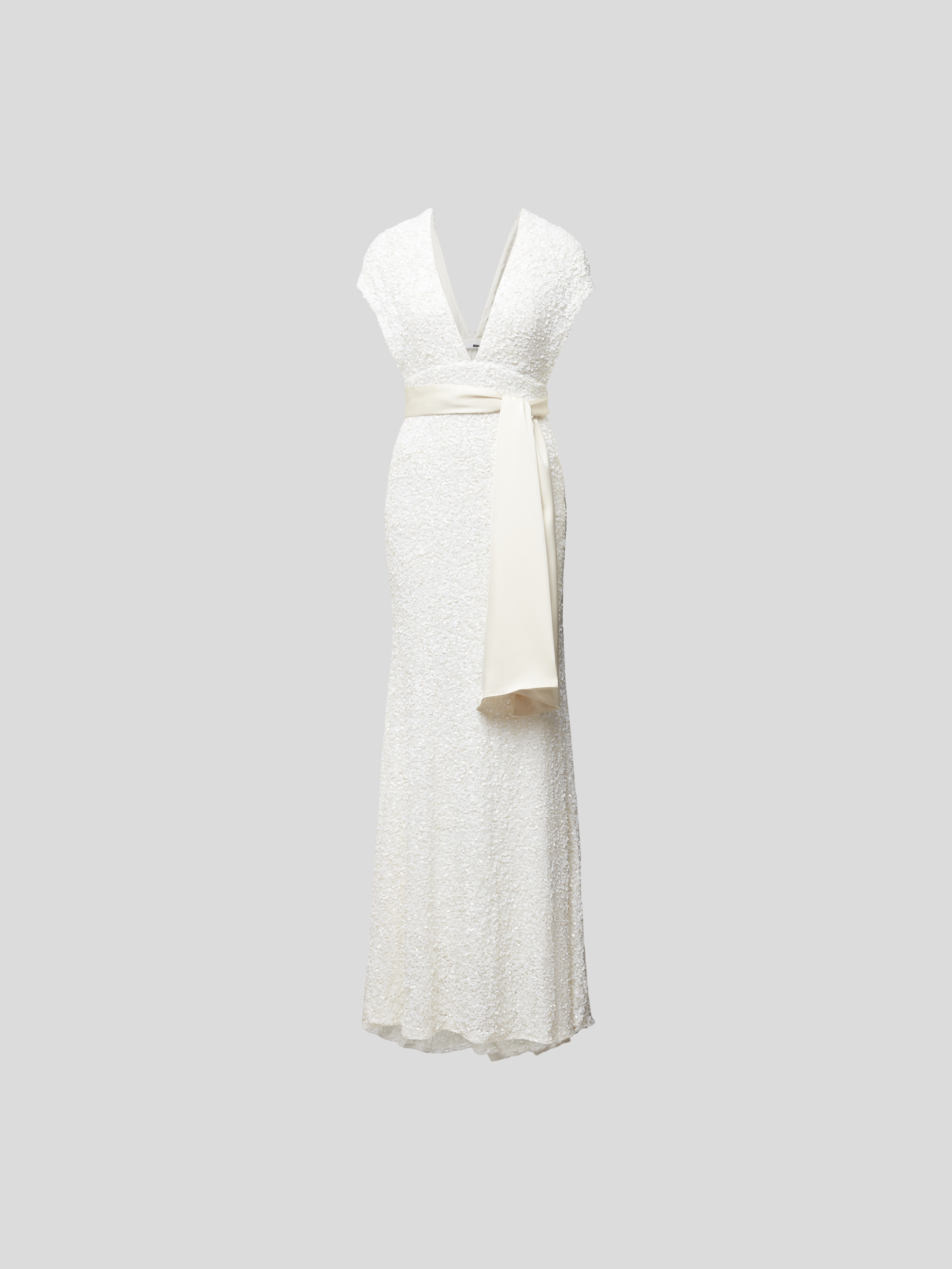 ROTATEAbendkleid mit Paillettenbesatz in weiss