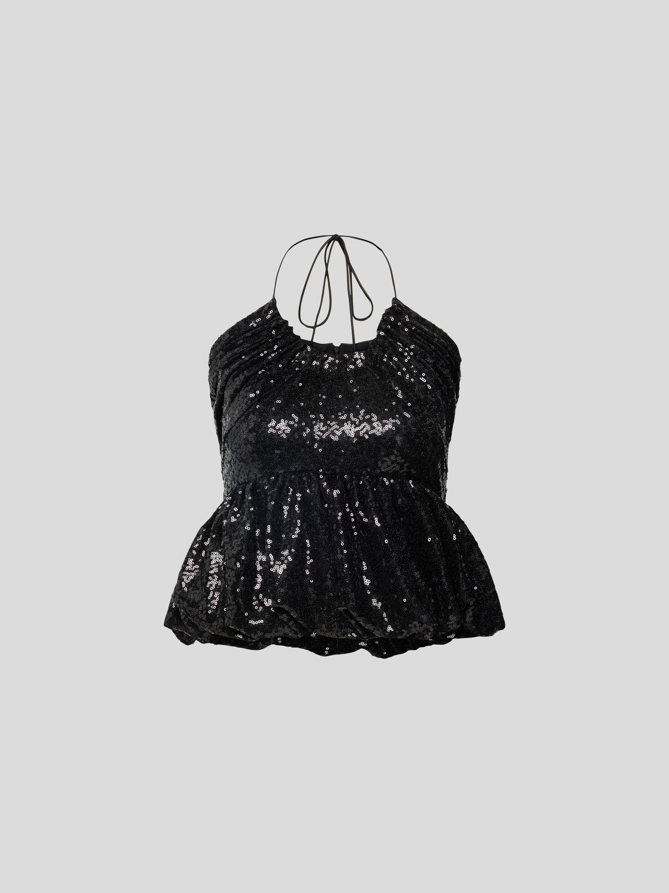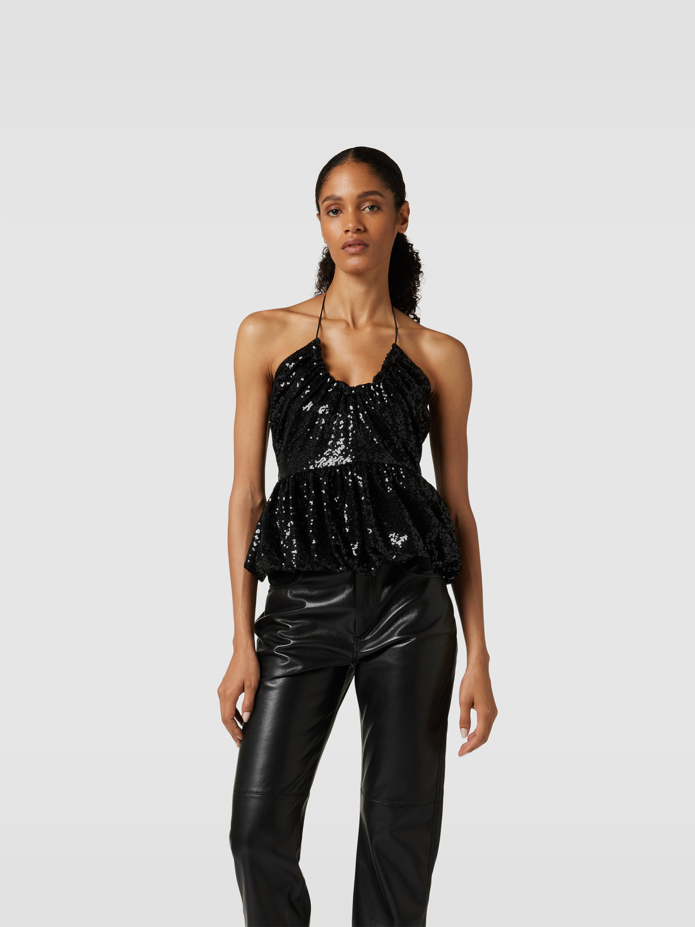 Das Blusentop von ROTATE BIRGER CHRISTENSEN zeichnet sich durch eine taillierte Passform aus und schmiegt sich angenehm an den Körper an. Der auffällige Allover-Paillettenbesatz sorgt für einen besonderen Akzent, während der Volantsaum dem Design eine verspielte Note verleiht. Durch die Neckholder-Form wirkt das Blusentop modern und vielseitig.