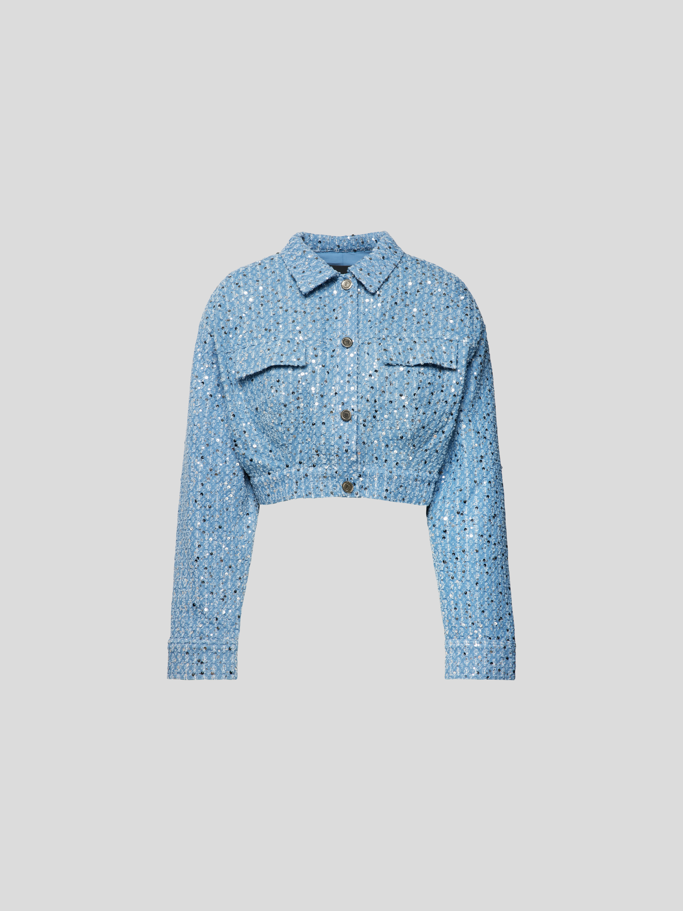 Cropped Hemdjacke mit Paillettenbesatz in jeansblau