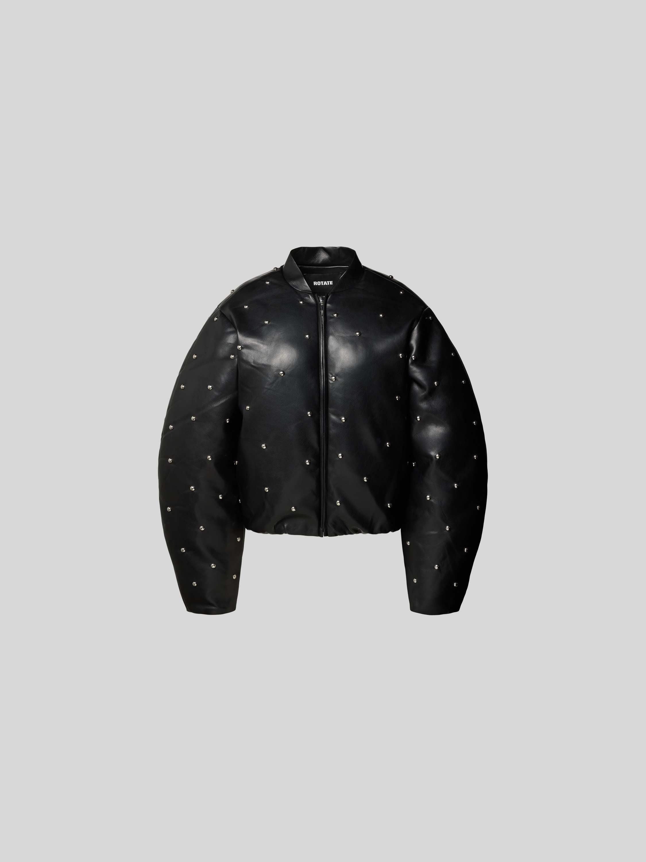 Die Damen Jacke von ROTATE zeigt sich im Regular Fit und bringt durch die Leder-Optik einen modernen Charakter in den Alltag. Der Stehkragen verleiht dem Schnitt Struktur, während der dezente Ziersteinbesatz subtile Akzente setzt. So erhält man ein vielseitiges Kleidungsstück, das unkompliziert kombiniert werden kann.