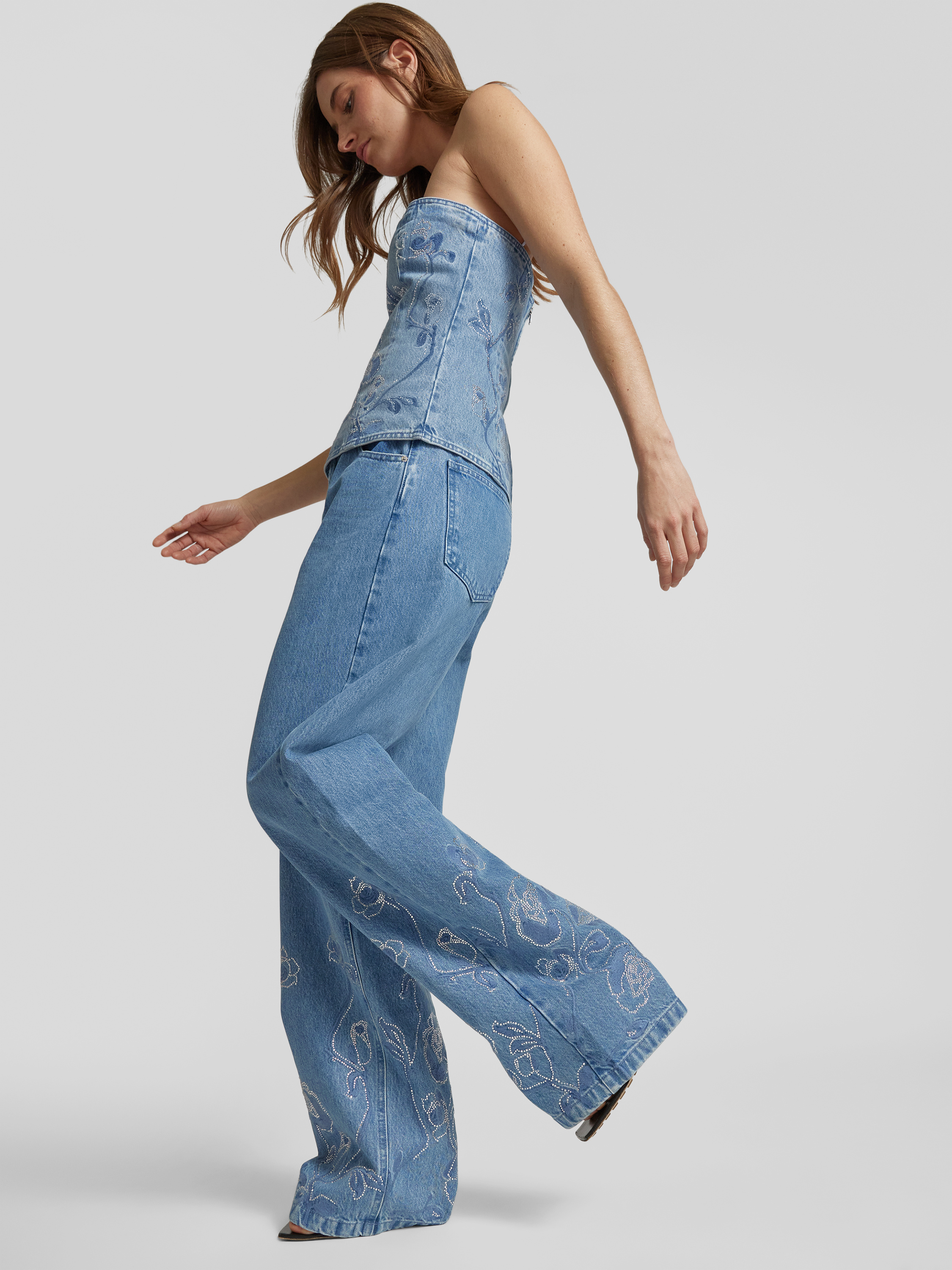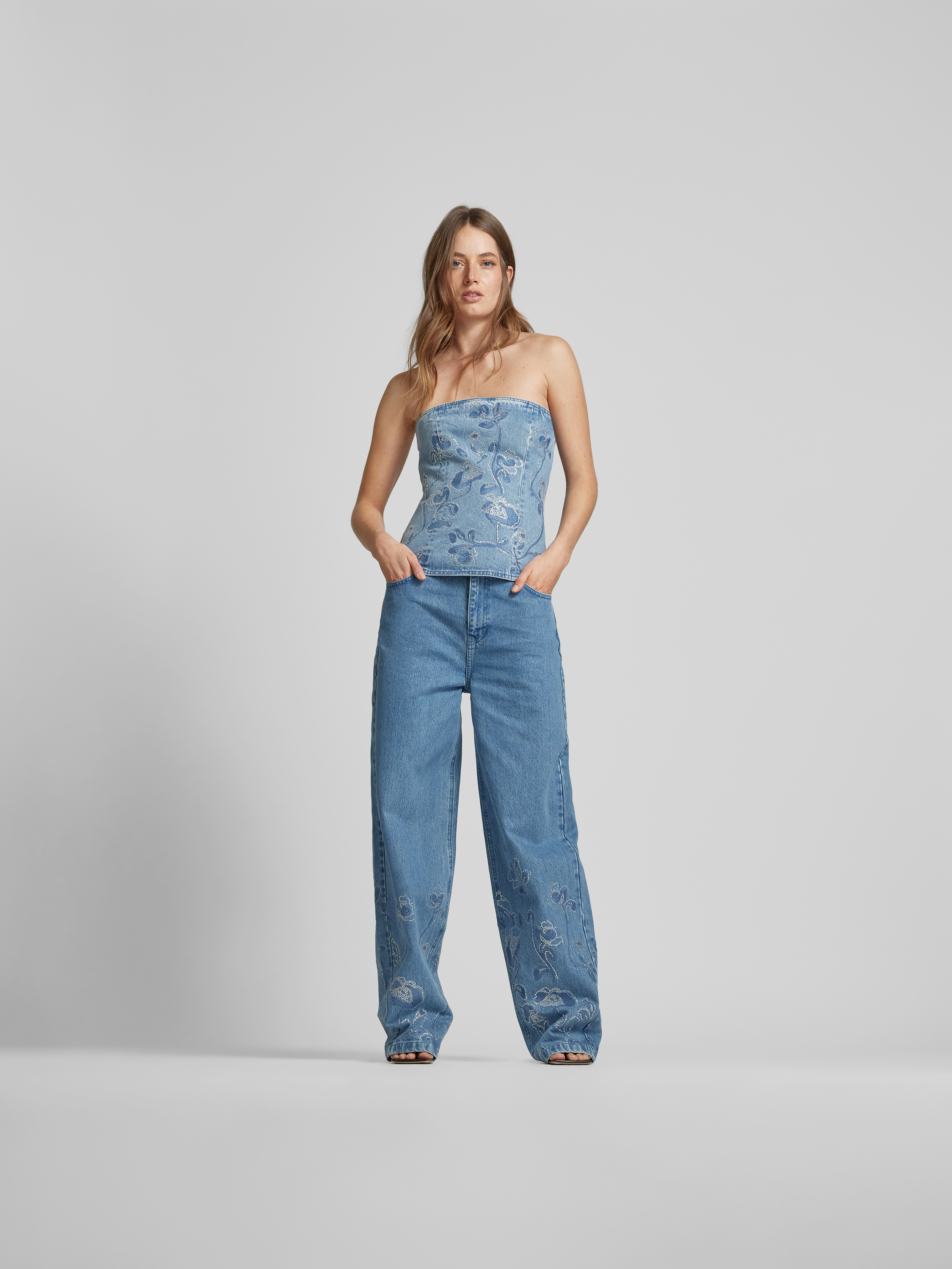 Die Damen Jeans von Rotate fällt durch ihren lockeren Schnitt angenehm bequem aus und lässt sich vielseitig kombinieren. Gefertigt aus reiner Baumwolle, fühlt sich das Material weich auf der Haut an. Das 5-Pocket-Design und dezente Ziersteine verleihen dem Modell einen modernen Akzent.